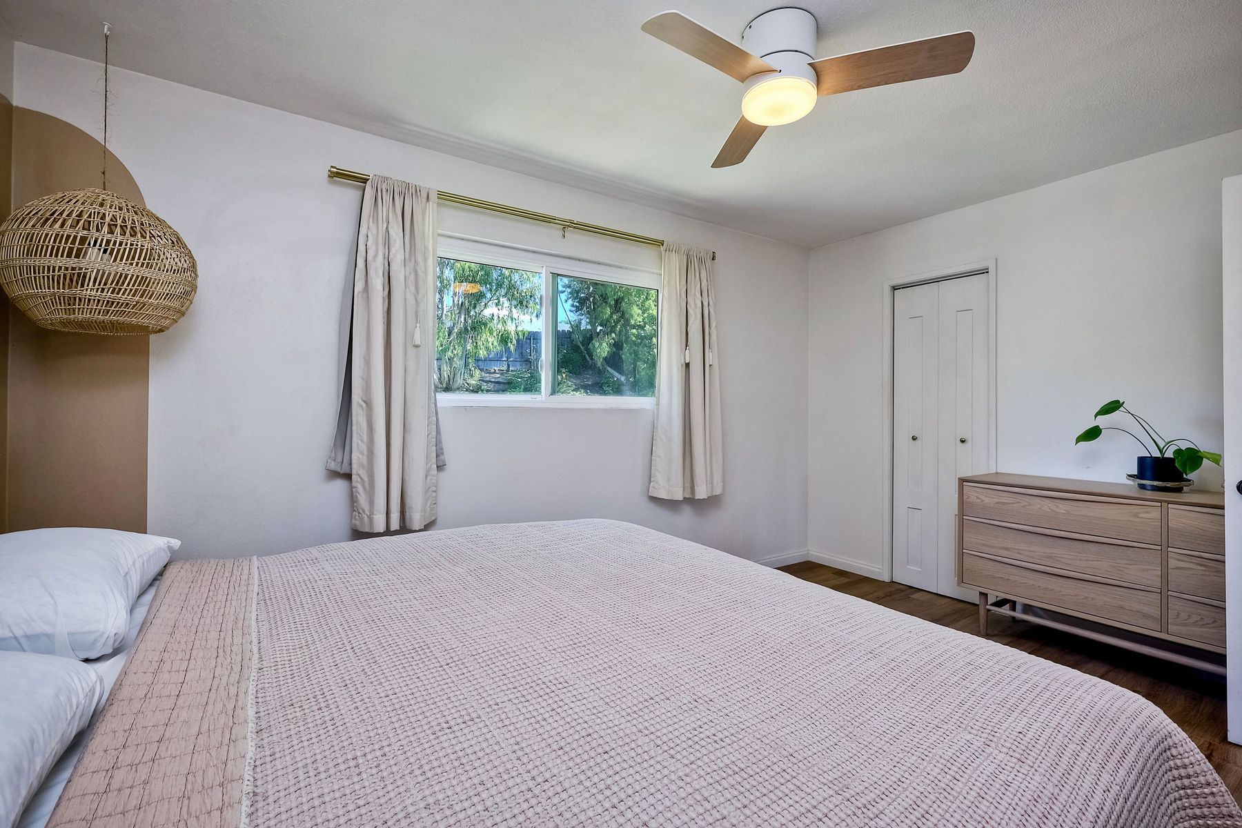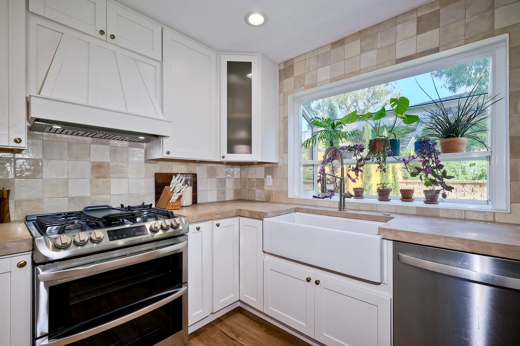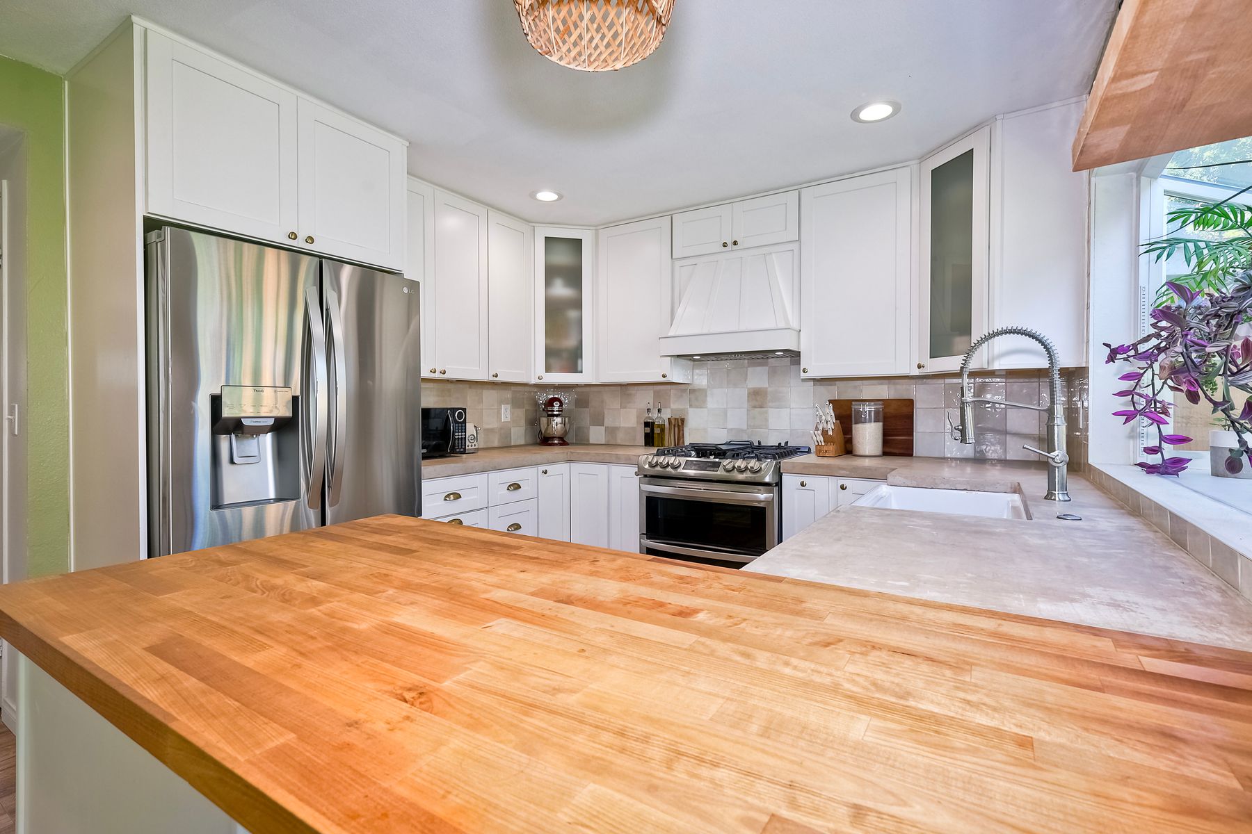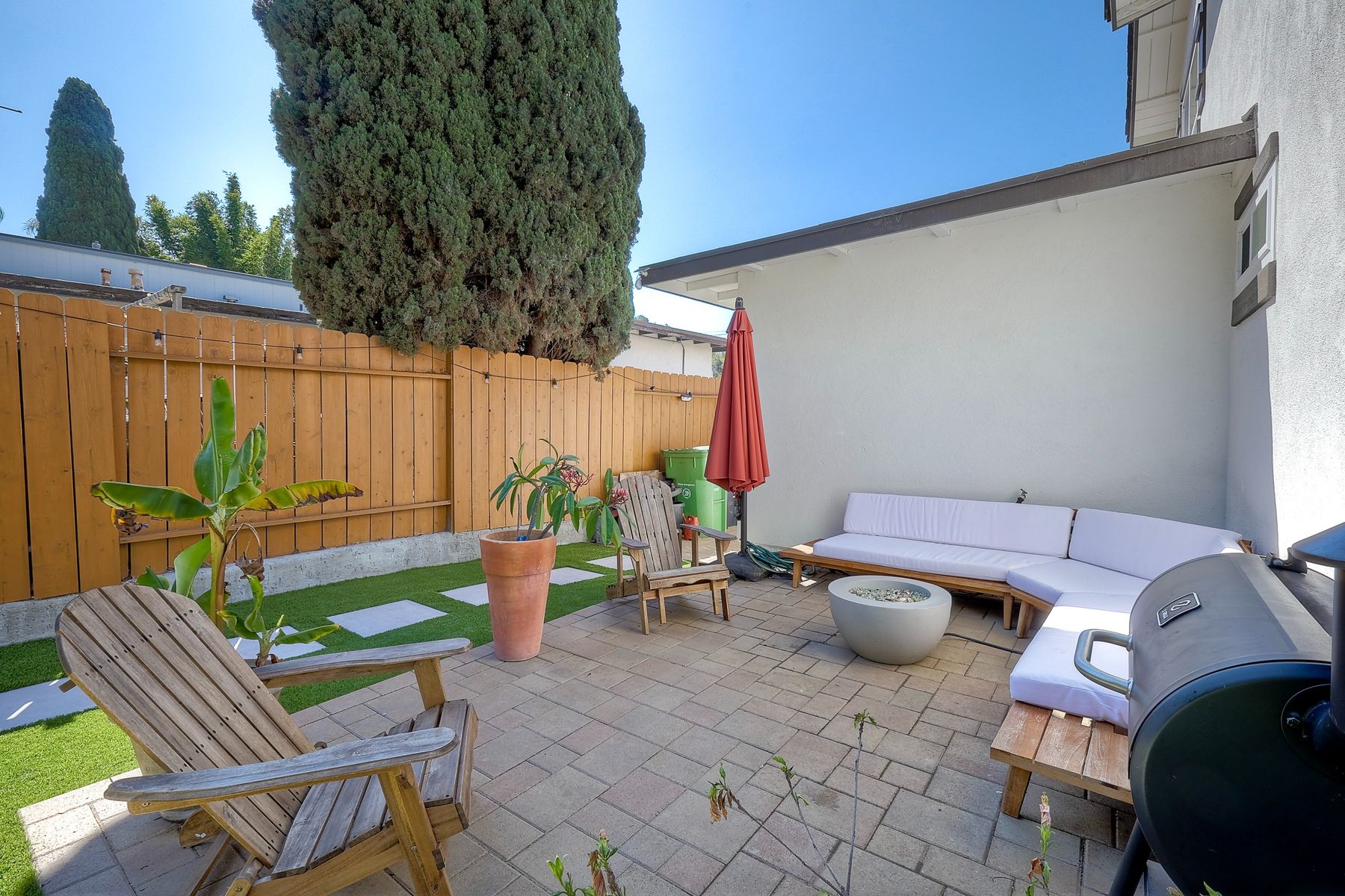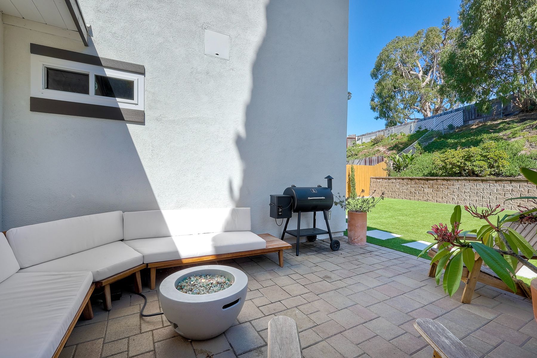 This beautifully remodeled 3-bedroom, 1.5-bathroom, 1,280 sq ft residence is nestled in the heart of Oceanside, and zoned for the highly sought-after Carlsbad School District. Just a few miles from the stunning coastline, this home combines modern comforts with coastal living. The freshly painted exterior and trim give the home a bright, inviting curb appeal. The private, low-maintenance yard features lush artificial turf, new drainage, new pavers and a brick retaining wall, and new fencing. The open-concept living space features exposed brick and LPV flooring throughout, adding warmth and style. The kitchen is a chef's dream with brand new cabinets, a farmhouse sink, stainless steel appliances, and beautiful wood and concrete countertops, complemented by a custom backsplash and recessed lighting. The newly added bay window brightens the kitchen, offering a perfect view of the backyard. The downstairs half bath boasts custom beadboard, elegant wallpaper, and chic fixtures. The upstairs bathroom features a brand-new bathtub, shower, tile, and barn door for a stylish touch. All bedrooms are equipped with ceiling fans for comfort. There are new windows throughout and upgraded insulation in the attic and walls provide energy efficiency and tranquility. A one-car garage with additional storage includes a side-by-side washer/dryer with direct access to the home. Enjoy easy access to shopping, dining, and the freeway, with the beach only short drive away. Calavera Hill Preserve is a quick 10 minute walk away where you can enjoy the year round perfect temperatures and surround yourself in nature. This location offers the perfect blend of coastal lifestyle and community amenities. This is the opportunity to own a fully remodeled home in a vibrant neighborhood with top-rated schools!