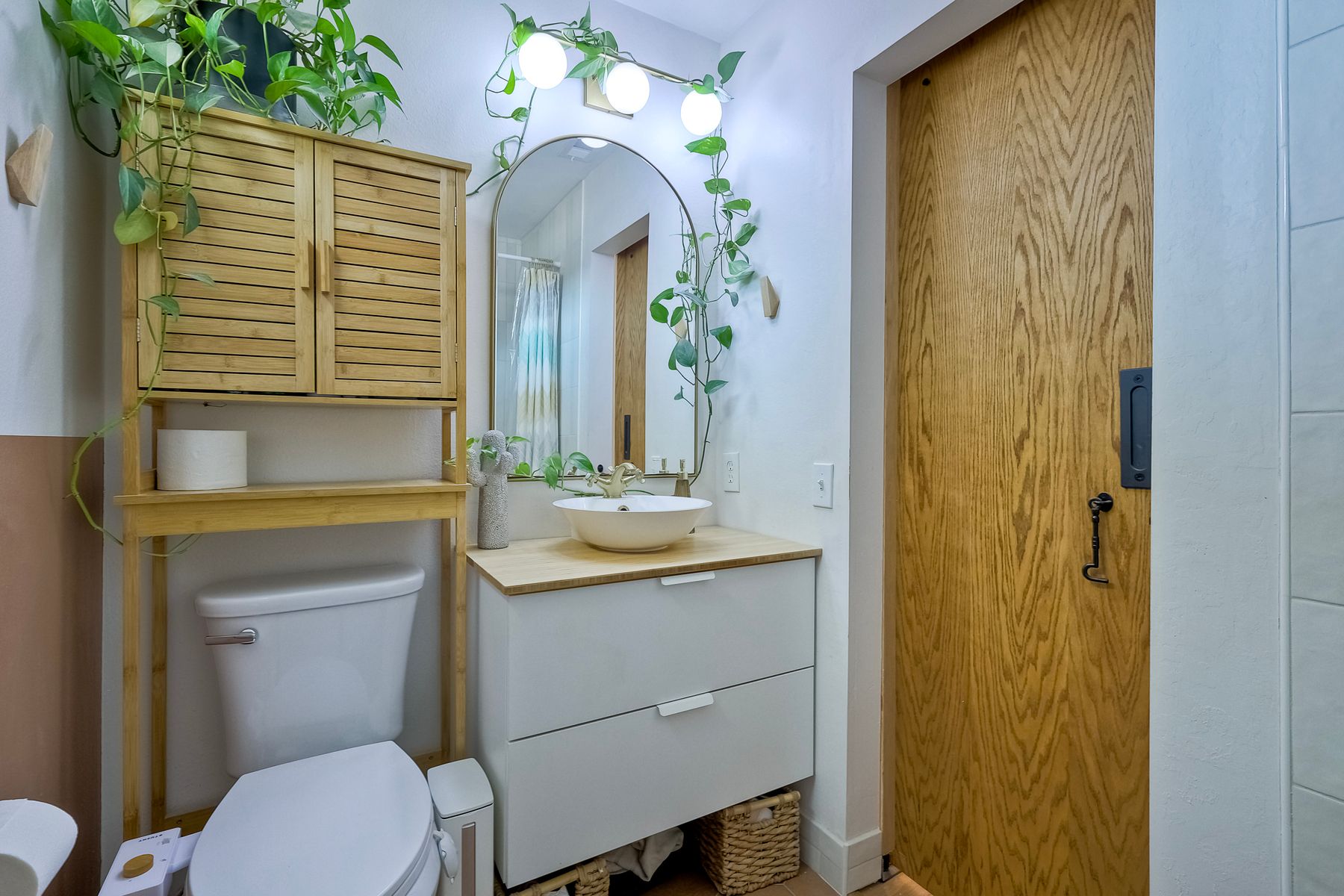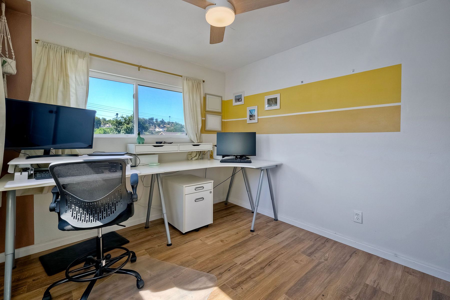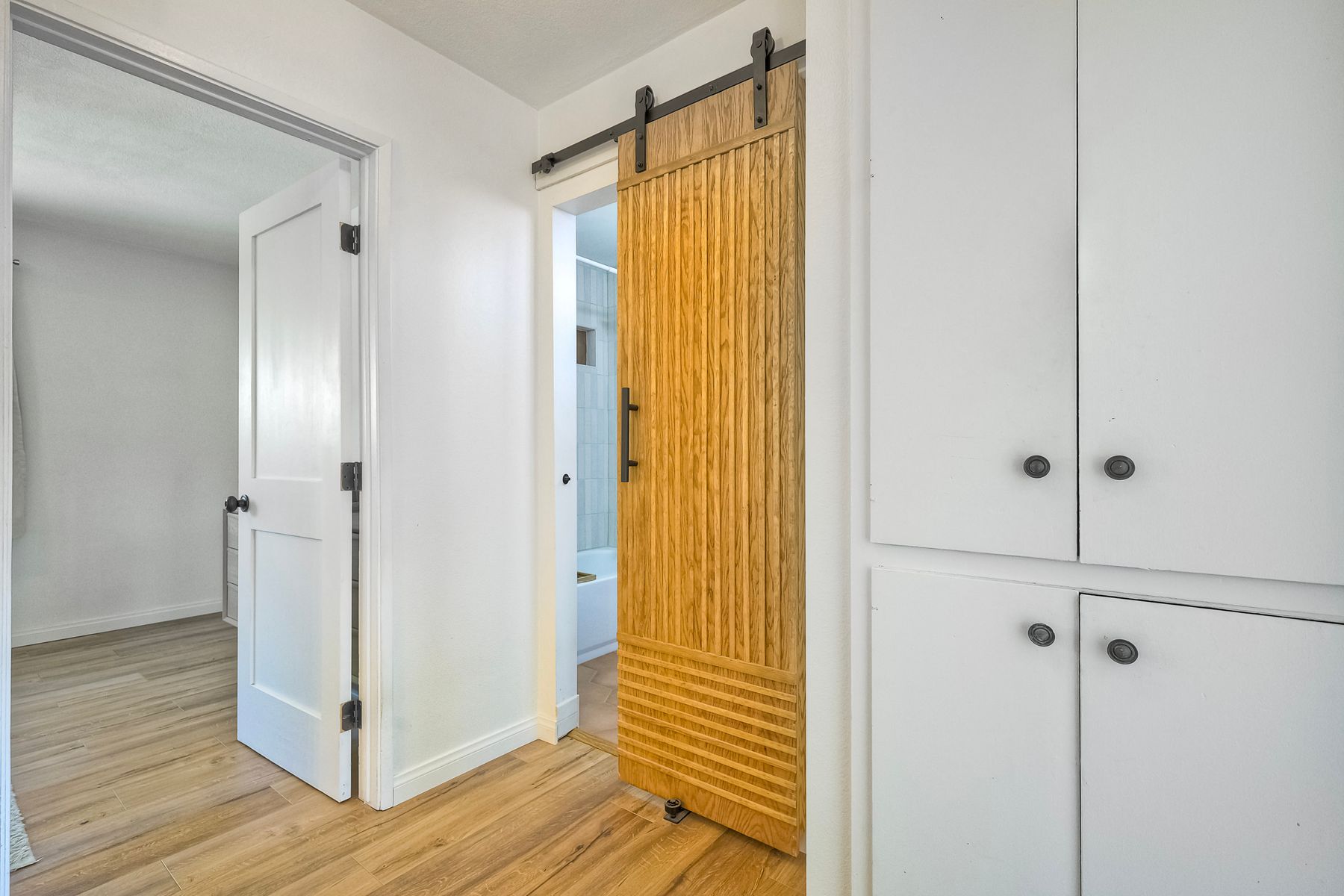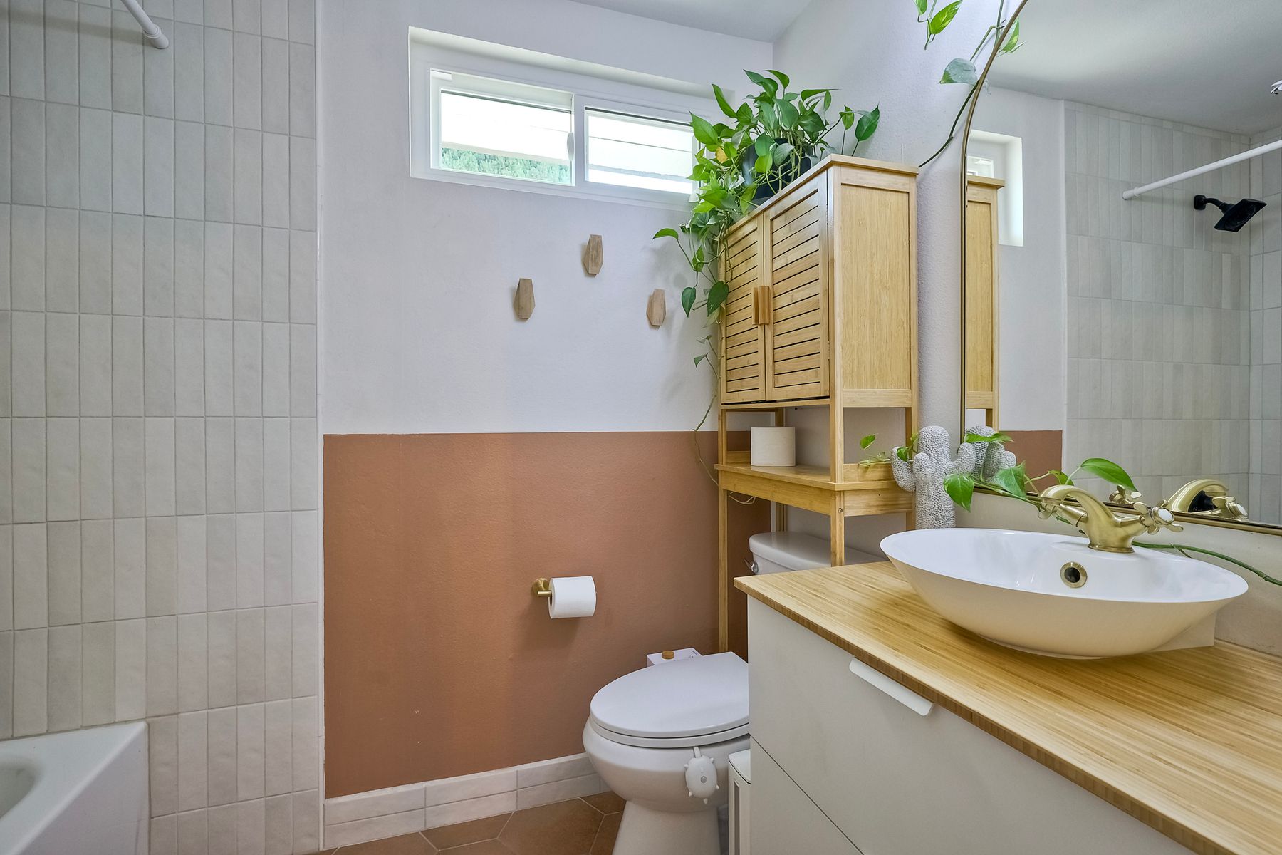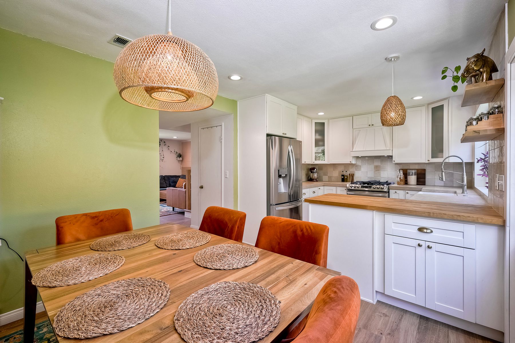 This beautifully remodeled 3-bedroom, 1.5-bathroom, 1,280 sq ft residence is nestled in the heart of Oceanside, and zoned for the highly sought-after Carlsbad School District. Just a few miles from the stunning coastline, this home combines modern comforts with coastal living. The freshly painted exterior and trim give the home a bright, inviting curb appeal. The private, low-maintenance yard features lush artificial turf, new drainage, new pavers and a brick retaining wall, and new fencing. The open-concept living space features exposed brick and LPV flooring throughout, adding warmth and style. The kitchen is a chef's dream with brand new cabinets, a farmhouse sink, stainless steel appliances, and beautiful wood and concrete countertops, complemented by a custom backsplash and recessed lighting. The newly added bay window brightens the kitchen, offering a perfect view of the backyard. The downstairs half bath boasts custom beadboard, elegant wallpaper, and chic fixtures. The upstairs bathroom features a brand-new bathtub, shower, tile, and barn door for a stylish touch. All bedrooms are equipped with ceiling fans for comfort. There are new windows throughout and upgraded insulation in the attic and walls provide energy efficiency and tranquility. A one-car garage with additional storage includes a side-by-side washer/dryer with direct access to the home. Enjoy easy access to shopping, dining, and the freeway, with the beach only short drive away. Calavera Hill Preserve is a quick 10 minute walk away where you can enjoy the year round perfect temperatures and surround yourself in nature. This location offers the perfect blend of coastal lifestyle and community amenities. This is the opportunity to own a fully remodeled home in a vibrant neighborhood with top-rated schools!