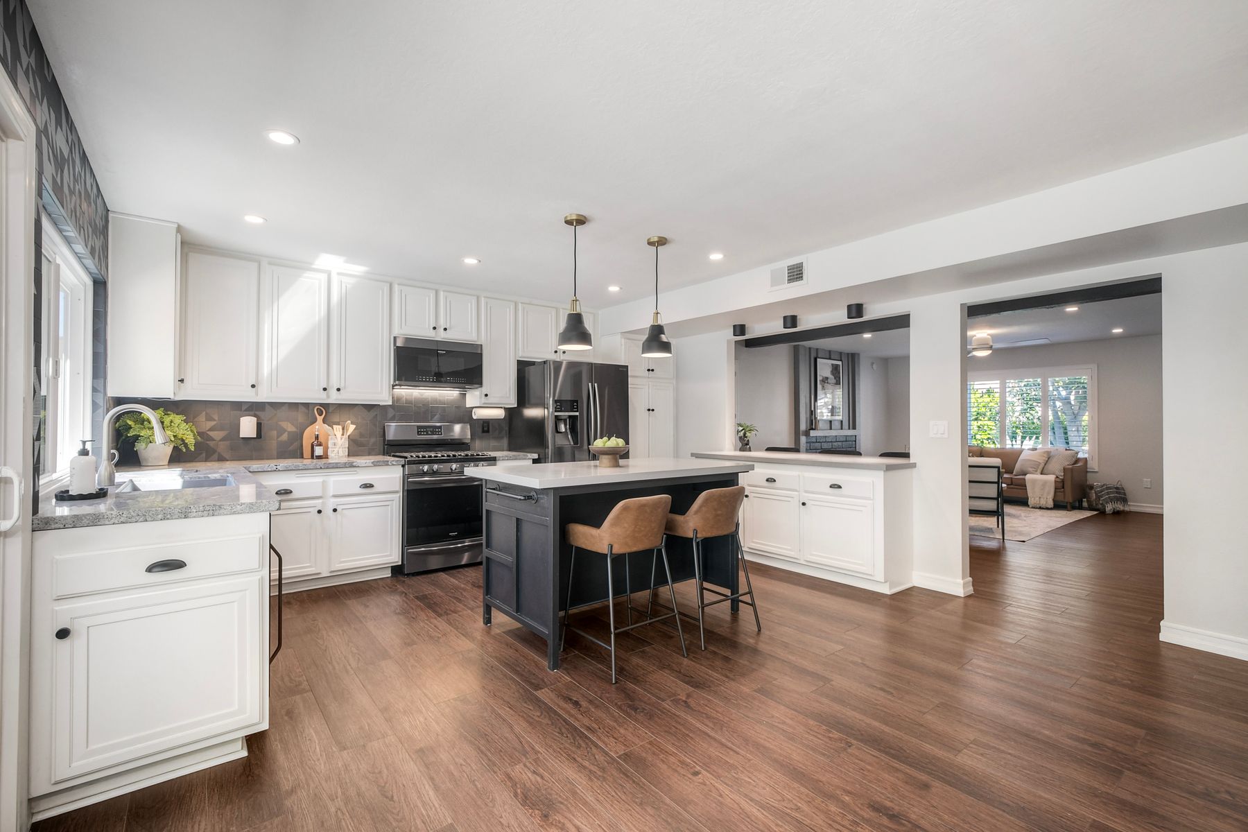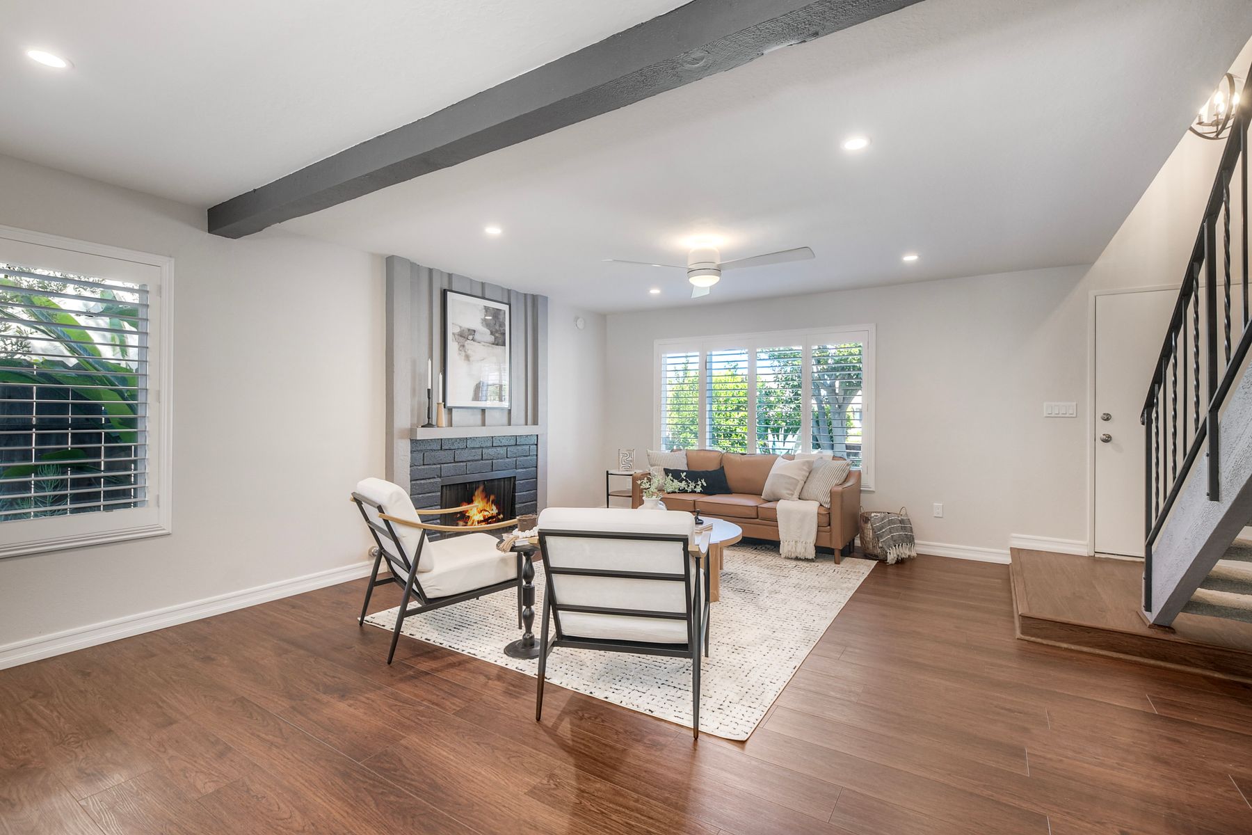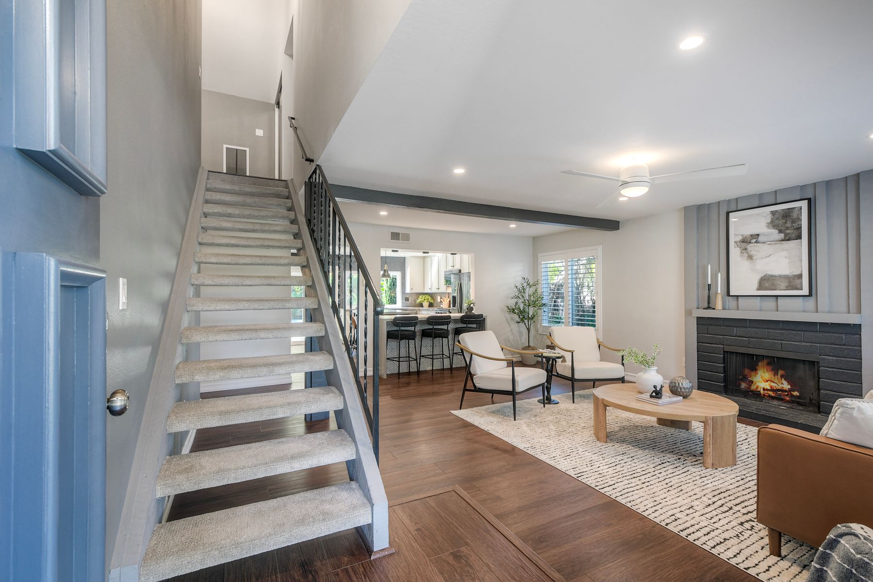 A playful yet refined coastal retreat just five miles from the beach in Oceanside - San Diego’s newest vacation destination. Designed to live like a single story, this beautifully remodeled home blends everyday comfort with a relaxed, getaway-inspired vibe. From the moment you arrive, custom drought-tolerant landscaping and designer details set the tone for effortless coastal living. The expansive backyard is an entertainer’s dream, featuring a sparkling pool and spa finished in mini pebble tec, a large covered patio with skylights, and ample space to relax, gather, or expand. No HOA adds flexibility and freedom, while a very private primary suite on the entry level enhances livability and privacy. Completely remodeled from top to bottom, this move-in-ready home showcases luxury vinyl plank flooring throughout, newer windows and sliders, and high-end wooden shutters that elevate both style and function. The spacious kitchen features granite counters and opens seamlessly to the great room and dining area, accented by tasteful tile feature walls and designer finishes. Two and a half custom baths include gorgeous tile floors, custom vanities with granite counters, and soft-close drawers. An entry-level bedroom currently staged as an office offers flexible use as a dining room or bedroom, while upstairs guest bedrooms feature vaulted ceilings and a cozy loft ideal for reading or relaxing. Major system upgrades include a roof replaced in 2023, newer furnace, and newer water heater, offering peace of mind for years to come. Additional highlights include a whole-house fan including the garage, abundant attic storage, and a three-car garage with stylish accent doors. Ideally located near shopping, beautiful beaches, and easy freeway access, this immaculate home delivers a lifestyle that feels like a vacation while remaining perfectly suited for full-time living.