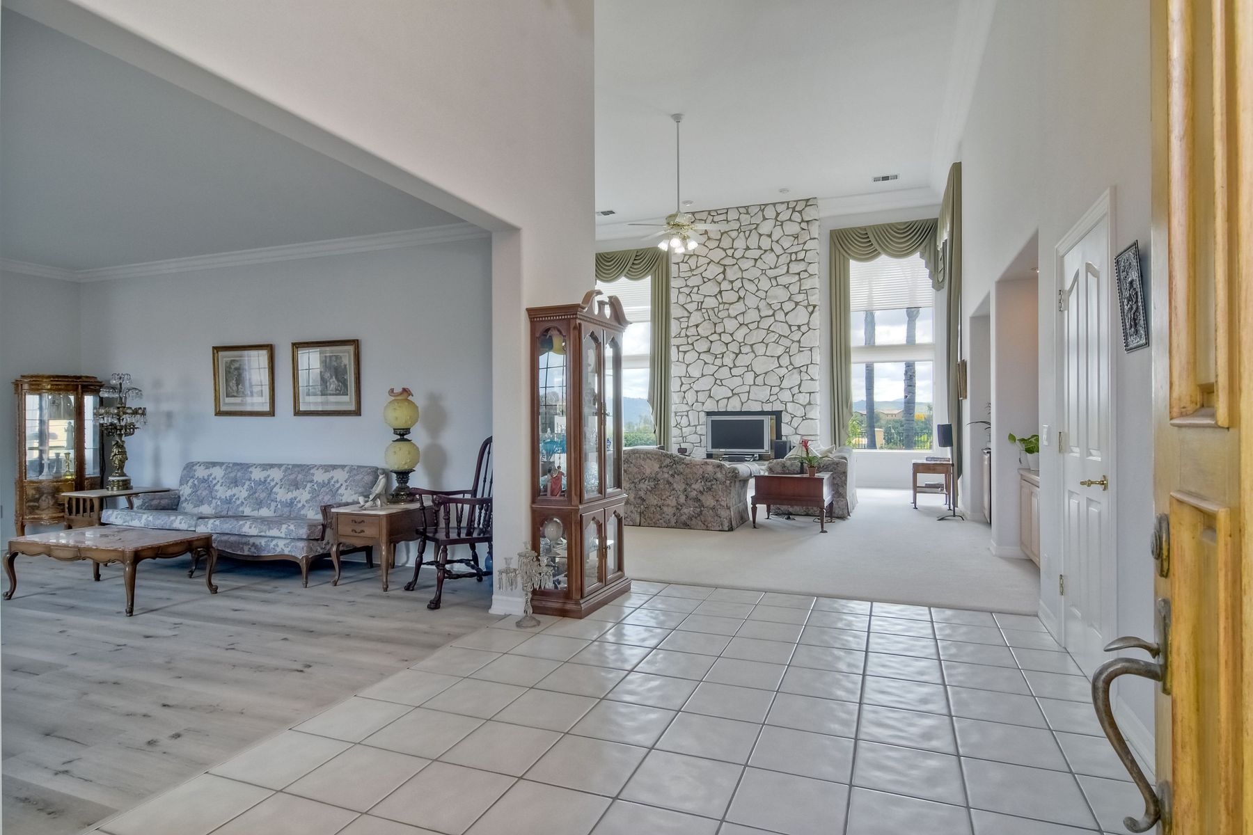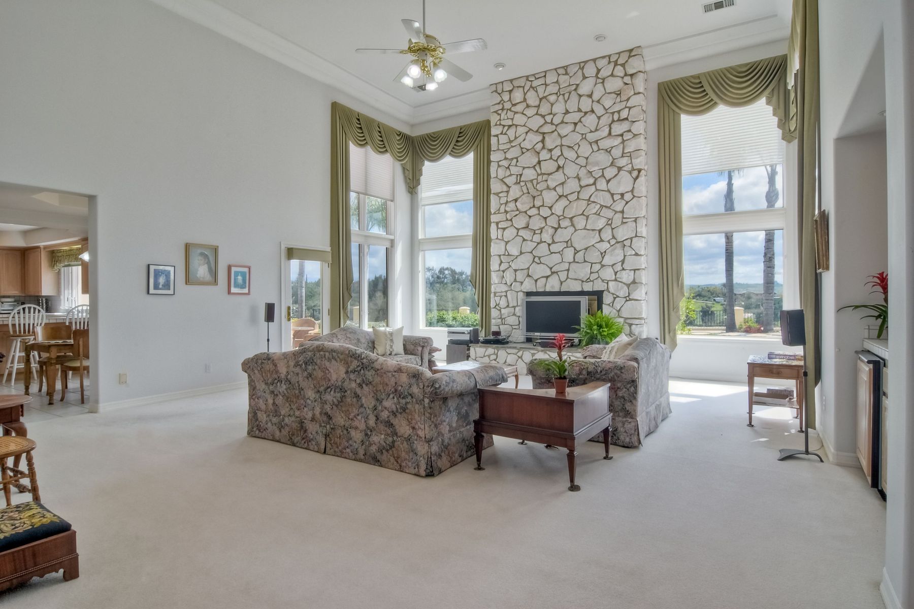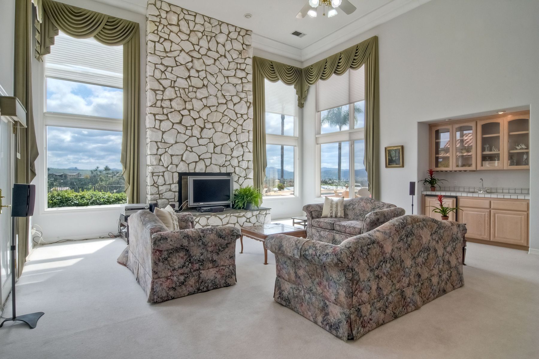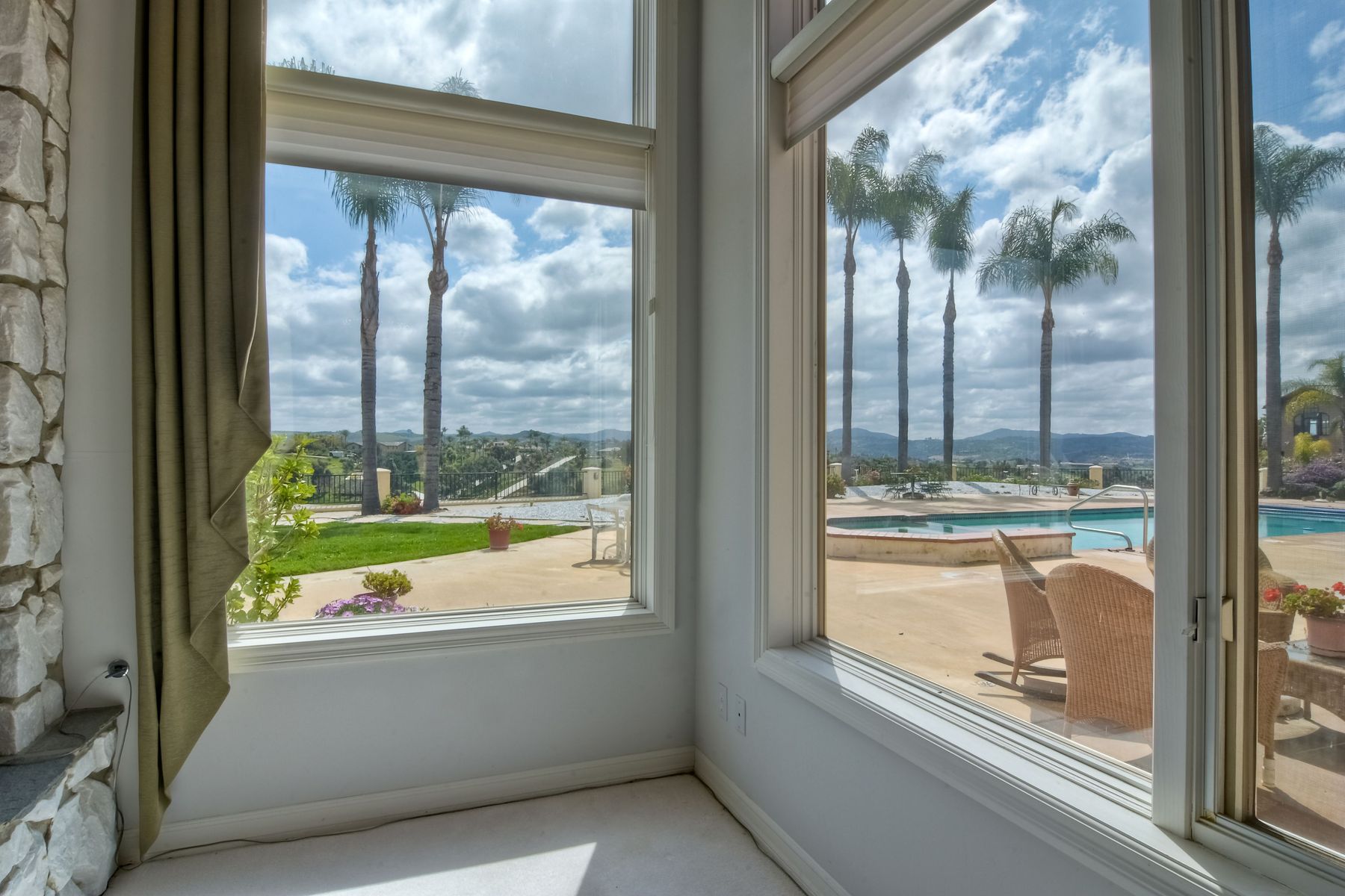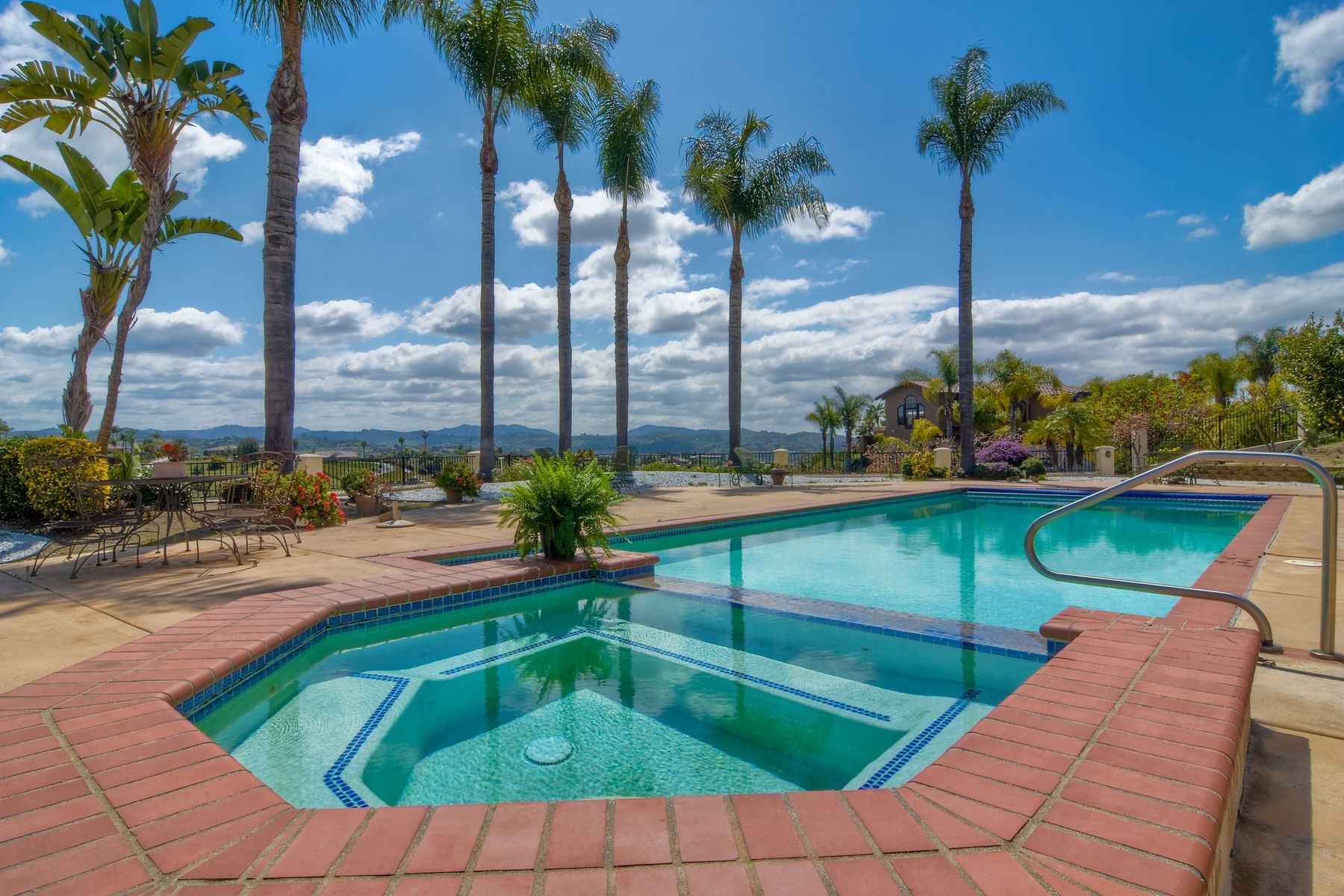 Enjoy incredible panoramic views and gorgeous sunrises every day from this single story resort style living home in Fallbrook! Sparkling outdoor swimming pool and spa are ready for your summer entertaining. Expansive outdoor living space is excellent for indoor/outdoor living! 5 large bedrooms with 5 Full Baths, soaring family room ceilings are ready for your family or guests! Paid solar system for low electric bills! Easy access to Hwy 76, I-15 and I-5, shopping, beaches and restaurants. Enjoy the wonderful ocean breezes from this premium location that also includes approximately 100 mature citrus trees and other " family fruit" selection of trees! A concrete path leads down to the grove where this also a large metal shed. Fully fenced and gated in a neighborhood of other estate quality homes!