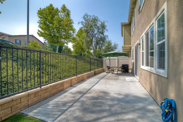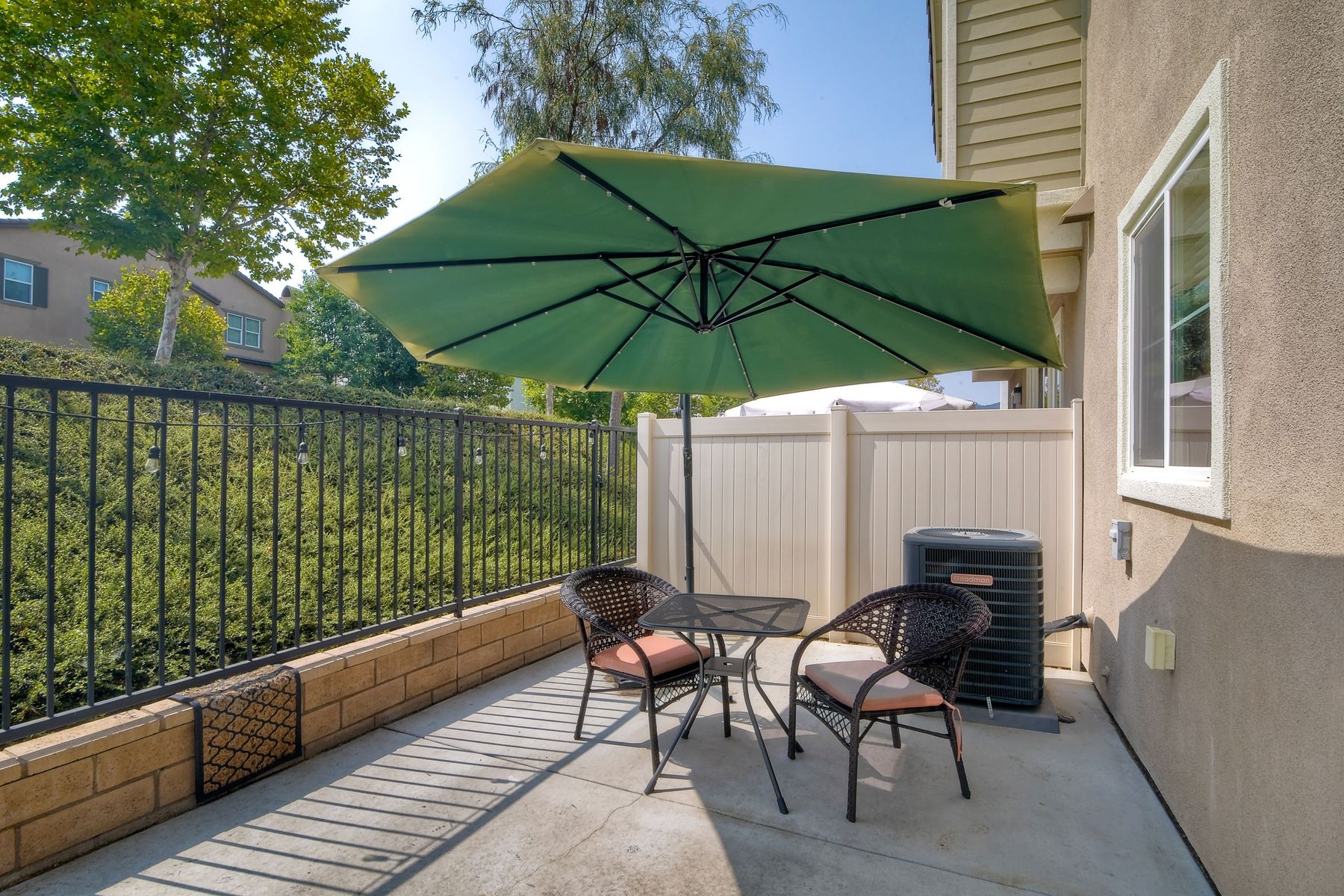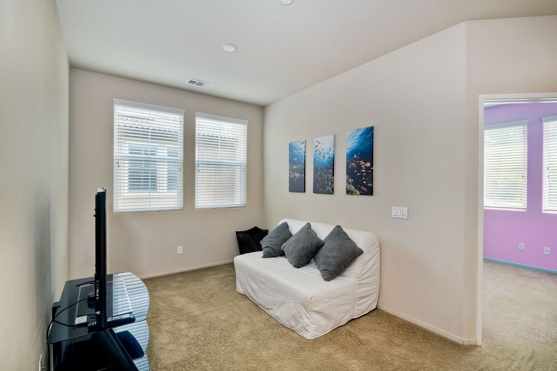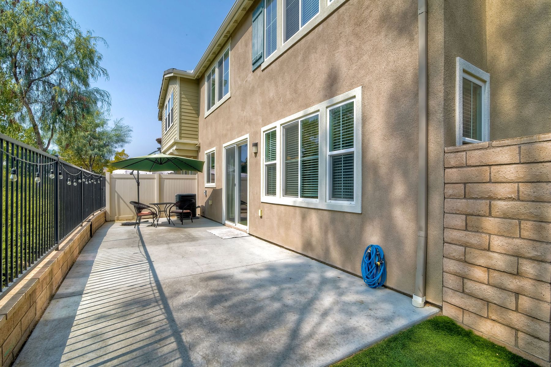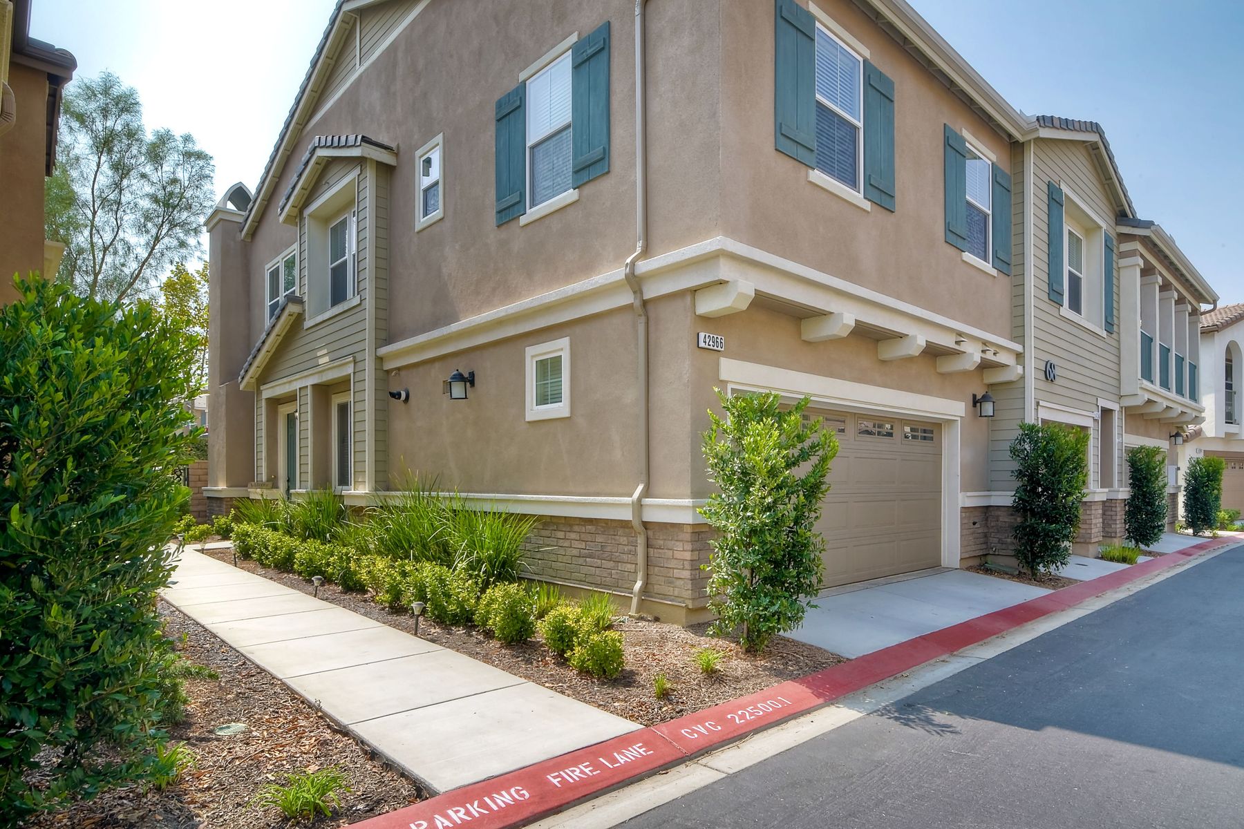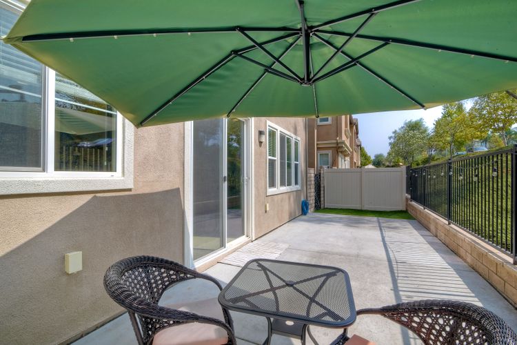 LOW, LOW TAXES, NO MELLO-ROOS! Highly desirable BelVista Plan 3. Premium location, no back yard neighbor. Large back patio with grassy area, perfect or SoCal outdoor living. Adjoining walls are constructed w/ 4" air gap separation with a double layer of drywall on each living space side. This provides nearly sound-proof living. Granite kitchen counters w/ contemporary dark cabinets. Upgrades include open stair rail system, 20x20 porcelain tile in kitchen, dining room and living room. Ceiling fans in all bedrooms, prewired in loft. Builder pre-paid 20-year solar lease providing huge energy savings with no solar payments. You'll only pay low, low usage cost. Tankless water heater, radiant barrier roof sheathing, and Low-E dual glazed windows add to the utility savings. Direct access 2-car garage. Resort-style living with pool, spa, parks, barbecue grills, covered picnic areas, and tot lot. Temecula schools are top notch and the elementary school was recently renovated with state of the art features. You'll enjoy the close proximity to restaurants, Temecula's majestic wineries, golf courses, and the Promenade mall. This is the largest model in Bel Vista boasting 1,739 square feet, 3 bedrooms, 2 1/2 baths, PLUS den downstairs and loft upstairs. The den can easily be converted to a bedroom and powder room to full bath as it is pre-plumbed to add a shower. Empty-nesters, young professionals, and families all love Bel Vista. Sure to sell quickly, so don't miss out.