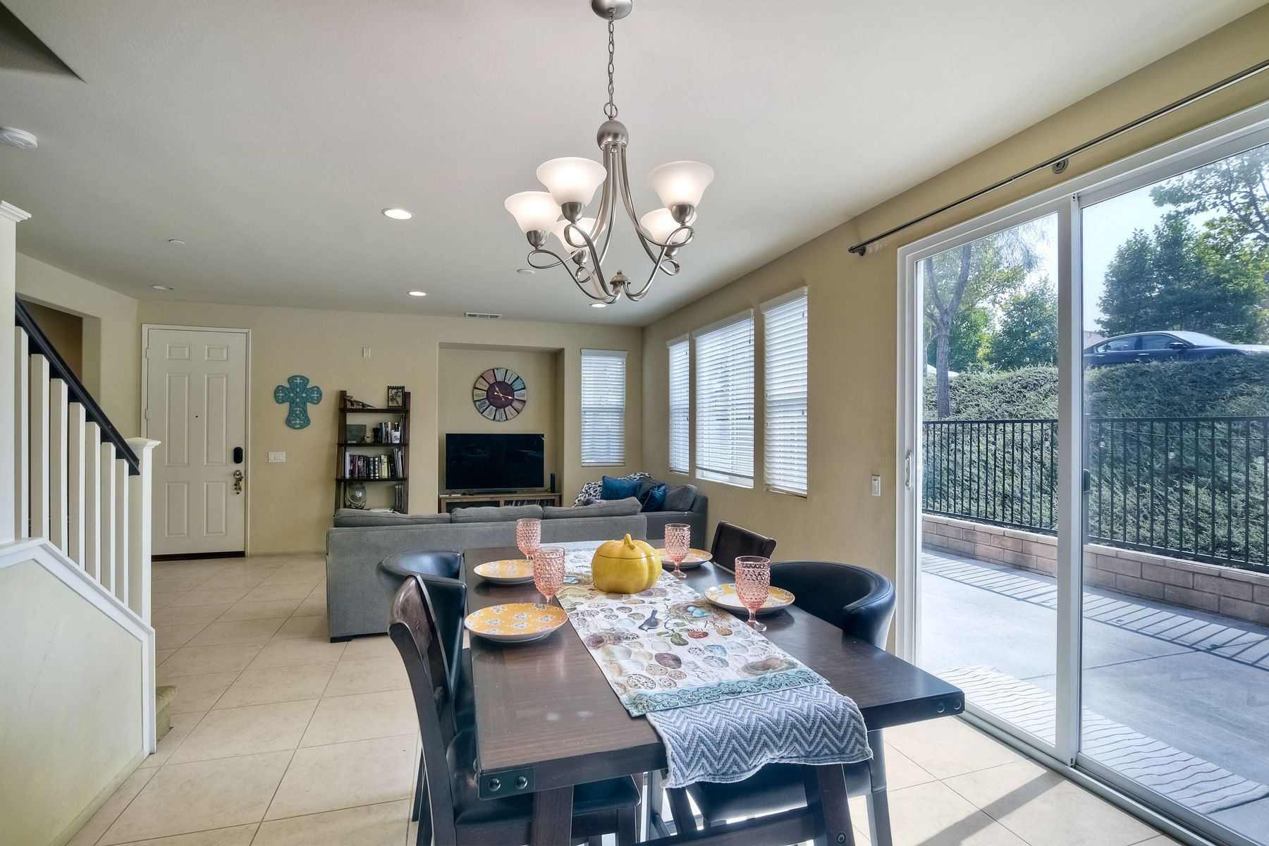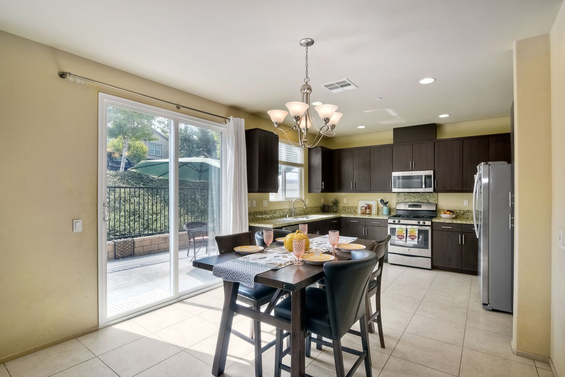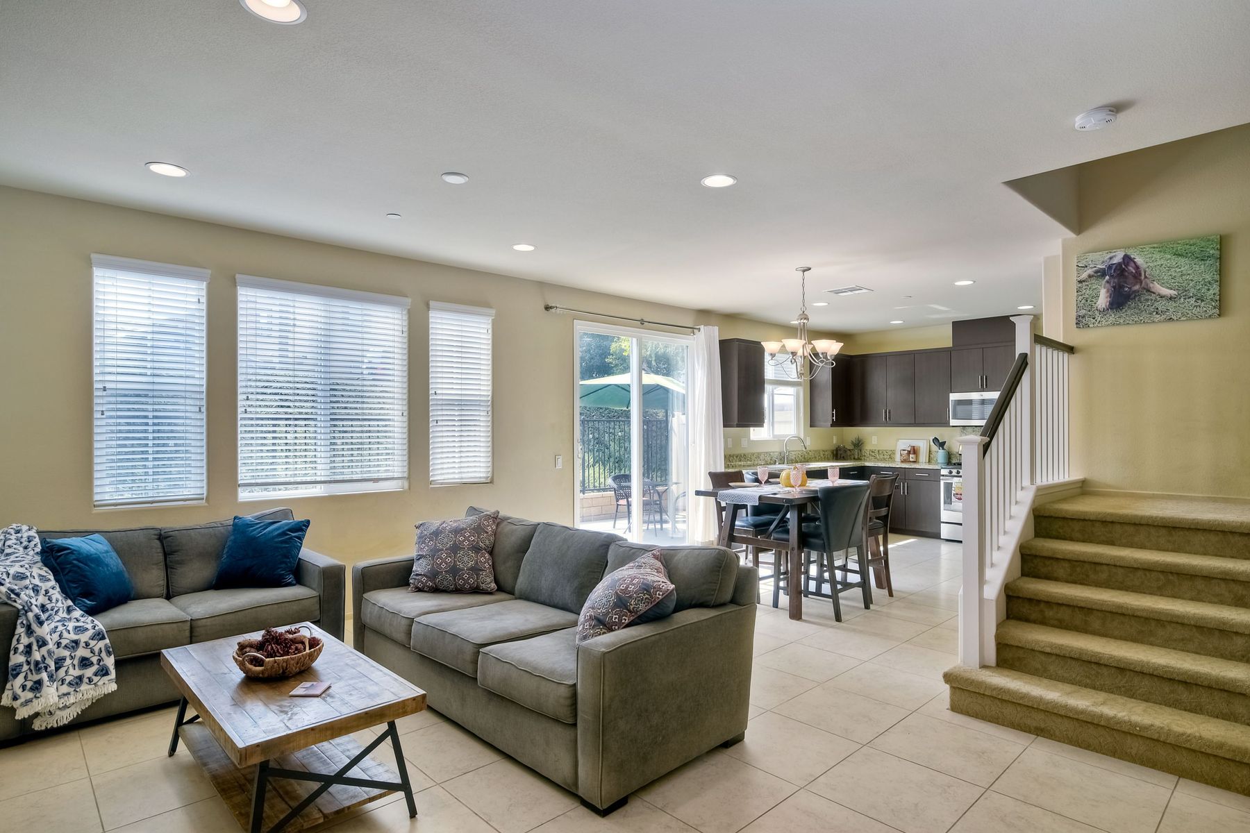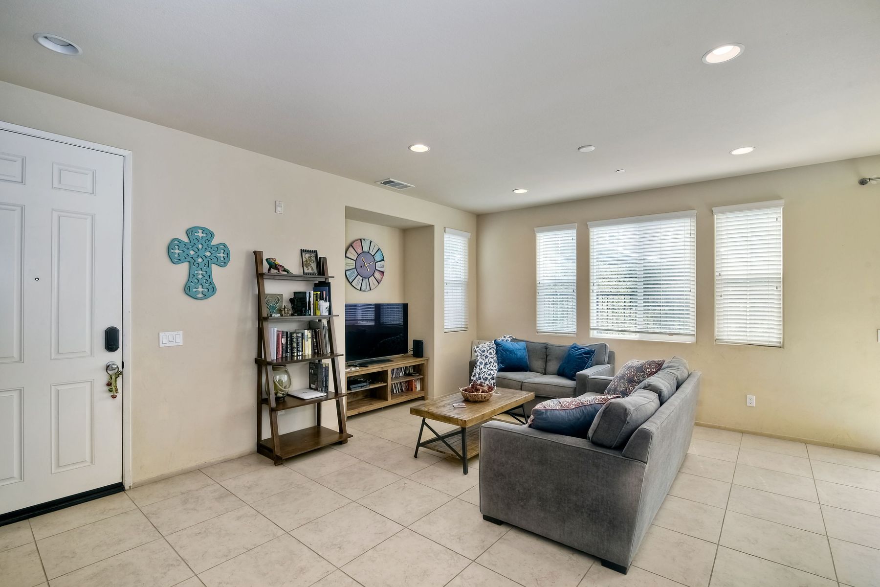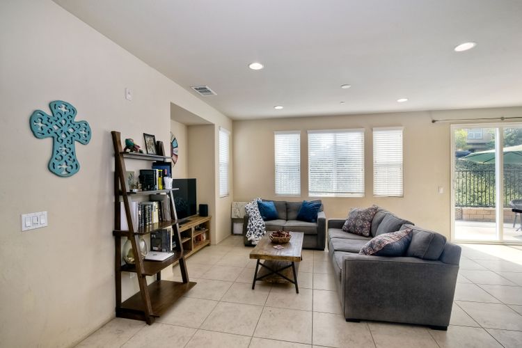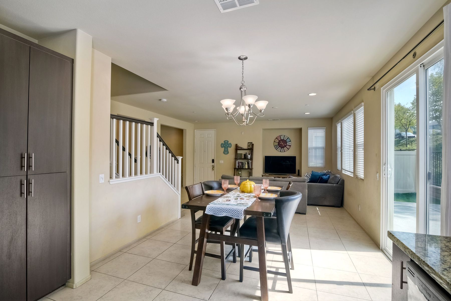 LOW, LOW TAXES, NO MELLO-ROOS! Highly desirable BelVista Plan 3. Premium location, no back yard neighbor. Large back patio with grassy area, perfect or SoCal outdoor living. Adjoining walls are constructed w/ 4" air gap separation with a double layer of drywall on each living space side. This provides nearly sound-proof living. Granite kitchen counters w/ contemporary dark cabinets. Upgrades include open stair rail system, 20x20 porcelain tile in kitchen, dining room and living room. Ceiling fans in all bedrooms, prewired in loft. Builder pre-paid 20-year solar lease providing huge energy savings with no solar payments. You'll only pay low, low usage cost. Tankless water heater, radiant barrier roof sheathing, and Low-E dual glazed windows add to the utility savings. Direct access 2-car garage. Resort-style living with pool, spa, parks, barbecue grills, covered picnic areas, and tot lot. Temecula schools are top notch and the elementary school was recently renovated with state of the art features. You'll enjoy the close proximity to restaurants, Temecula's majestic wineries, golf courses, and the Promenade mall. This is the largest model in Bel Vista boasting 1,739 square feet, 3 bedrooms, 2 1/2 baths, PLUS den downstairs and loft upstairs. The den can easily be converted to a bedroom and powder room to full bath as it is pre-plumbed to add a shower. Empty-nesters, young professionals, and families all love Bel Vista. Sure to sell quickly, so don't miss out.
