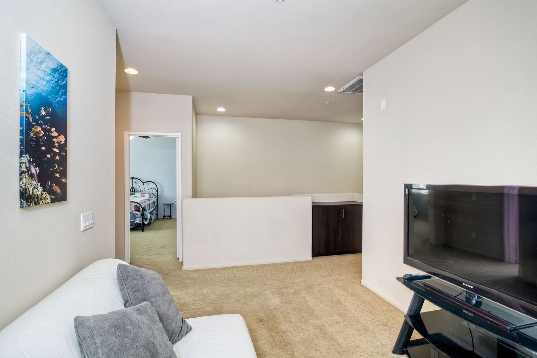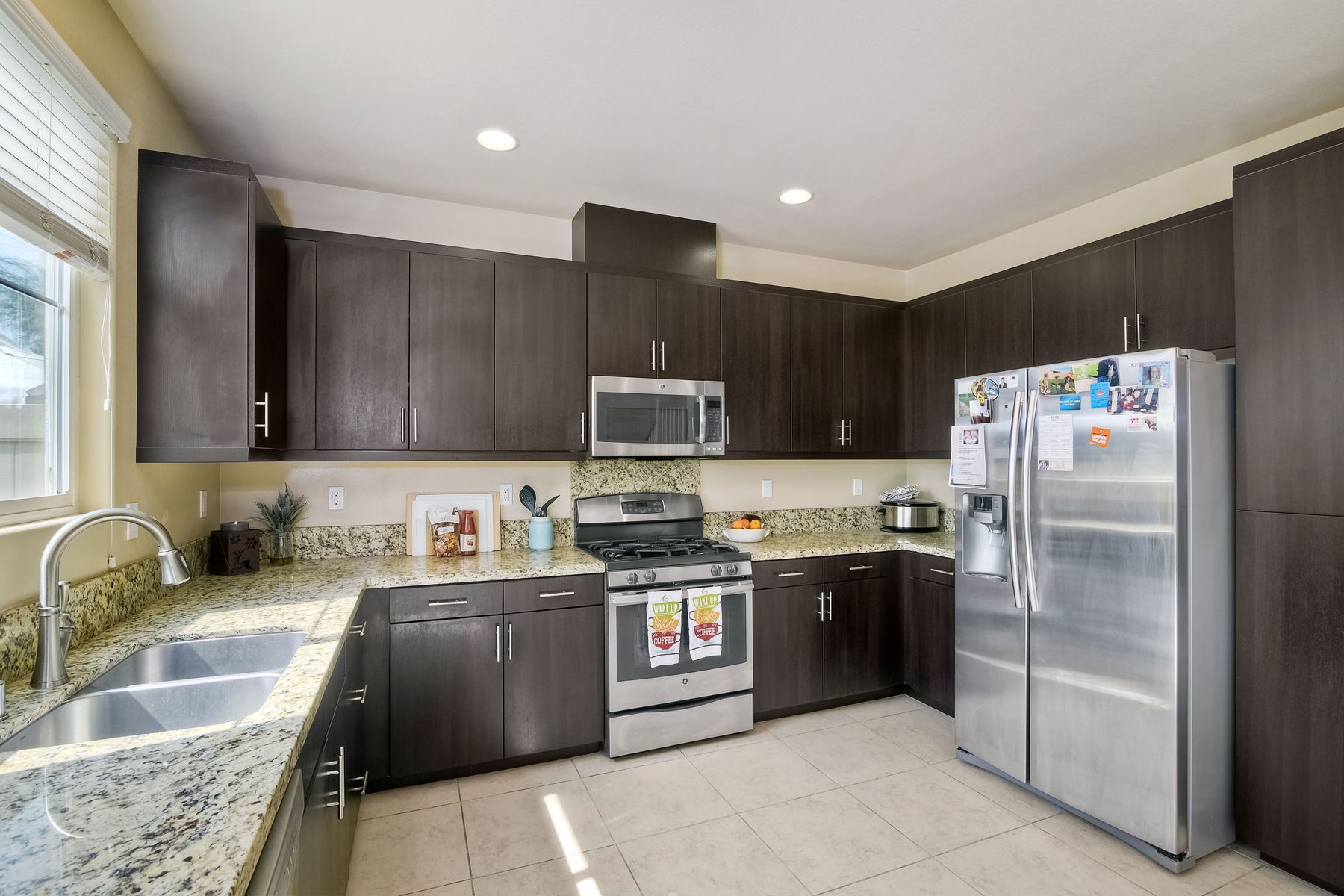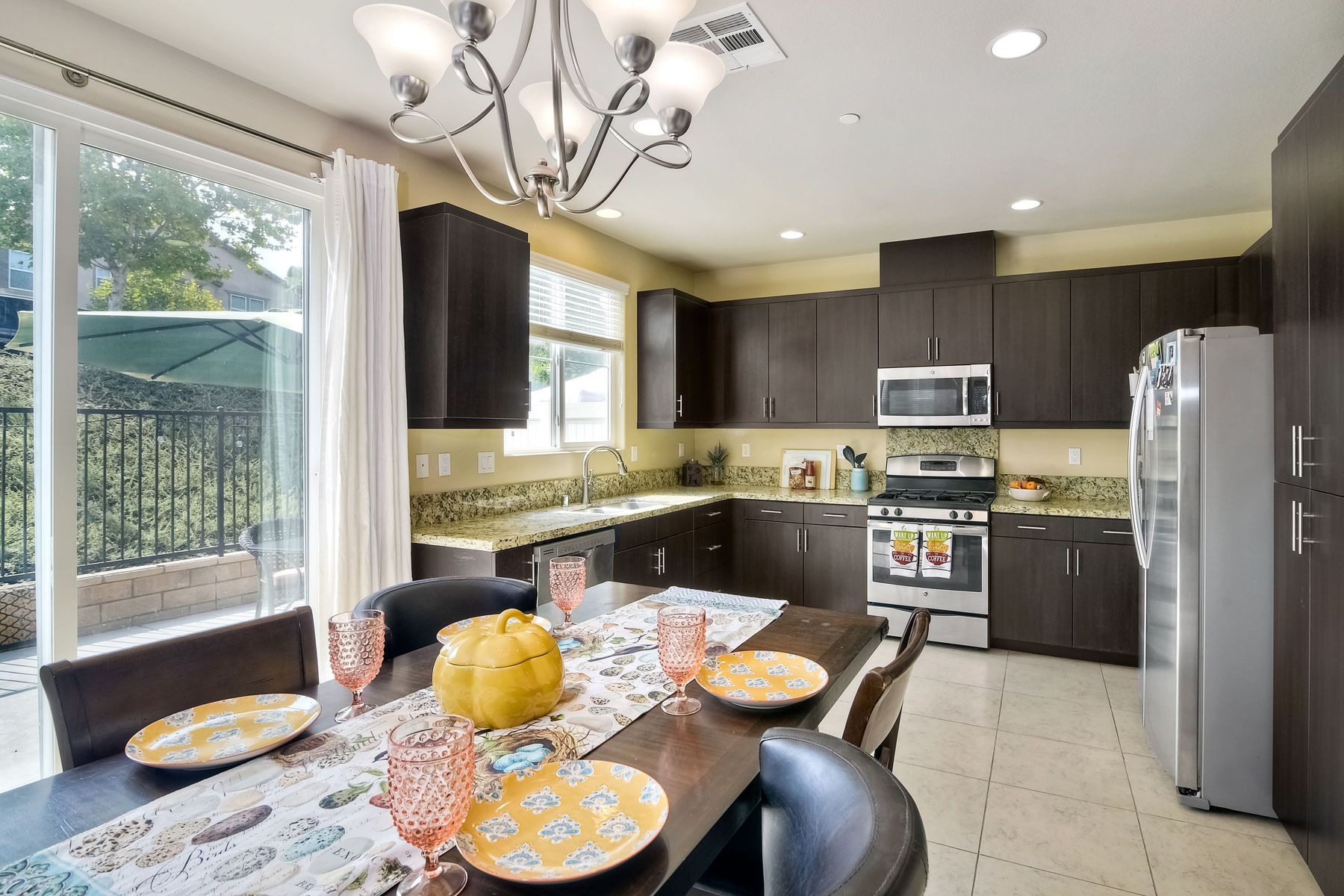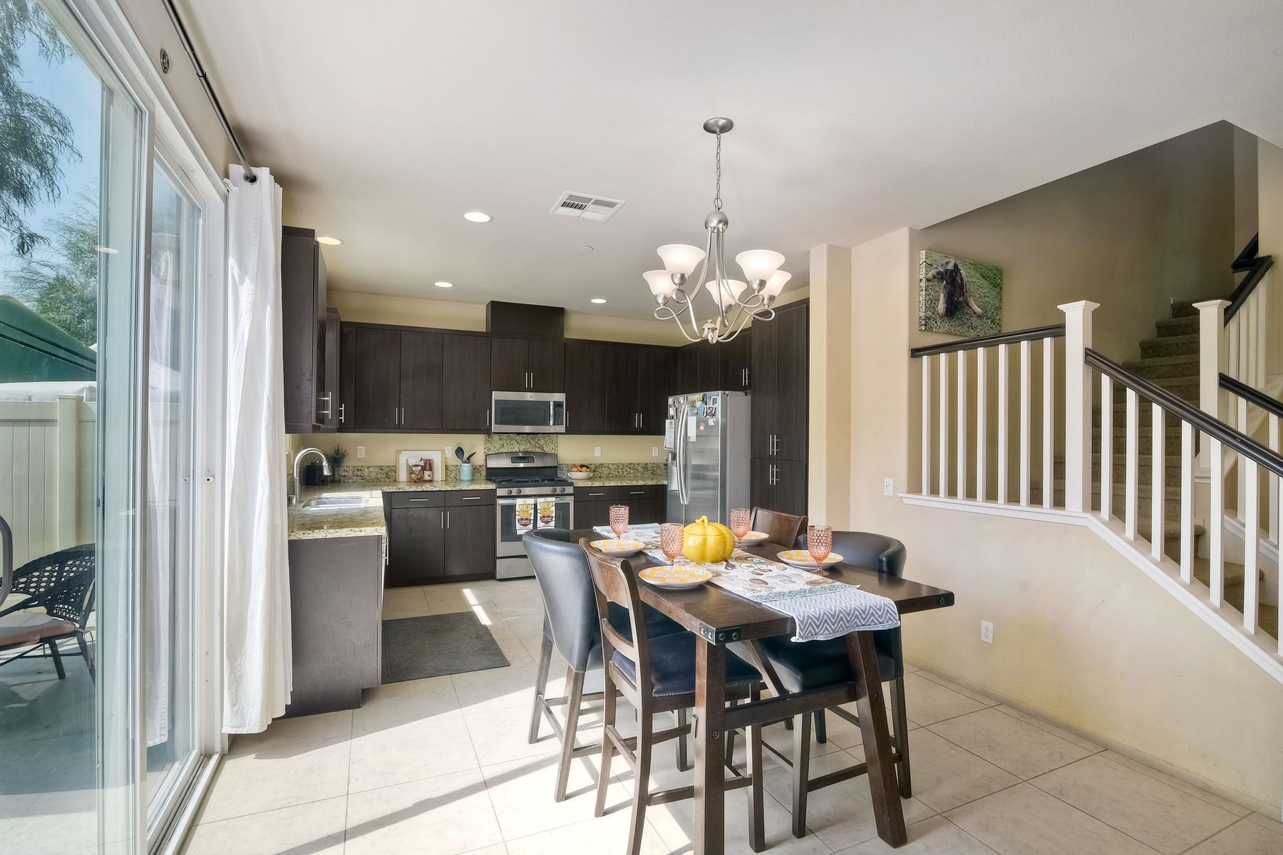 LOW, LOW TAXES, NO MELLO-ROOS! Highly desirable BelVista Plan 3. Premium location, no back yard neighbor. Large back patio with grassy area, perfect or SoCal outdoor living. Adjoining walls are constructed w/ 4" air gap separation with a double layer of drywall on each living space side. This provides nearly sound-proof living. Granite kitchen counters w/ contemporary dark cabinets. Upgrades include open stair rail system, 20x20 porcelain tile in kitchen, dining room and living room. Ceiling fans in all bedrooms, prewired in loft. Builder pre-paid 20-year solar lease providing huge energy savings with no solar payments. You'll only pay low, low usage cost. Tankless water heater, radiant barrier roof sheathing, and Low-E dual glazed windows add to the utility savings. Direct access 2-car garage. Resort-style living with pool, spa, parks, barbecue grills, covered picnic areas, and tot lot. Temecula schools are top notch and the elementary school was recently renovated with state of the art features. You'll enjoy the close proximity to restaurants, Temecula's majestic wineries, golf courses, and the Promenade mall. This is the largest model in Bel Vista boasting 1,739 square feet, 3 bedrooms, 2 1/2 baths, PLUS den downstairs and loft upstairs. The den can easily be converted to a bedroom and powder room to full bath as it is pre-plumbed to add a shower. Empty-nesters, young professionals, and families all love Bel Vista. Sure to sell quickly, so don't miss out.