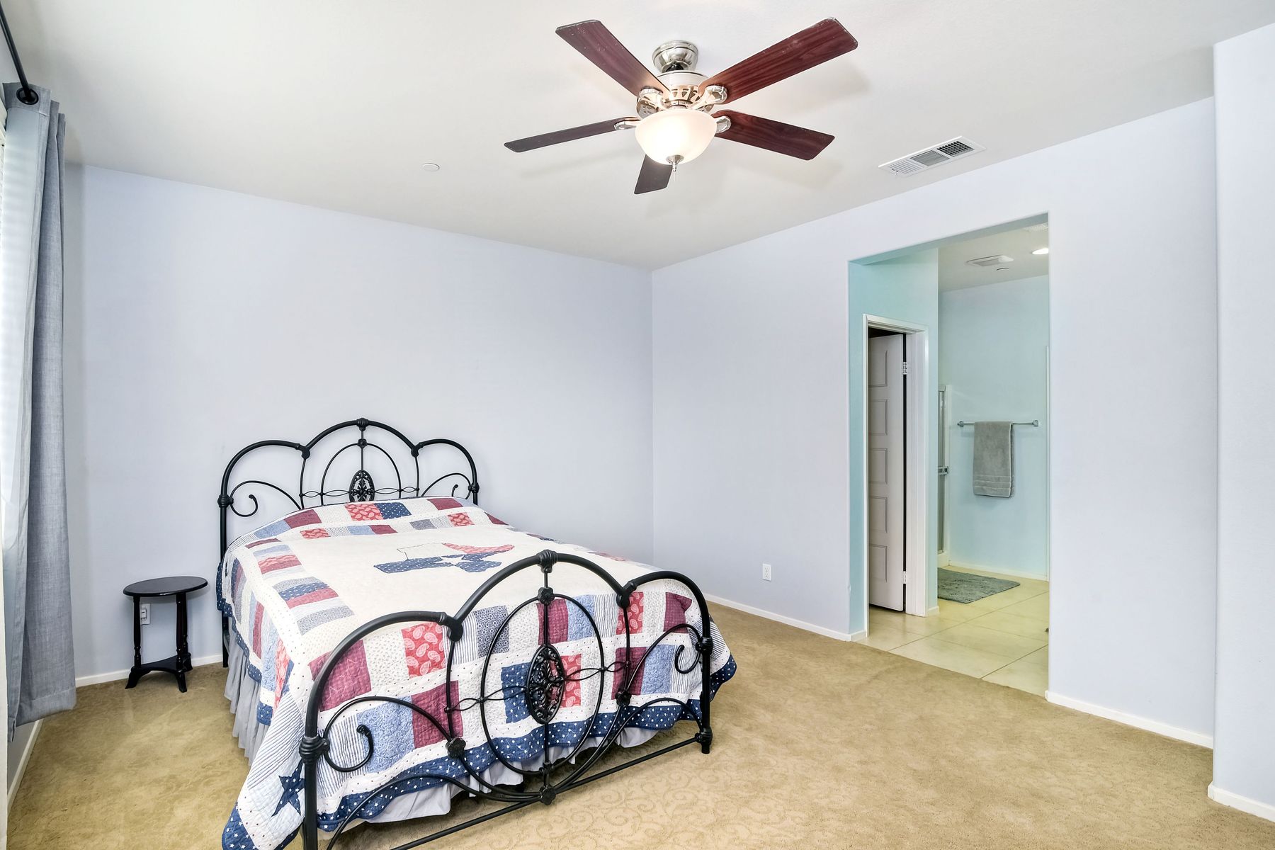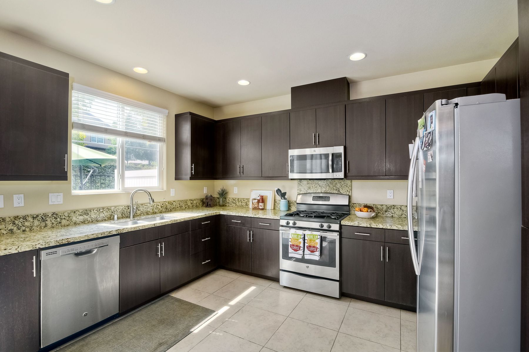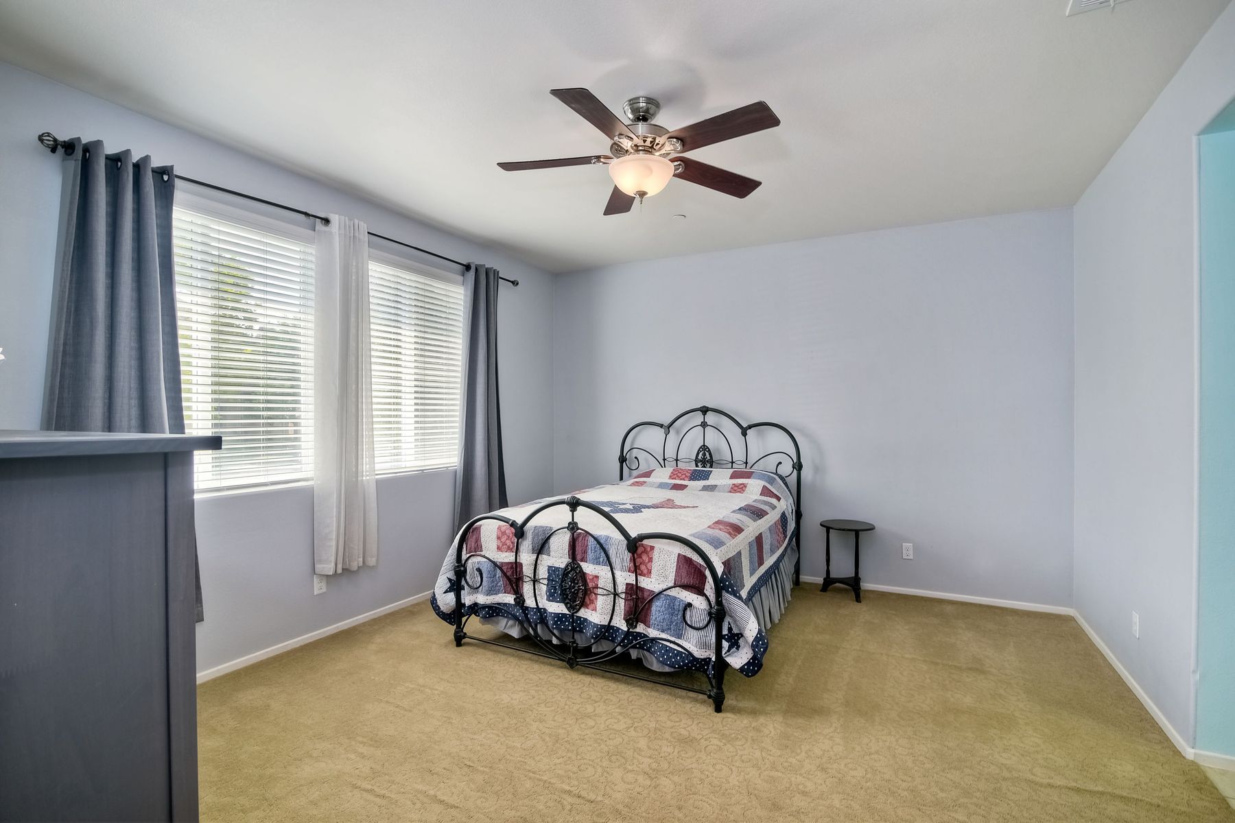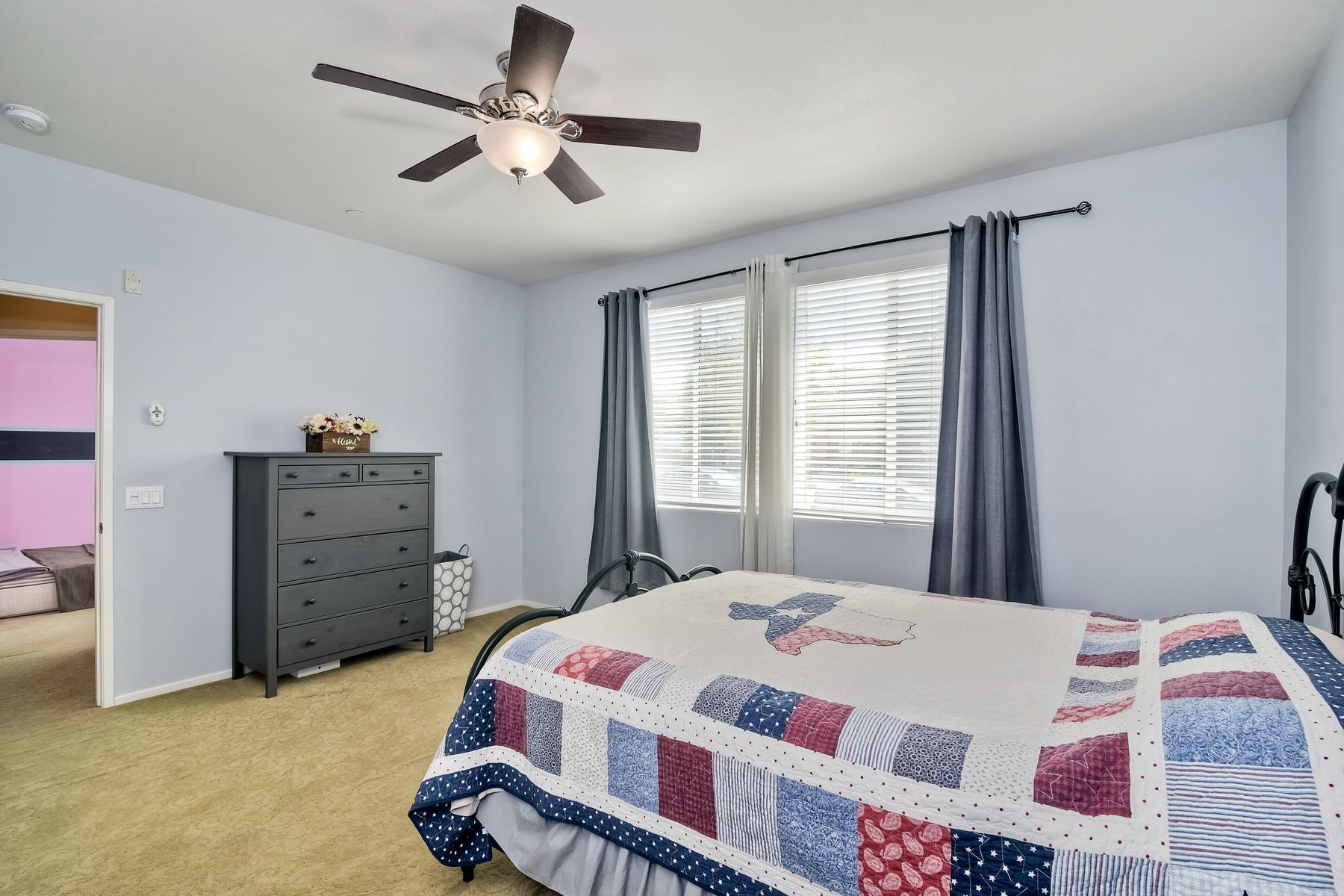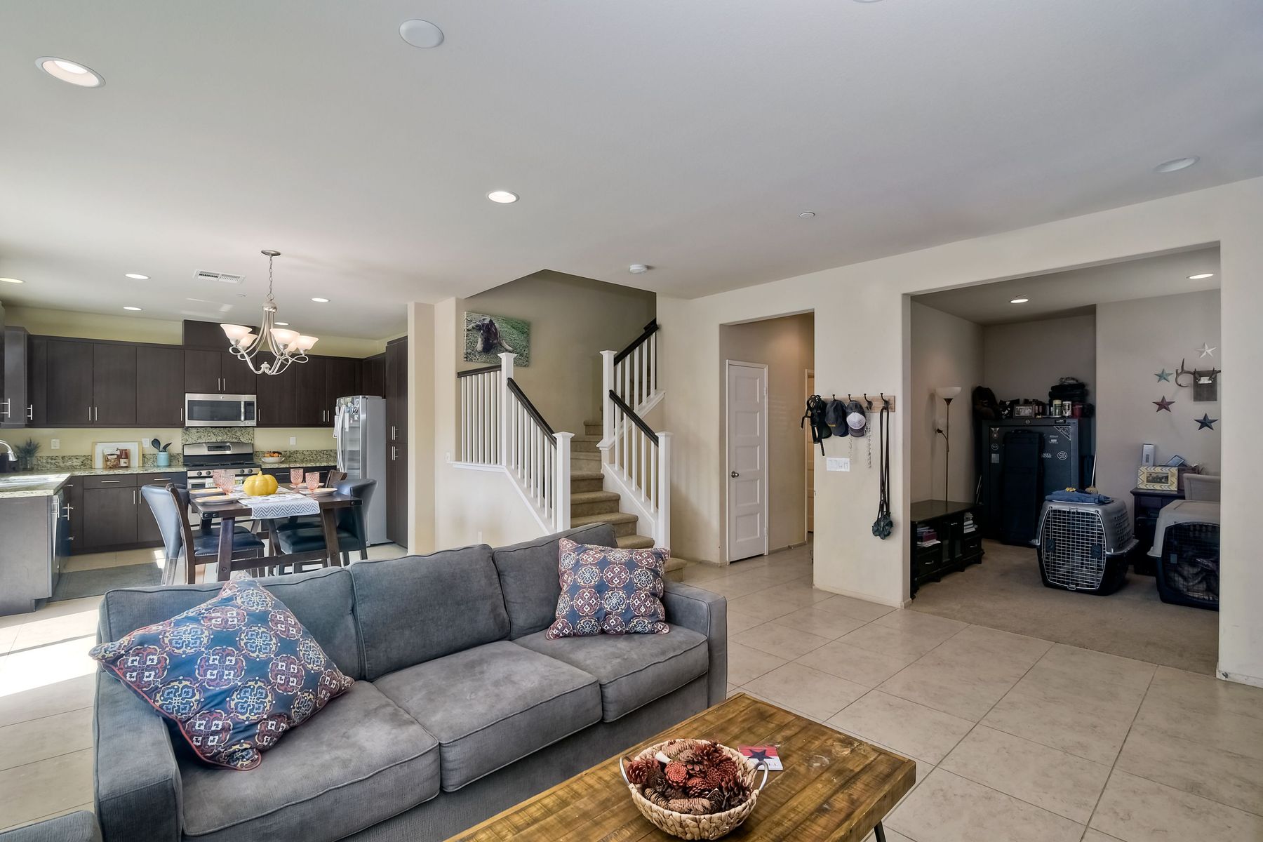 LOW, LOW TAXES, NO MELLO-ROOS! Highly desirable BelVista Plan 3. Premium location, no back yard neighbor. Large back patio with grassy area, perfect or SoCal outdoor living. Adjoining walls are constructed w/ 4" air gap separation with a double layer of drywall on each living space side. This provides nearly sound-proof living. Granite kitchen counters w/ contemporary dark cabinets. Upgrades include open stair rail system, 20x20 porcelain tile in kitchen, dining room and living room. Ceiling fans in all bedrooms, prewired in loft. Builder pre-paid 20-year solar lease providing huge energy savings with no solar payments. You'll only pay low, low usage cost. Tankless water heater, radiant barrier roof sheathing, and Low-E dual glazed windows add to the utility savings. Direct access 2-car garage. Resort-style living with pool, spa, parks, barbecue grills, covered picnic areas, and tot lot. Temecula schools are top notch and the elementary school was recently renovated with state of the art features. You'll enjoy the close proximity to restaurants, Temecula's majestic wineries, golf courses, and the Promenade mall. This is the largest model in Bel Vista boasting 1,739 square feet, 3 bedrooms, 2 1/2 baths, PLUS den downstairs and loft upstairs. The den can easily be converted to a bedroom and powder room to full bath as it is pre-plumbed to add a shower. Empty-nesters, young professionals, and families all love Bel Vista. Sure to sell quickly, so don't miss out.