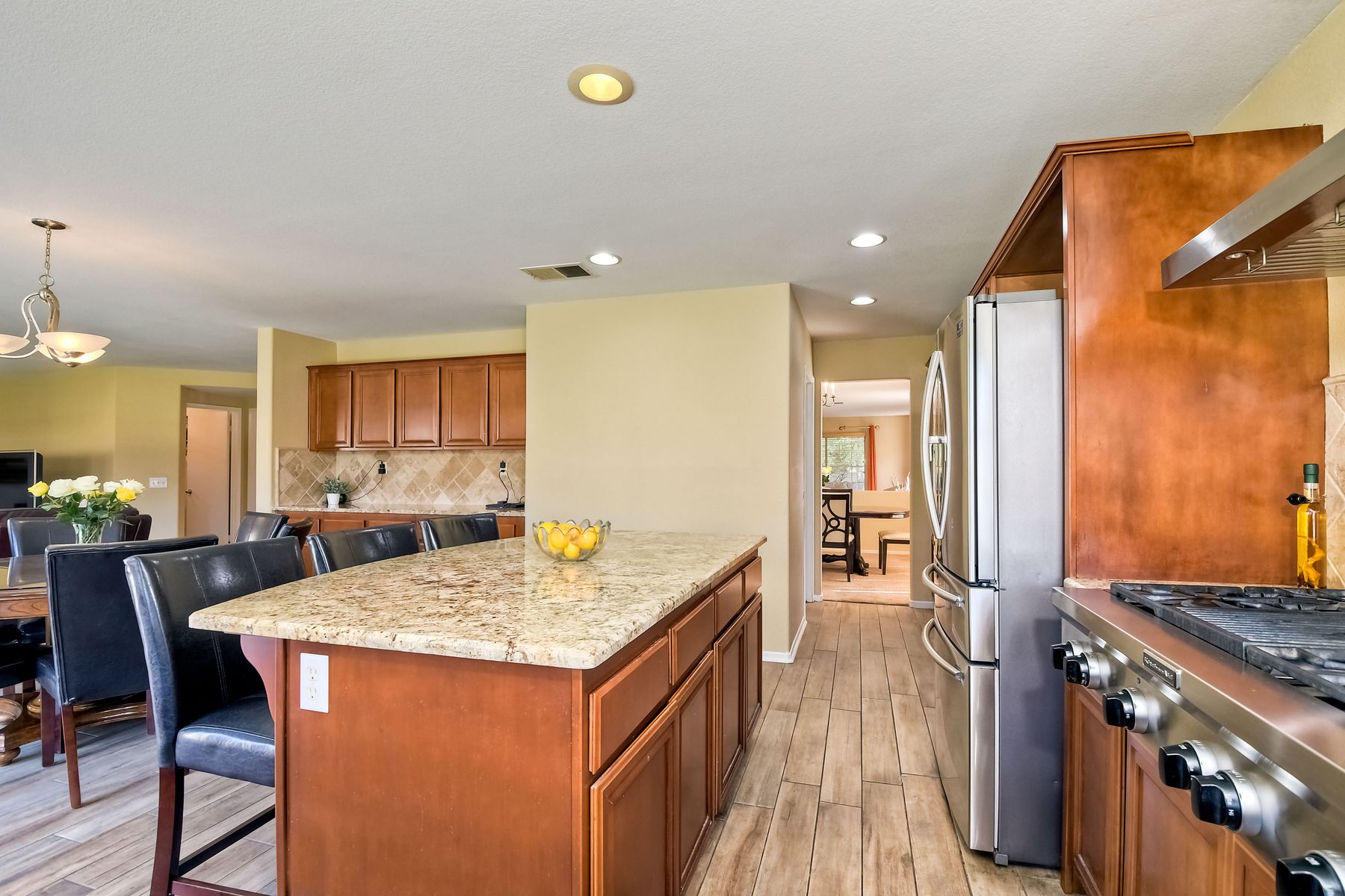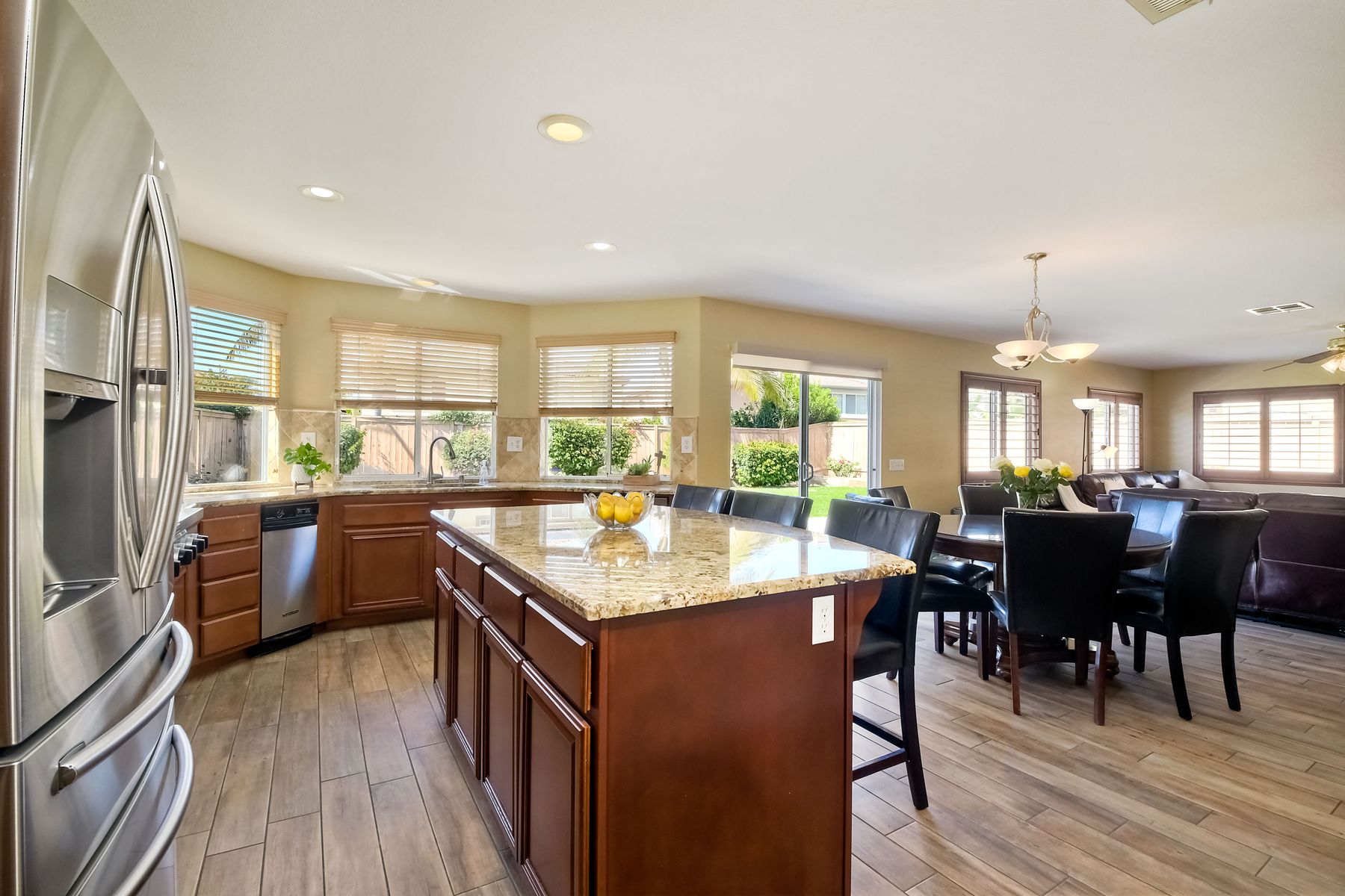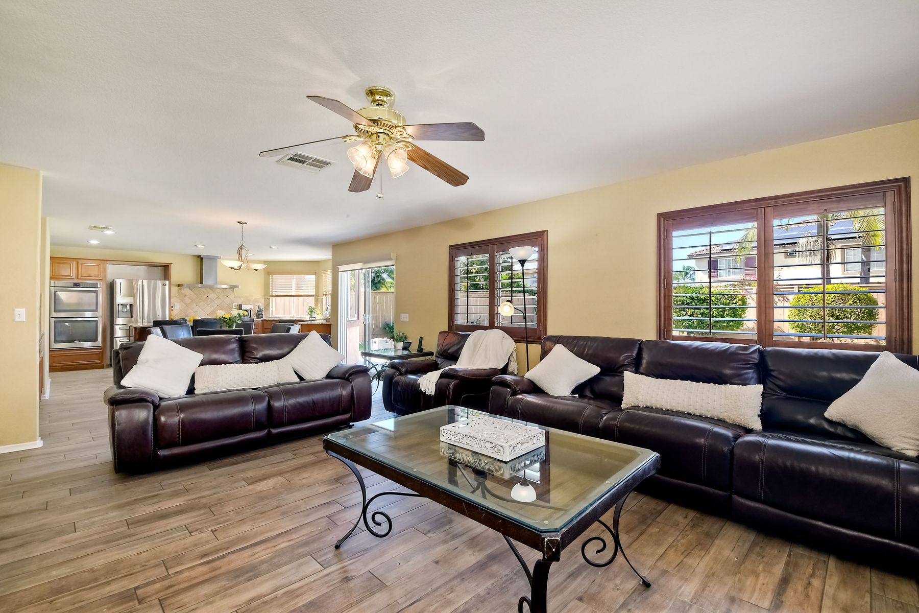 PRICE REDUCTION! This is the one! No neighbors across. Solar will be paid off at close of escrow! This is one of the largest floor plans by Fieldstone Del Sol in the highly desirable River Ranch and includes 4 bedrooms upstairs + 1 bonus bedroom downstairs, 4 full bathrooms, jr. suite upstairs, open floor plan, all within 3,516 sq.ft of living space, this home is perfect for a multi-generational living. As you enter the home, you'll be invited by a beautiful and impressive floor plan. The open concept kitchen is amazing, with a granite countertop & large island, modern lighting, and stainless-steel appliances. The kitchen-dining-family room combo is the perfect place to entertain your friends and family. As you make your way upstairs you will see the huge loft for a playroom or additional entertaining. The primary bedroom and bathroom are equally as impressive. This home also includes a junior suite with its very own bathroom upstairs. Oversized 3-car garage with optional storage space is also a big bonus. This home is in move-in condition and ready for its new owner. Schedule your showing today!