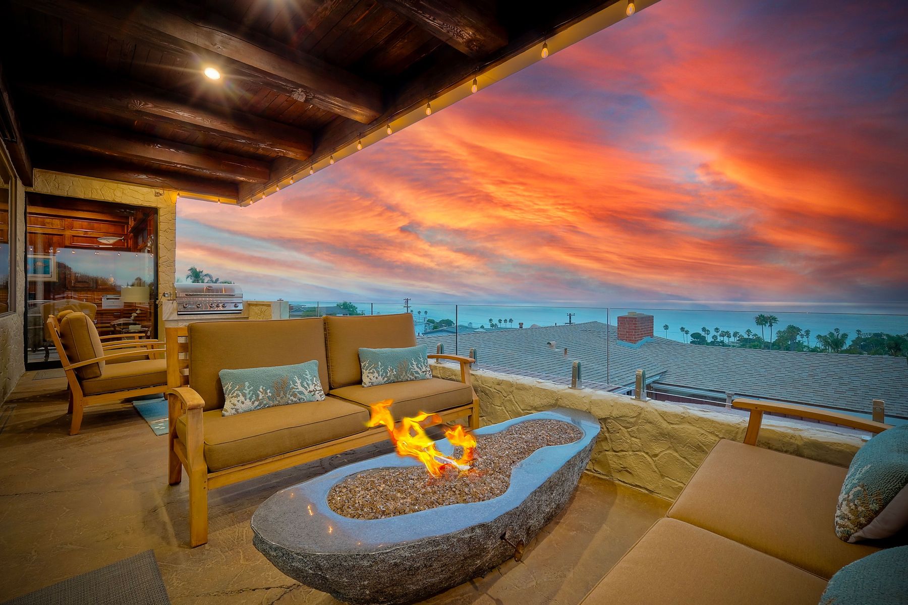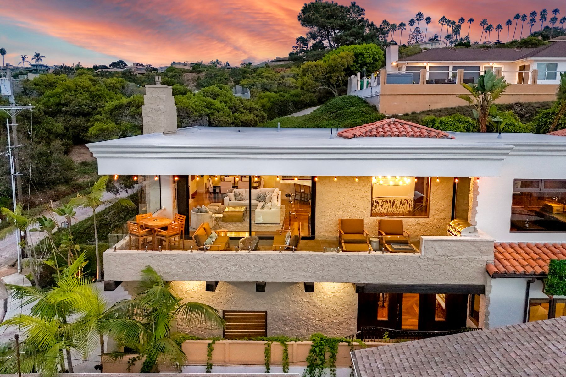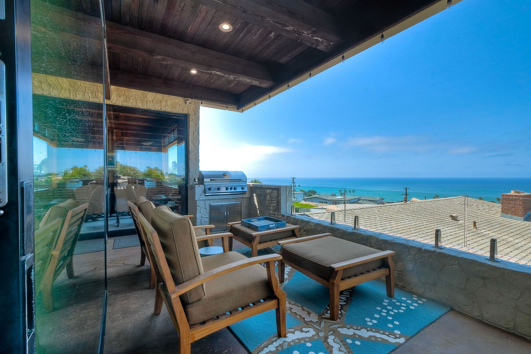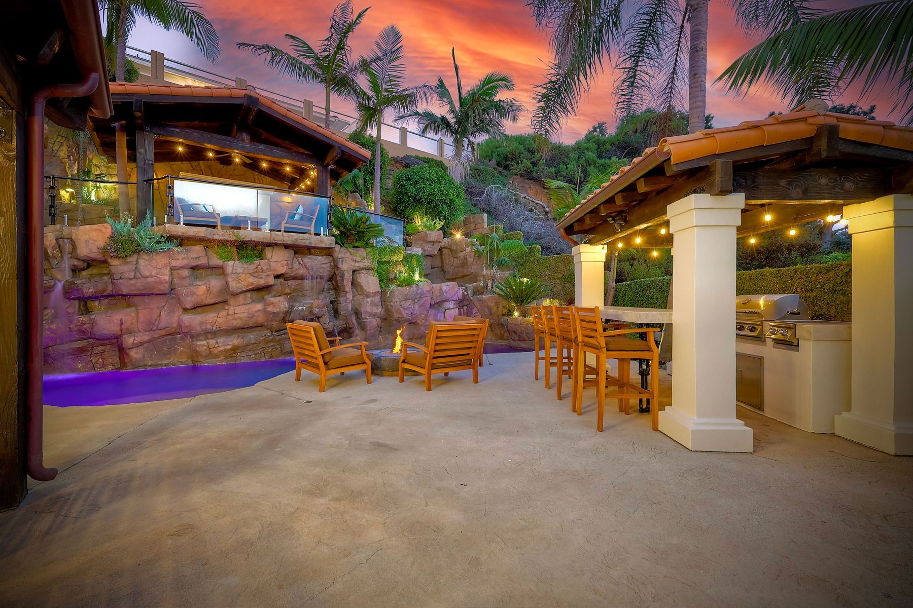 Welcome to Sunset Villa, a masterfully renovated estate on Sunset Cliffs that exudes timeless elegance and modern luxury. This exquisite property offers unobstructed panoramic ocean views from nearly every room, allowing you to indulge in breathtaking sunsets daily. The gourmet kitchen is a chef’s dream, featuring a Cristallo Quartzite custom hood, countertops, full backsplash, and an island illuminated by Auragami LED multicolor lights. The space is enhanced by custom reclaimed wood cabinets and top-of-the-line Wolf and Sub-Zero appliances. The sophisticated design continues with a modern stone fireplace, John Richard and RH light fixtures, new window coverings, new carpet in all bedrooms, and completely remodeled guest bathrooms. Embrace the California indoor-outdoor lifestyle with Fleetwood sliding glass wall systems that seamlessly connect the interior to the exterior, and enjoy enhanced views and privacy with a new glass railing on the balcony and patio. The outdoor kitchens are equipped with new Taj Mahal countertops, two BBQs, a side burner/griddle, and a beverage refrigerator, making it perfect for entertaining. Exhibit your wine collection in the 1,000 bottle climate controlled subterranean wine cellar reminiscent of a European chateau. Modern amenities include a new high-speed internet network, an upgraded alarm system with 360-degree video surveillance, a DoorBird video intercom system, and Sonos audio throughout.The estate boasts plaster lime wash stone, fresh interior paint, stucco, and a newly painted exterior. Enjoy ocean views from the pool spa waterfalls. All-new exterior lighting and landscaping. Nestled on an elevated cul-de-sac, Sunset Villa ensures complete privacy while offering proximity to San Diego Yacht Club, downtown, Petco Park, and just 10 minutes from the airport. Every detail of this estate has been meticulously curated to provide a perpetual vacation-like experience. A visit is essential to fully appreciate the unparalleled luxury and beauty this property has to offer.
