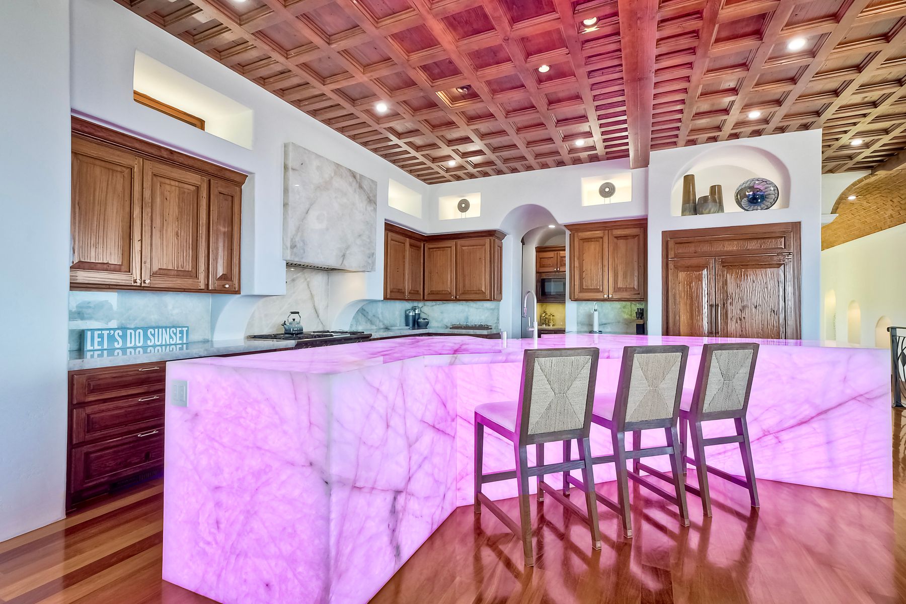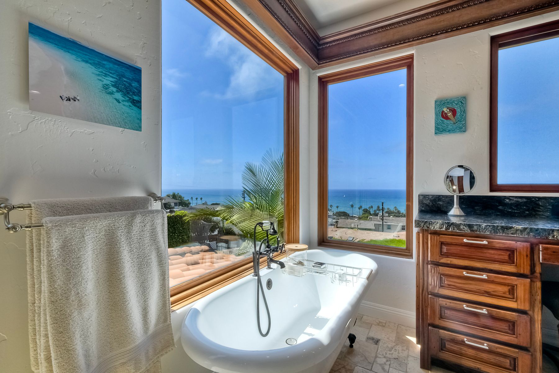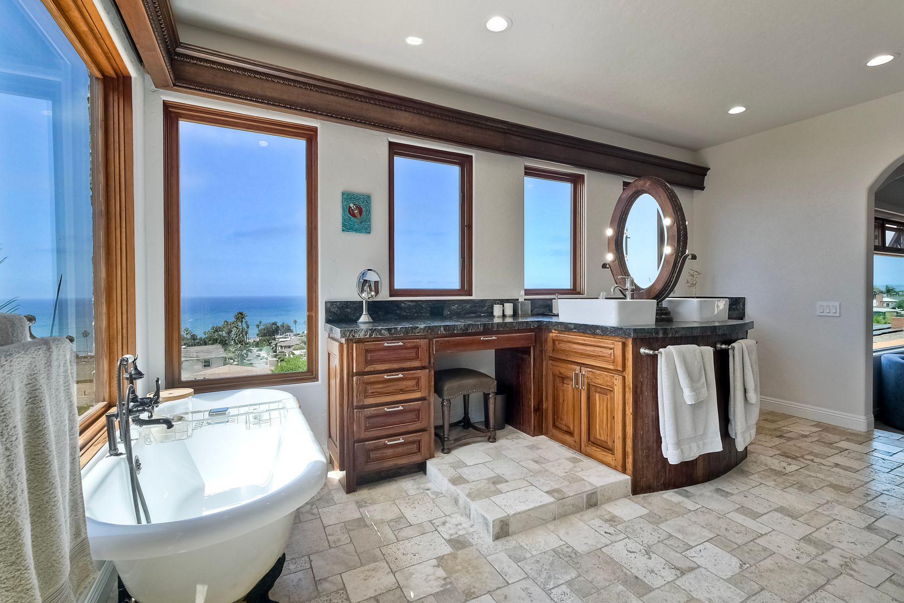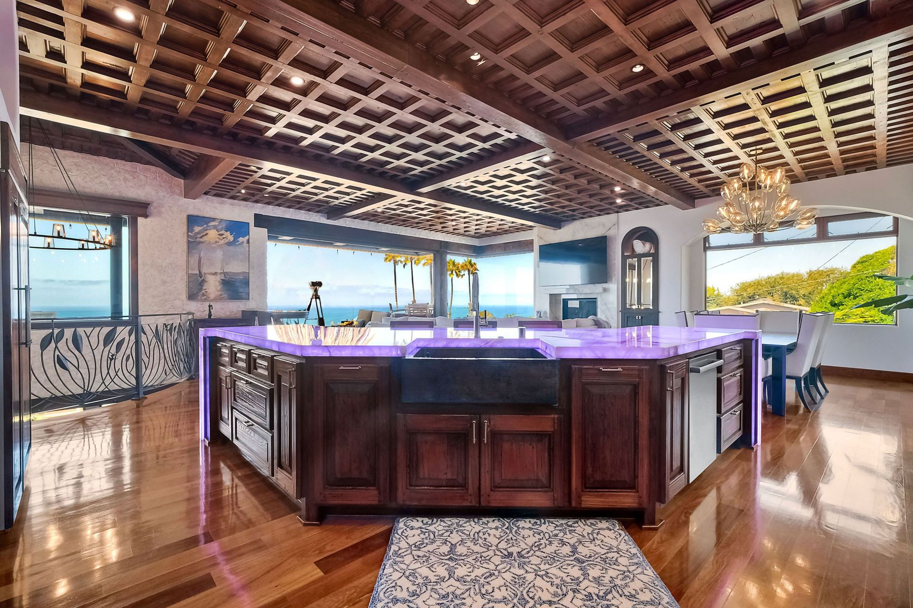 Welcome to Sunset Villa, a masterfully renovated estate on Sunset Cliffs that exudes timeless elegance and modern luxury. This exquisite property offers unobstructed panoramic ocean views from nearly every room, allowing you to indulge in breathtaking sunsets daily. The gourmet kitchen is a chef’s dream, featuring a Cristallo Quartzite custom hood, countertops, full backsplash, and an island illuminated by Auragami LED multicolor lights. The space is enhanced by custom reclaimed wood cabinets and top-of-the-line Wolf and Sub-Zero appliances. The sophisticated design continues with a modern stone fireplace, John Richard and RH light fixtures, new window coverings, new carpet in all bedrooms, and completely remodeled guest bathrooms. Embrace the California indoor-outdoor lifestyle with Fleetwood sliding glass wall systems that seamlessly connect the interior to the exterior, and enjoy enhanced views and privacy with a new glass railing on the balcony and patio. The outdoor kitchens are equipped with new Taj Mahal countertops, two BBQs, a side burner/griddle, and a beverage refrigerator, making it perfect for entertaining. Exhibit your wine collection in the 1,000 bottle climate controlled subterranean wine cellar reminiscent of a European chateau. Modern amenities include a new high-speed internet network, an upgraded alarm system with 360-degree video surveillance, a DoorBird video intercom system, and Sonos audio throughout.The estate boasts plaster lime wash stone, fresh interior paint, stucco, and a newly painted exterior. Enjoy ocean views from the pool spa waterfalls. All-new exterior lighting and landscaping. Nestled on an elevated cul-de-sac, Sunset Villa ensures complete privacy while offering proximity to San Diego Yacht Club, downtown, Petco Park, and just 10 minutes from the airport. Every detail of this estate has been meticulously curated to provide a perpetual vacation-like experience. A visit is essential to fully appreciate the unparalleled luxury and beauty this property has to offer.