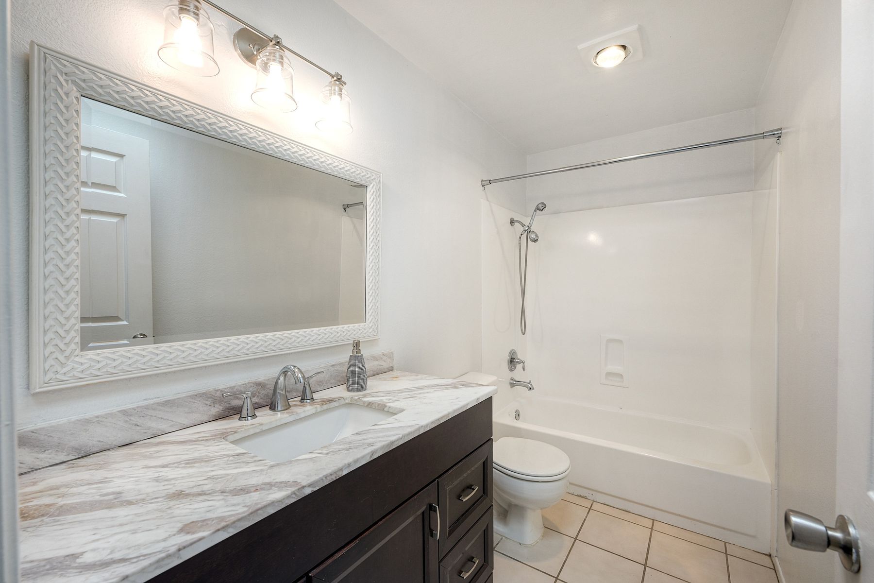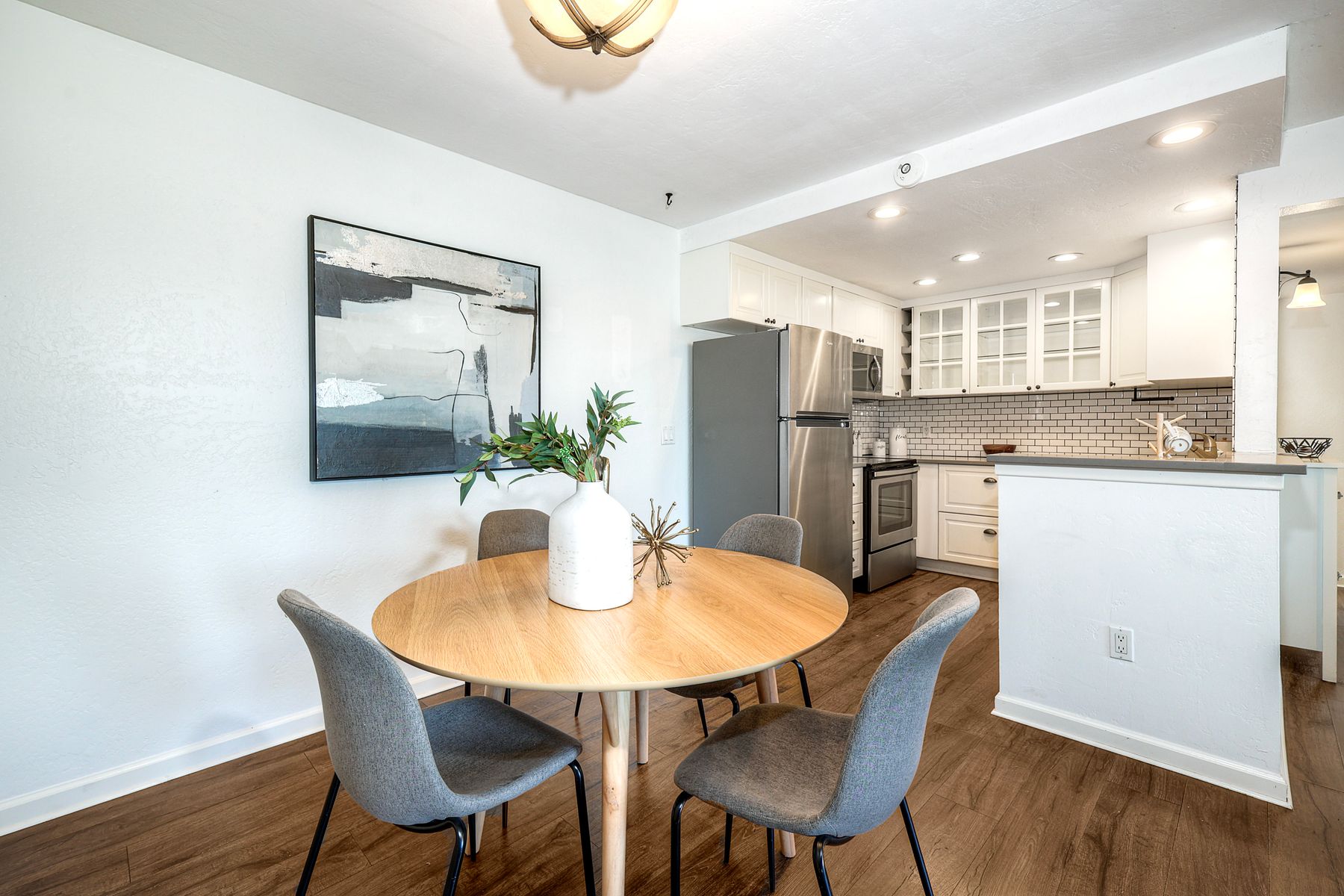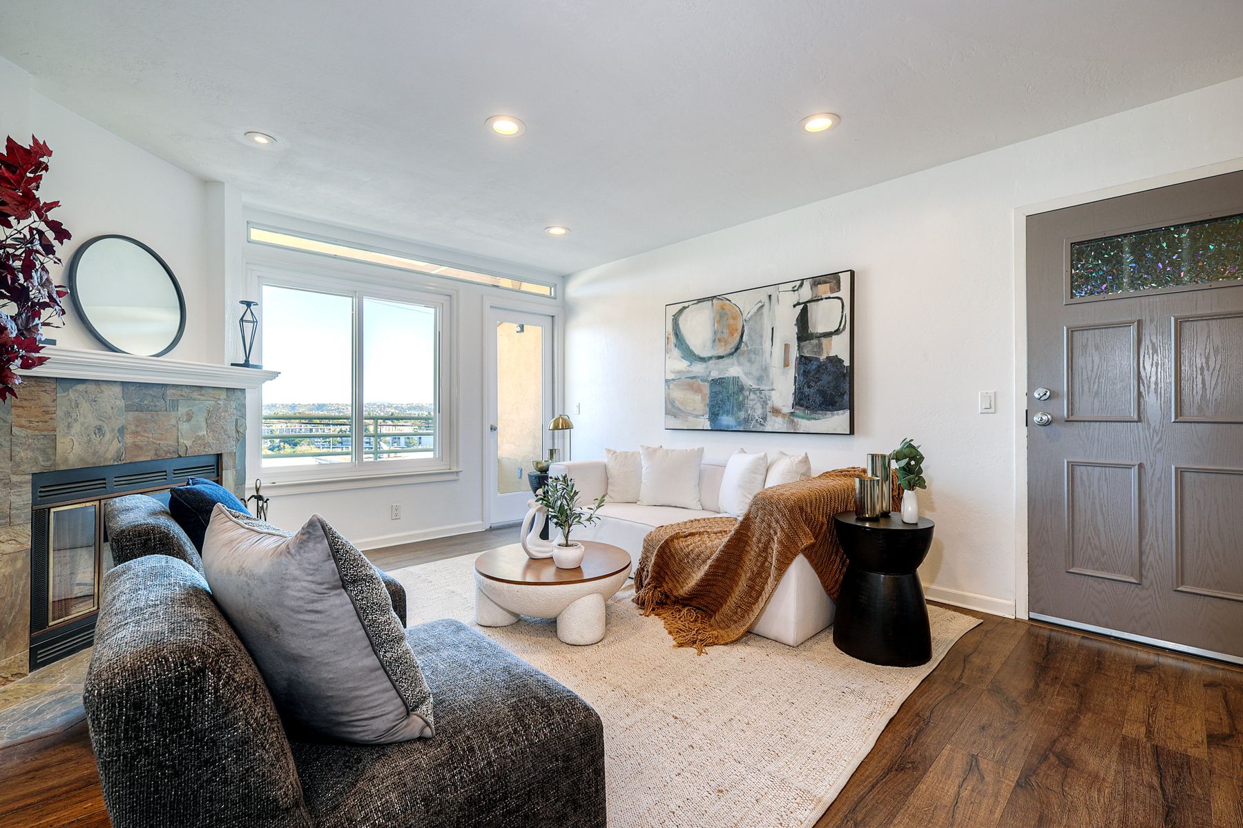 Welcome to this stunning top-floor, corner residence at Vantage Point, offering coastal comfort and an open, light-filled layout. This 2-bedroom, 2-bath condo features a spacious living and dining area with fireplace and scenic views of Mission Bay, the Pacific Ocean, and SeaWorld. The updated kitchen includes solid surface countertops, subway tile backsplash, stainless steel appliances, and ample cabinetry. The primary bedroom is a relaxing retreat with an en-suite bath and beautiful water views, while the secondary bedroom and bath are thoughtfully positioned for privacy. Additional highlights include in-unit washer and dryer, new triple-pane windows installed through the Quieter Home Program, and elevator access. The home includes gated underground tandem parking for up to two cars and a large private storage area. Vantage Point is a gated condo close to beaches, parks, shopping, dining, and freeway access. VA approved and move-in ready—this is one you won’t want to miss.