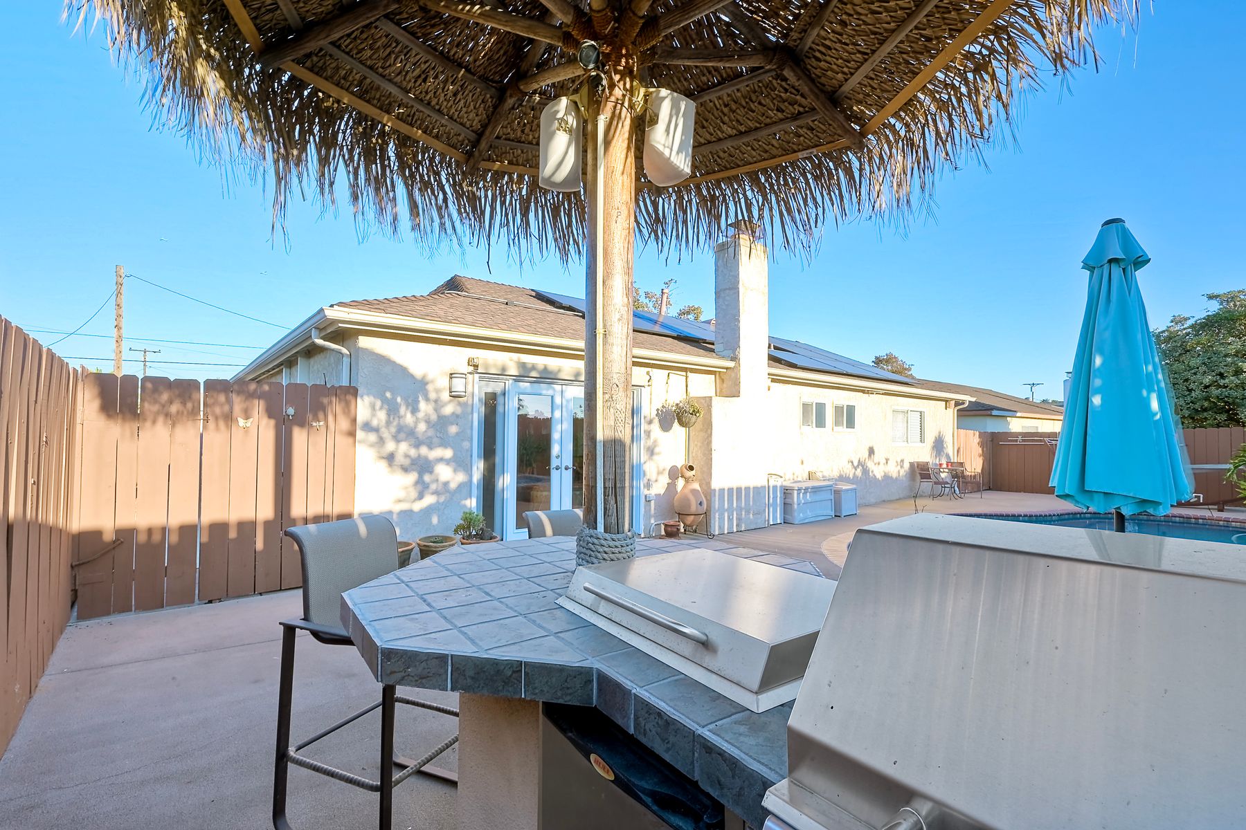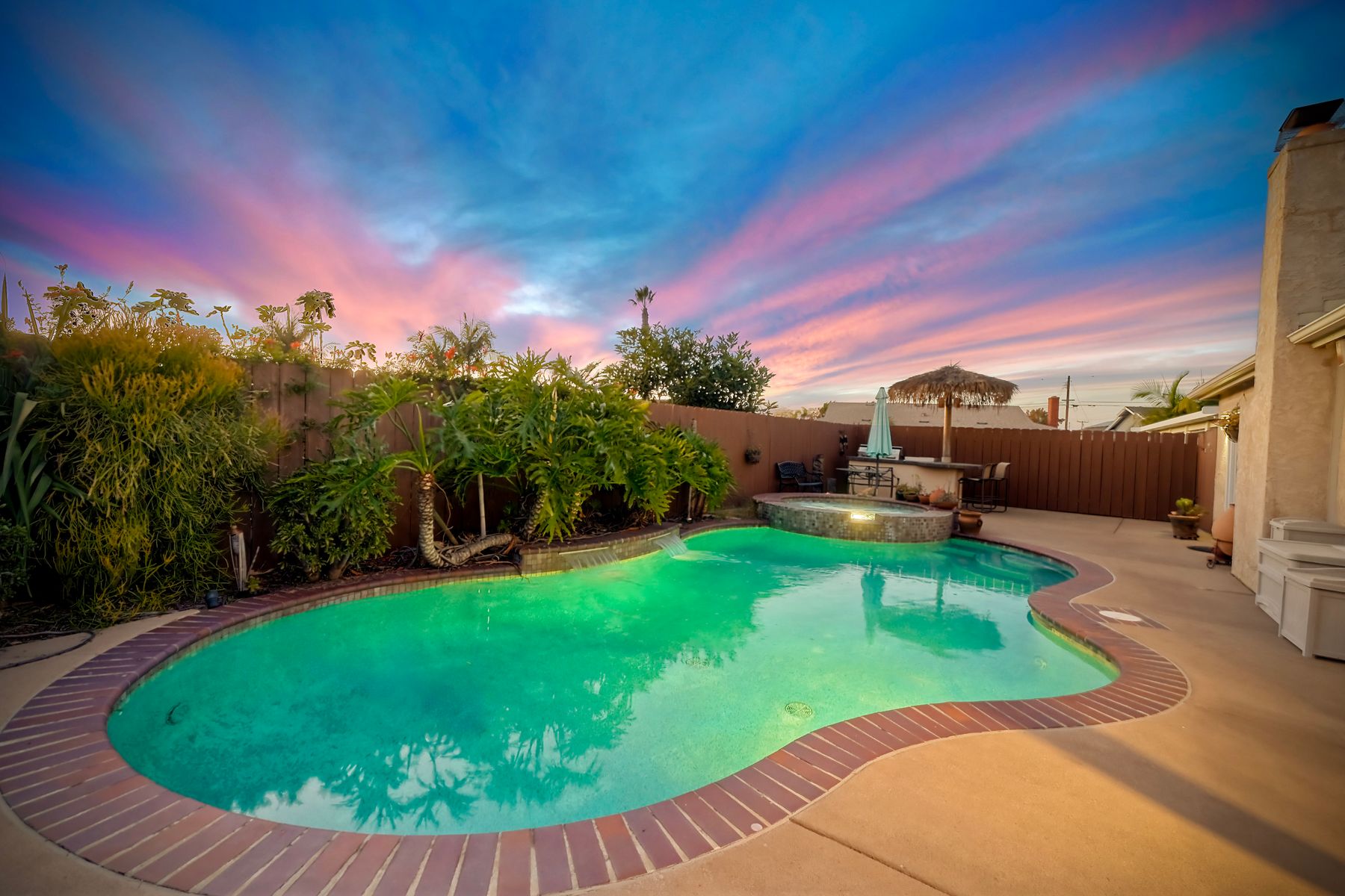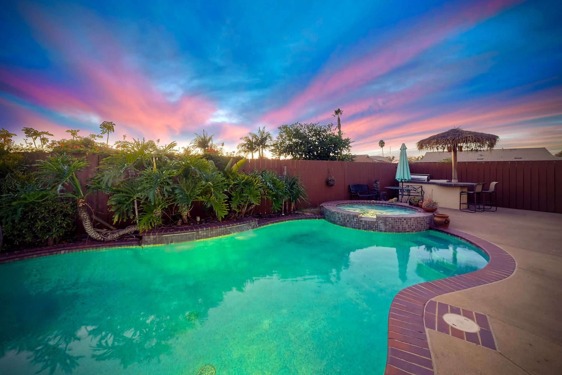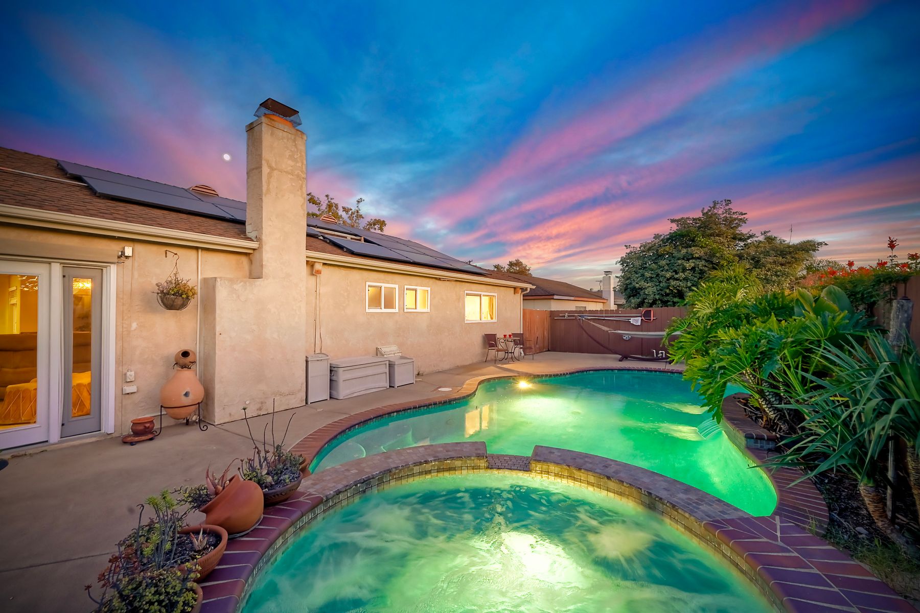 Incredible opportunity in the heart of Clairemont. From the moment you pull up you will see the pride of ownership and curb appeal. A large, fully fenced and gated front yard greets you. As you enter the front yard through the brick masonry and wrought iron gate you approach the front patio with café seating area and gardening bed. Once inside you will notice the extensive upgrades throughout. The kitchen has been remodeled with Alderwood cabinets, stainless steel appliances, and granite counter tops. The bathrooms have each been updated with an elegant feel. The three bedroom two bath home features include; tile shower surround, pebble floor, seamless glass shower, stainless hardware, 16 panel solar system, tankless water heater, soft water system, pool, spa (with new heater), swim jets and wireless operating system, built-in outdoor kitchen & refrigerator all covered by a thatched palapa. The location is ideal to enjoy the Clairemont lifestyle, just a stroll to area schools, parks, eateries, shopping & more. Or hop in the car and you are within minutes from Mission Bay, La Jolla Shores, San Diego's key business districts & local Universities. This is a must see property.