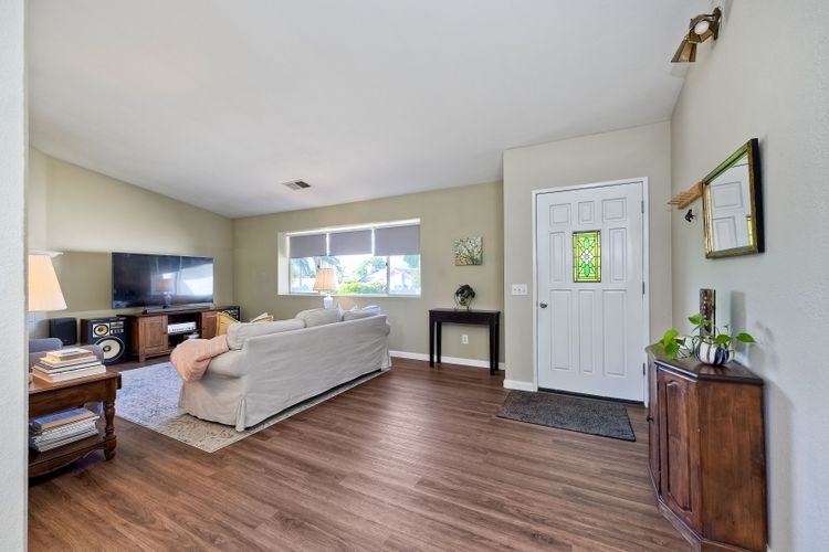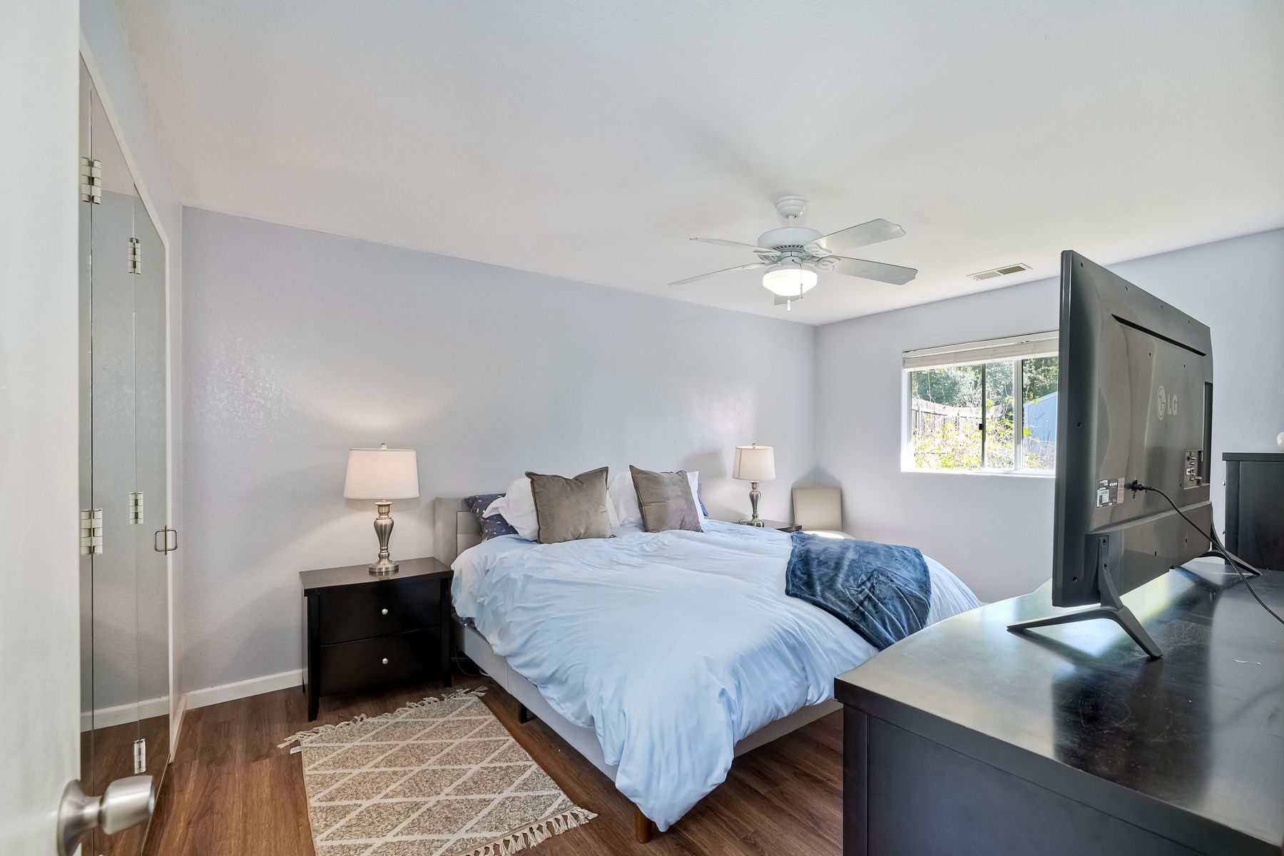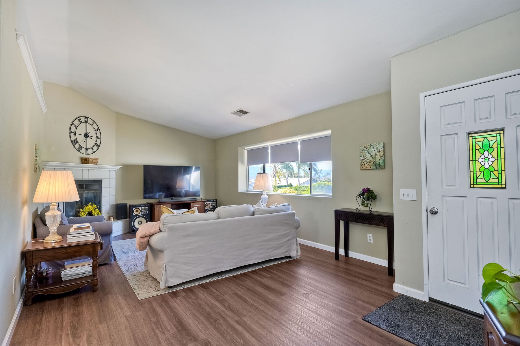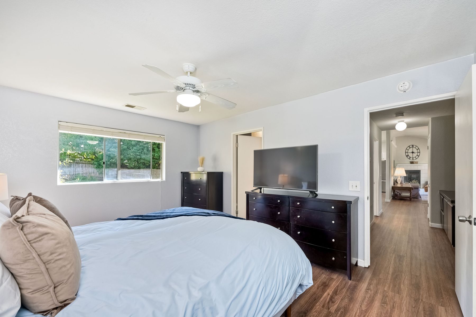 Experience the perfect blend of comfort and style in this beautifully appointed home, nestled on a generous 1/3-acre lot in the tranquil and exclusive neighborhood of Fallbrook. With its expansive backyard and ample parking space for up to 8 cars, including a designated area for an RV or boat, this property combines convenience with luxury. The large backyard is an entertainer's dream, featuring a gazebo (included) and grill for hosting delightful breakfasts or BBQs. A dedicated bathroom accessible from the backyard adds a touch of convenience to your outdoor gatherings. Located on a serene dead-end street, Cancun Ct offers a peaceful environment with no through traffic, ensuring privacy and exclusivity. The neighborhood is known for its friendly residents, enhancing the sense of community. In addition to the 2-car garage, the driveway offers extensive space for maneuvering and additional parking. The property also has a majestic pine tree providing natural shade, various other trees, and a 10'x12' shed added 18 months ago for extra storage. Inside, the home features 2 bathrooms, including a recently renovated master bathroom (1 year ago). The kitchen, also updated 18 months ago, featuring modern appliances, quartz countertops and a kitchen island. Enjoy warm winter nights by the fully operational chimney, offering both ambiance and warmth. The home’s layout includes closets in every room, with a walk-in closet in the master bedroom for added convenience. With a well-maintained infrastructure including central A/C, heating, and hot water, this home promises a hassle-free living experience. This delightful home on Cancun Ct is not just a residence but a lifestyle choice for those seeking a peaceful yet connected community living. With its combination of outdoor charm and indoor comfort, this property is a must-see for anyone looking for their perfect home.