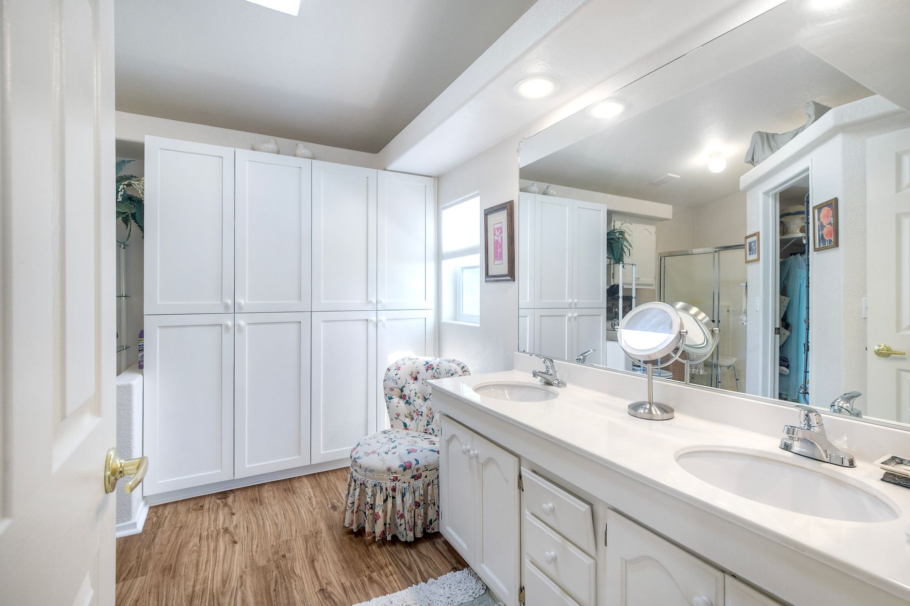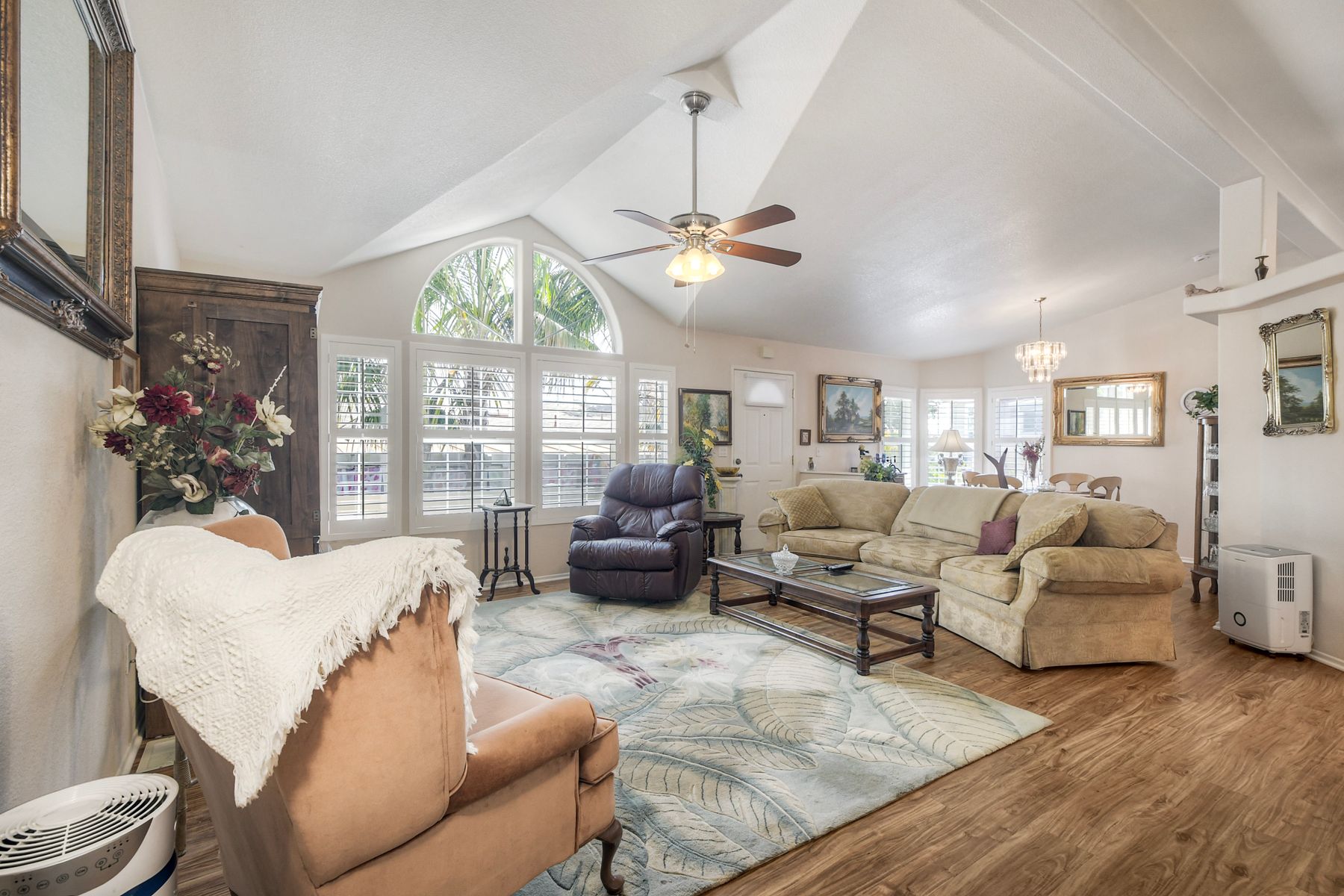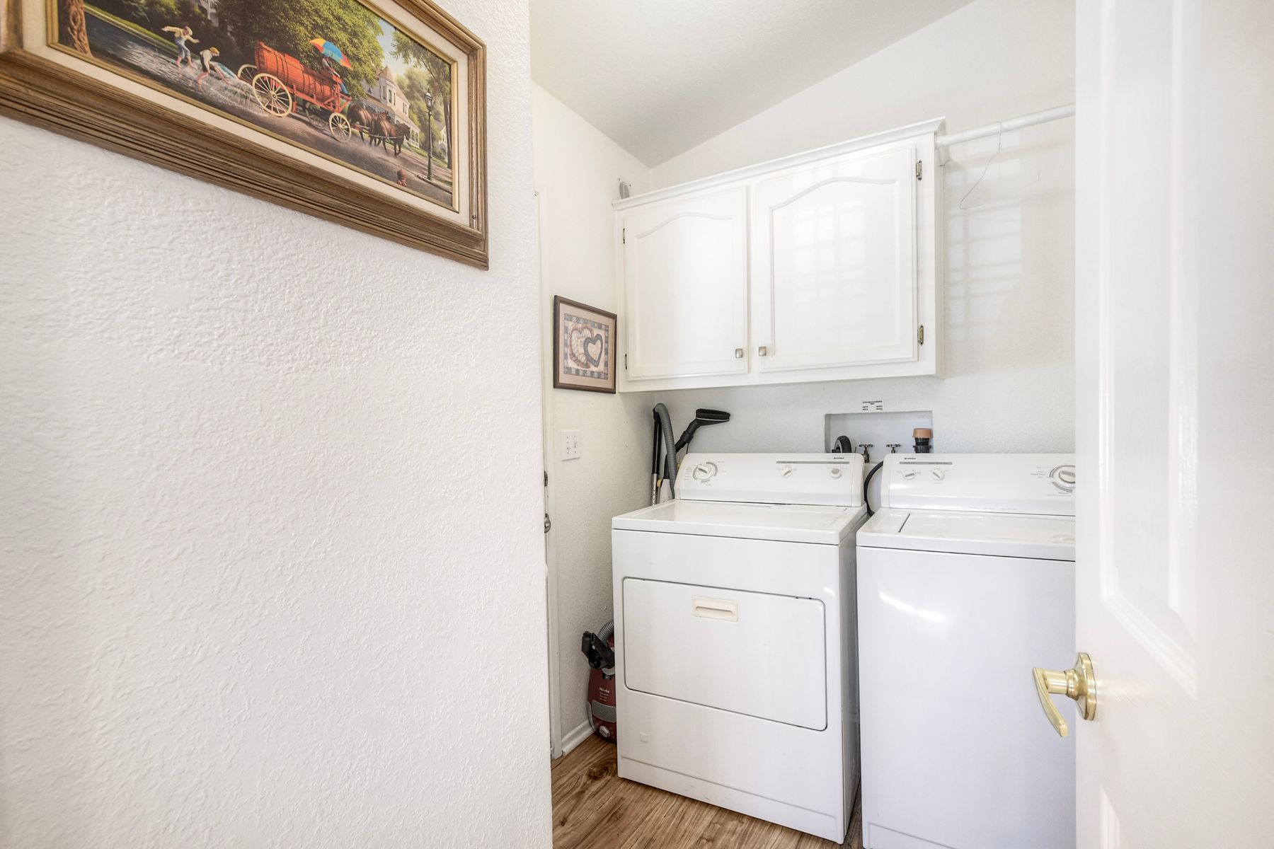 This beautifully upgraded 3-bedroom, 2-bath manufactured home offers 1,564 sq ft of spacious living in a highly desirable 55+ land-owned community—where you own the land (433A certified) and enjoy low-maintenance, resort-style living. Built in 2006 and extensively upgraded, this home features soaring high ceilings, an open-concept layout, and abundant natural light throughout. The inviting living room has a fireplace, creating the perfect space to relax or entertain. The chef-inspired kitchen showcases a quartz center island, ample cabinetry, and a NEW microwave (2025), seamlessly flowing into the dining and living areas. Recent improvements provide exceptional value and peace of mind, including a NEW roof (2025), new dual-pane windows, new water-resistant flooring, and a fully updated forced-air furnace. Additional upgrades include plantation shutters and a chair lift with remote control, offering both style and enhanced accessibility. The custom-built garage (2017) is a rare bonus, featuring an insulated garage door, automatic opener, built-in storage cabinets, and a 100-amp circuit breaker, ideal for additional power needs or workshop use. The exterior has been enhanced with a new concrete driveway and elegant porcelain tile sidewalks, boosting curb appeal and durability. Enjoy exceptional outdoor living with two covered patios plus two patio awnings in the backyard, perfect for entertaining or relaxing year-round. The low-maintenance turf landscaping, along with mature avocado and orange trees, creates a private and inviting outdoor retreat. Located in a vibrant, resident-owned 55+ community, residents enjoy resort-style amenities including a pool and spa, and a well-appointed clubhouse featuring a library, billiards room, kitchen, shuffleboard, and fitness center—ideal for an active and social lifestyle. Prime Encinitas location just minutes to beaches, shopping, dining, and easy freeway access. Turnkey, highly upgraded, and move-in ready—this is coastal 55+ living at its finest!