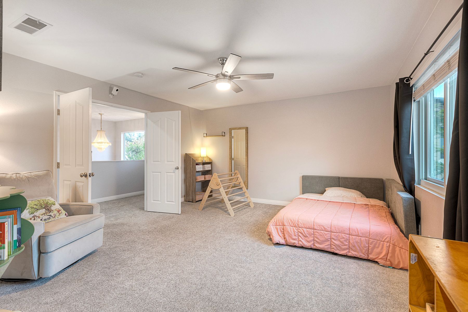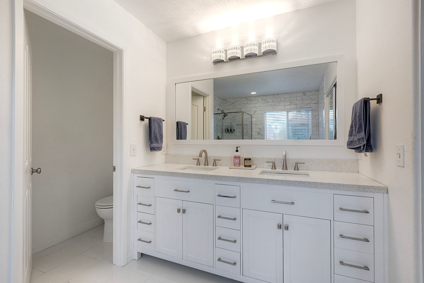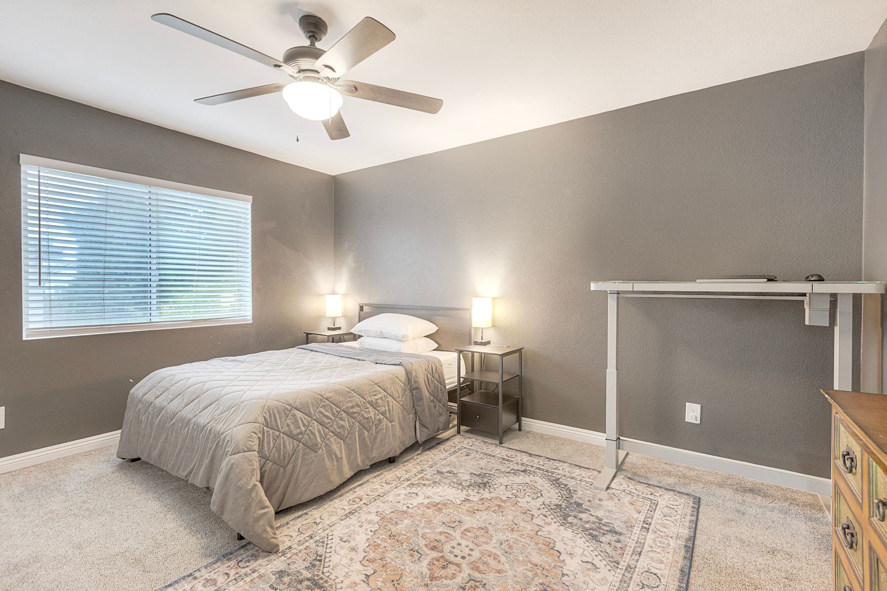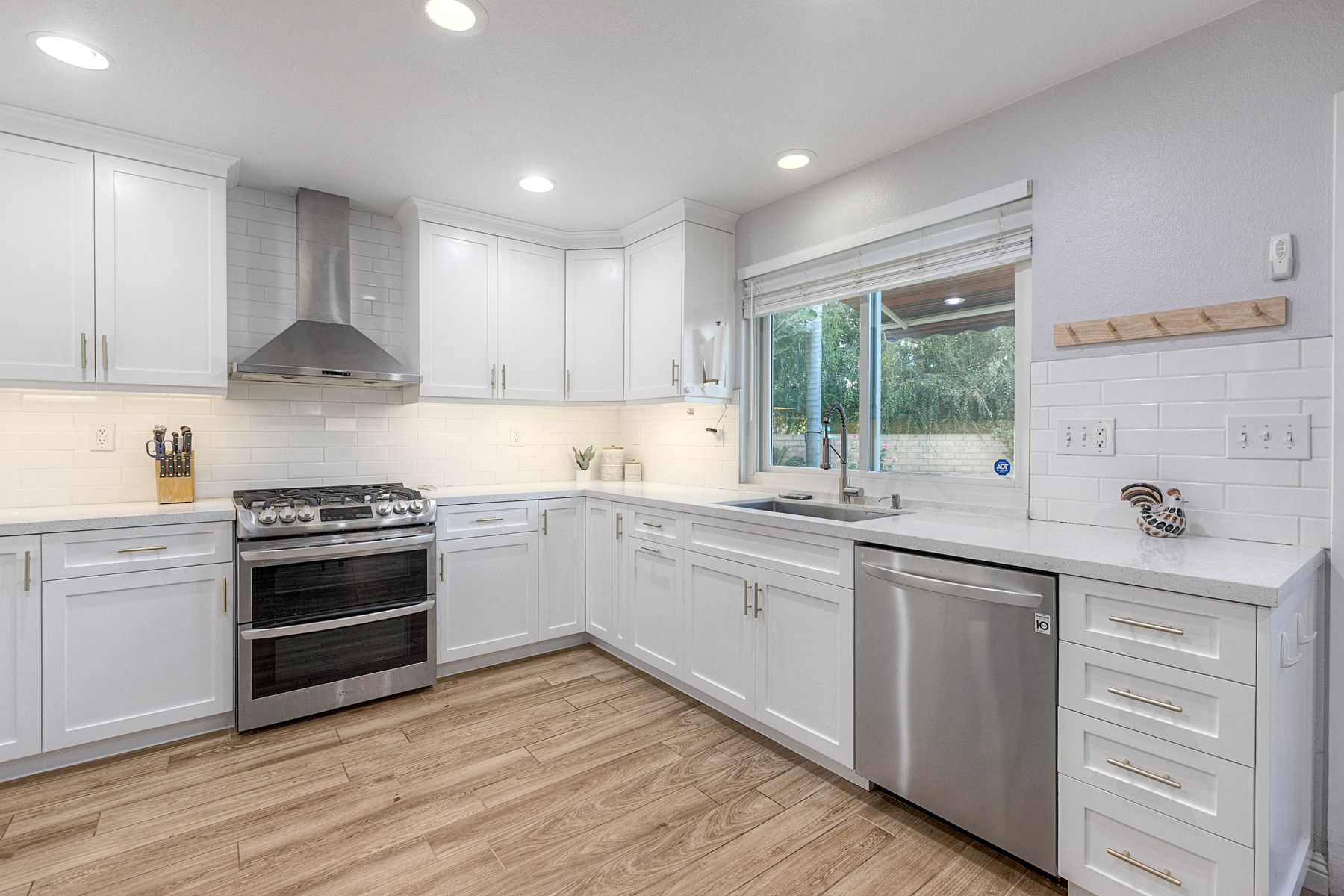 Discover elevated living in this impeccably upgraded 5BR/3BA residence offering 2,650 sq. ft. on one of the largest and most private lots in Williams Grove—an expansive 8,900 sq. ft. The thoughtfully designed floor plan includes a full bedroom and bath on the main level, ideal for guests or flexible living. The interior features new luxury vinyl plank flooring and elegant travertine, complemented by a fully remodeled chef’s kitchen with contemporary cabinetry, stone countertops, and high-end appliances. All three bathrooms have been tastefully renovated with quality finishes, creating a cohesive, modern aesthetic. Spacious bedrooms with walk-in closets provide comfort and functionality throughout. Premium upgrades include owned solar with Tesla Powerwall backup, Renewal by Andersen energy-efficient windows with transferable warranty, upgraded outdoor lighting, a whisper-quiet garage door opener, and a three-bay garage with EV charging outlet. The private backyard retreat is beautifully landscaped and exceptionally usable, offering rare privacy within the community. Mature greenery, rose bushes, and fruit trees including orange, peach, and loquat create a serene setting with ample space for entertaining, relaxing, or future enhancements. A truly turnkey opportunity to own one of Williams Grove’s premier properties, combining privacy, modern efficiency, and refined living.