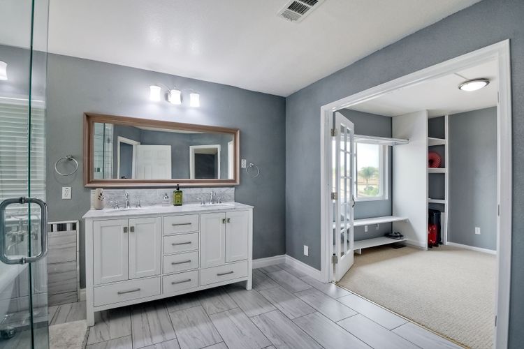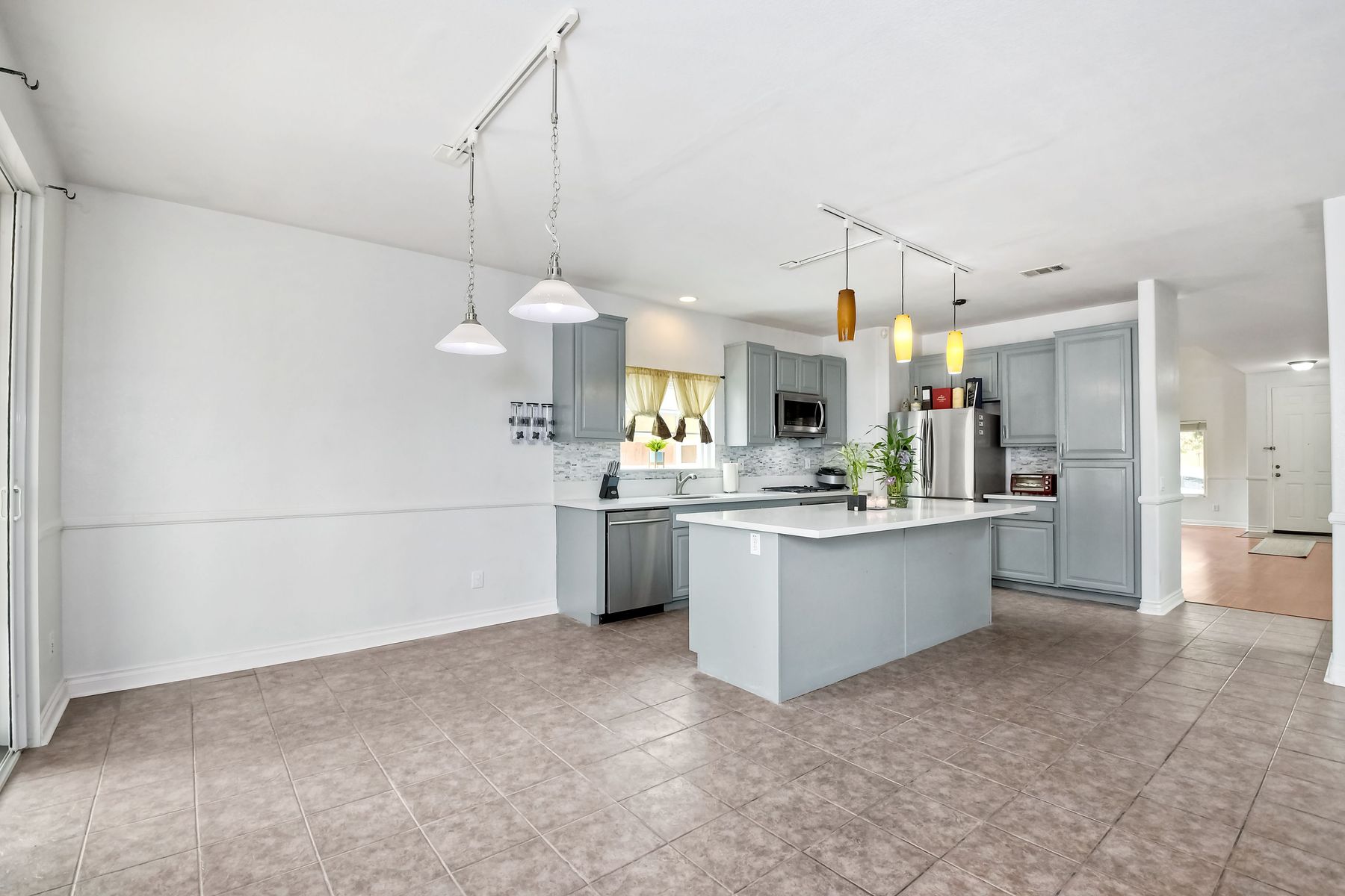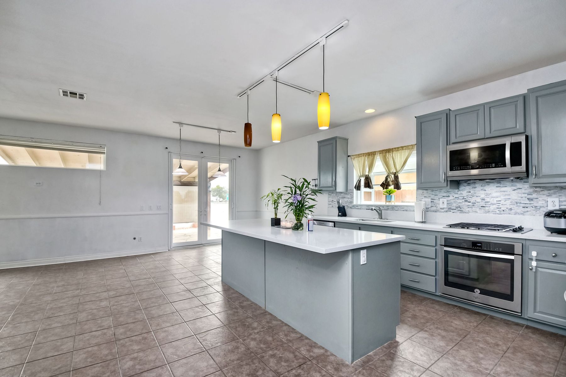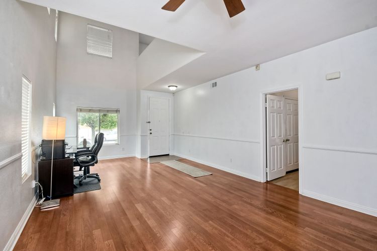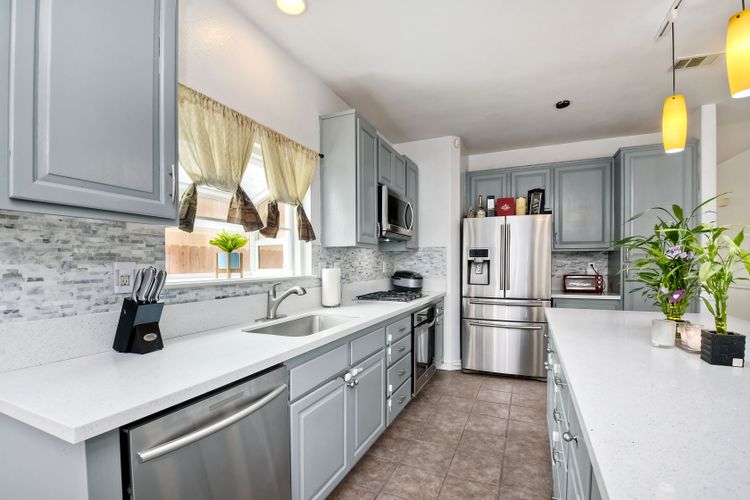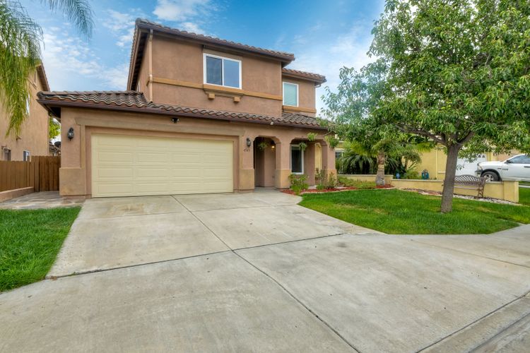 Beautiful 5 bedroom, 3 bath home for you and your family to move in. Vaulted ceiling, upstairs Loft. Upgraded open concept Kitchen into the family room. Stainless steel appliances. This house is a must see. Upgraded Master Bedroom with large bath and walk-in closet. Two Bedrooms located downstairs. New double pane vinyl windows, tile/wood flooring throughout, bay window in kitchen and new kitchen cabinets. Walkway and backyard are California stone with French Doors leading to Patio. SOLAR!