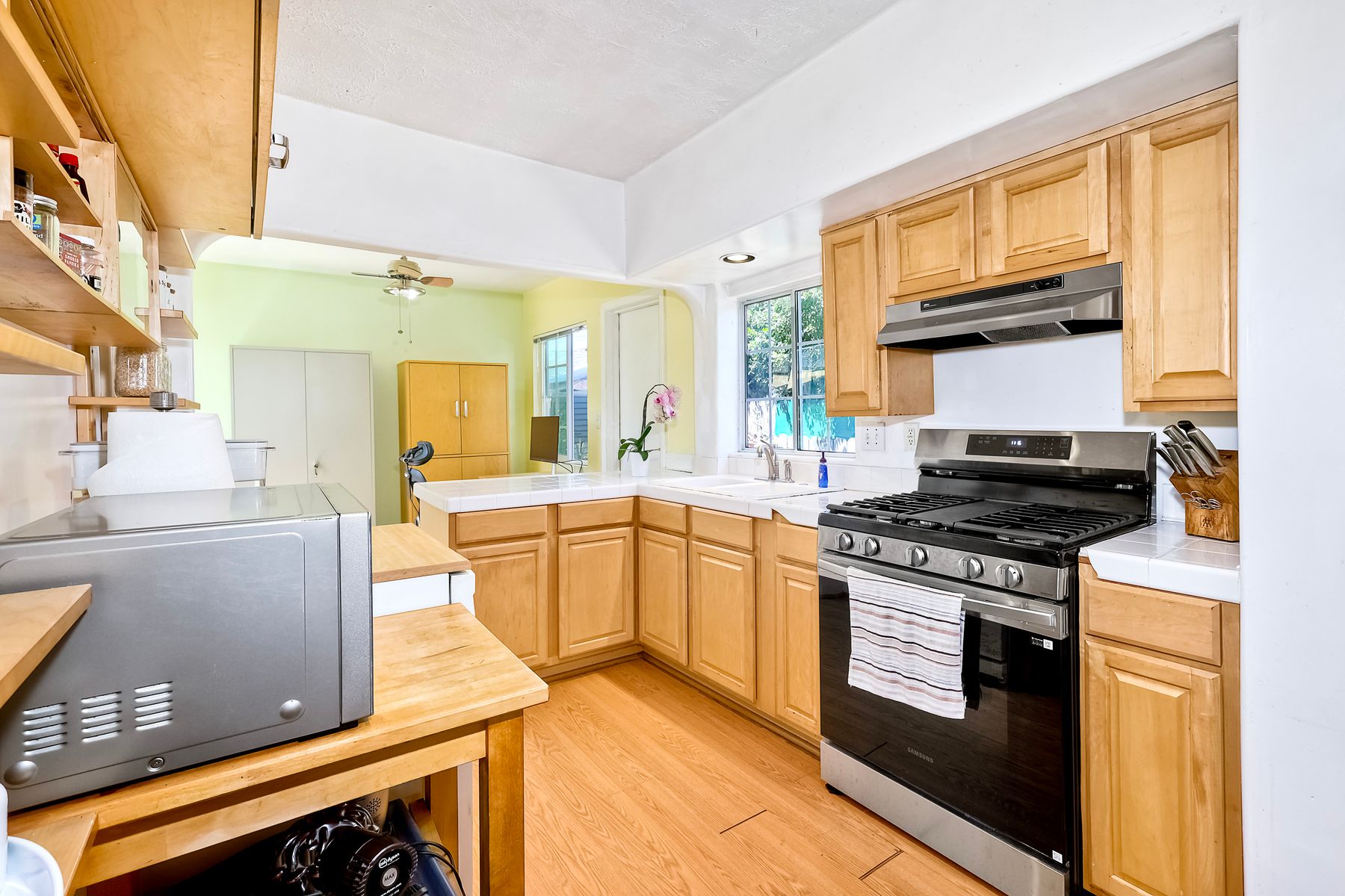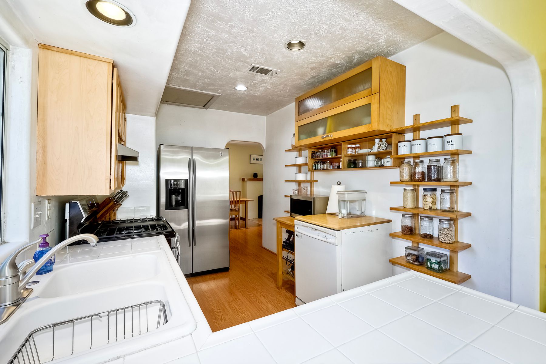 Adorable early-century Craftsman Cottage in a quaint and desirable area of the Normal Heights community! Two bedrooms and two full baths. Garage was converted to additional space off the kitchen (for office or dining area or could extend kitchen?). Brand new gas stove, refrigerator included. Newer "floating" vinyl flooring (not attached to subfloor, makes for easy change if desired). Newer roof and owned solar. Beautiful trees in front and avocado tree in back with lots of space for gardening. Good size shed in back with full size dryer and a brand new washer included. Covered porch in front and covered patio in back for relaxing. Zoned R3 for additional development potential! Close to some of the best urban restaurants and shopping in San Diego! Easy commute to anywhere in San Diego or Mission Valley. You'll love living here - don't miss this one!