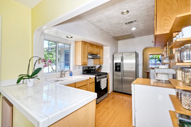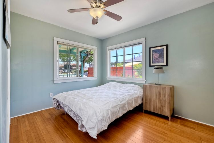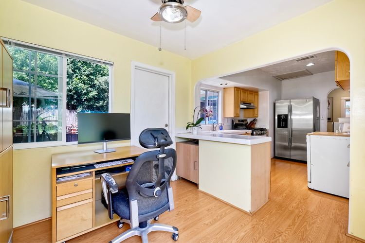 Adorable early-century Craftsman Cottage in a quaint and desirable area of the Normal Heights community! Two bedrooms and two full baths. Garage was converted to additional space off the kitchen (for office or dining area or could extend kitchen?). Brand new gas stove, refrigerator included. Newer "floating" vinyl flooring (not attached to subfloor, makes for easy change if desired). Newer roof and owned solar. Beautiful trees in front and avocado tree in back with lots of space for gardening. Good size shed in back with full size dryer and a brand new washer included. Covered porch in front and covered patio in back for relaxing. Zoned R3 for additional development potential! Close to some of the best urban restaurants and shopping in San Diego! Easy commute to anywhere in San Diego or Mission Valley. You'll love living here - don't miss this one!