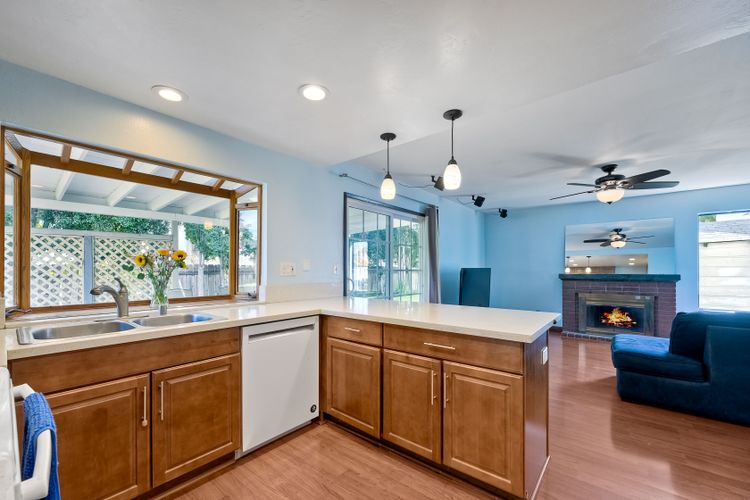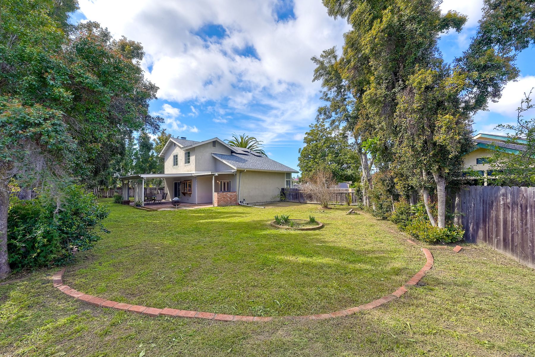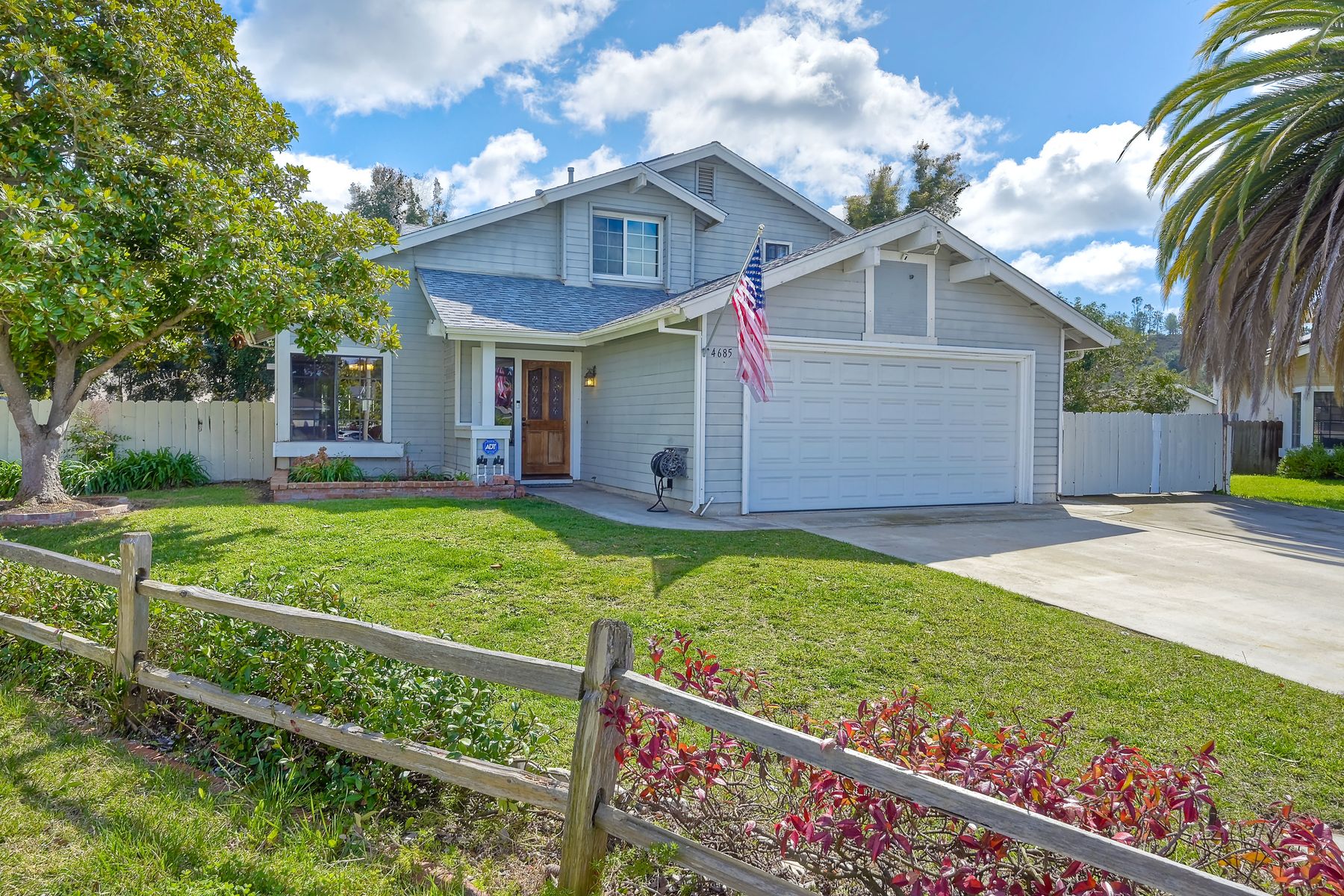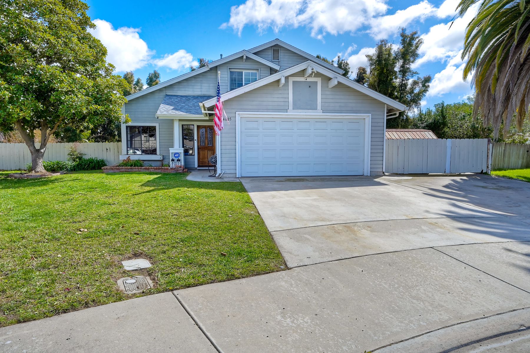 Lovely home on spacious lot in Sunset Hills - south of the 78, less than 15 minutes to the coast and in a charming neighborhood with NO HOA's! This 4 BR, 3 full bath home (one full BR and one full bath on entry level) lives so much larger than the 1,739 sf reflects. Perhaps it is the high ceilings and all of the natural light that pours through an abundance of windows. Perhaps it is the fact that it is nestled onto a .25 acre lot tucked into a cul-de-sac on a quiet street with a monstrous backyard!! Room for a pool for sure and quite possibly a charming little ADU. Spacious 2-car garage PLUS 2-car driveway. Sellers have: recently painted 85% of the interior, installed a new roof in 2021, installed new heat/AC and ducting in 2008/2009 AND have fully paid for 16-panel Palomar Solar panels. Quartz counters and updated wood cabinets in kitchen. Quartz counters and maple cabinets in one of the upper-level bathrooms. Laminate flooring throughout most of home with tiled bathrooms. Side yard has plenty of room to store a boat or an RV. This lovely home has so many of the right things but leaves some room for the next owner to customize as desired. This is a home you won't want to miss!