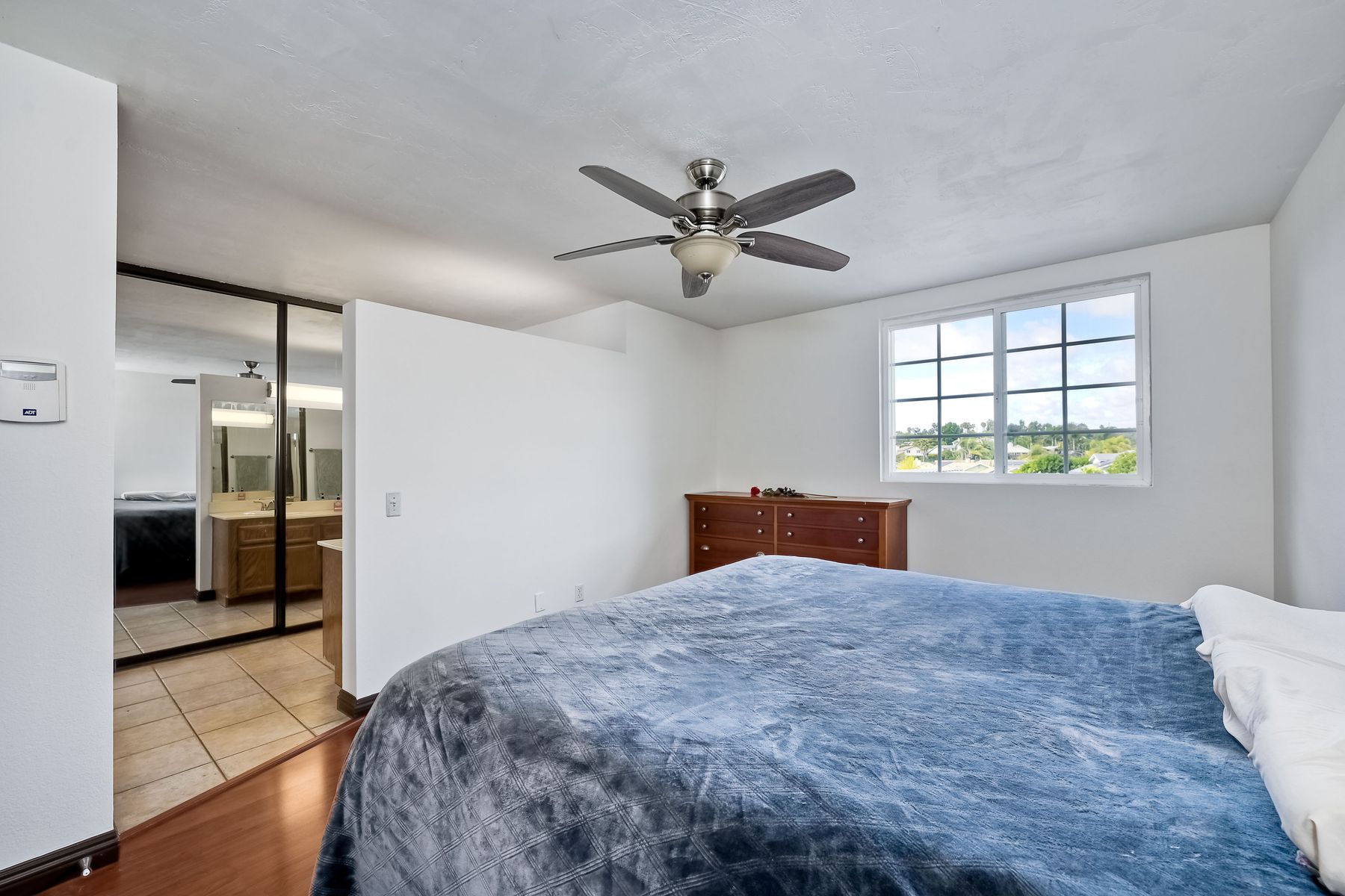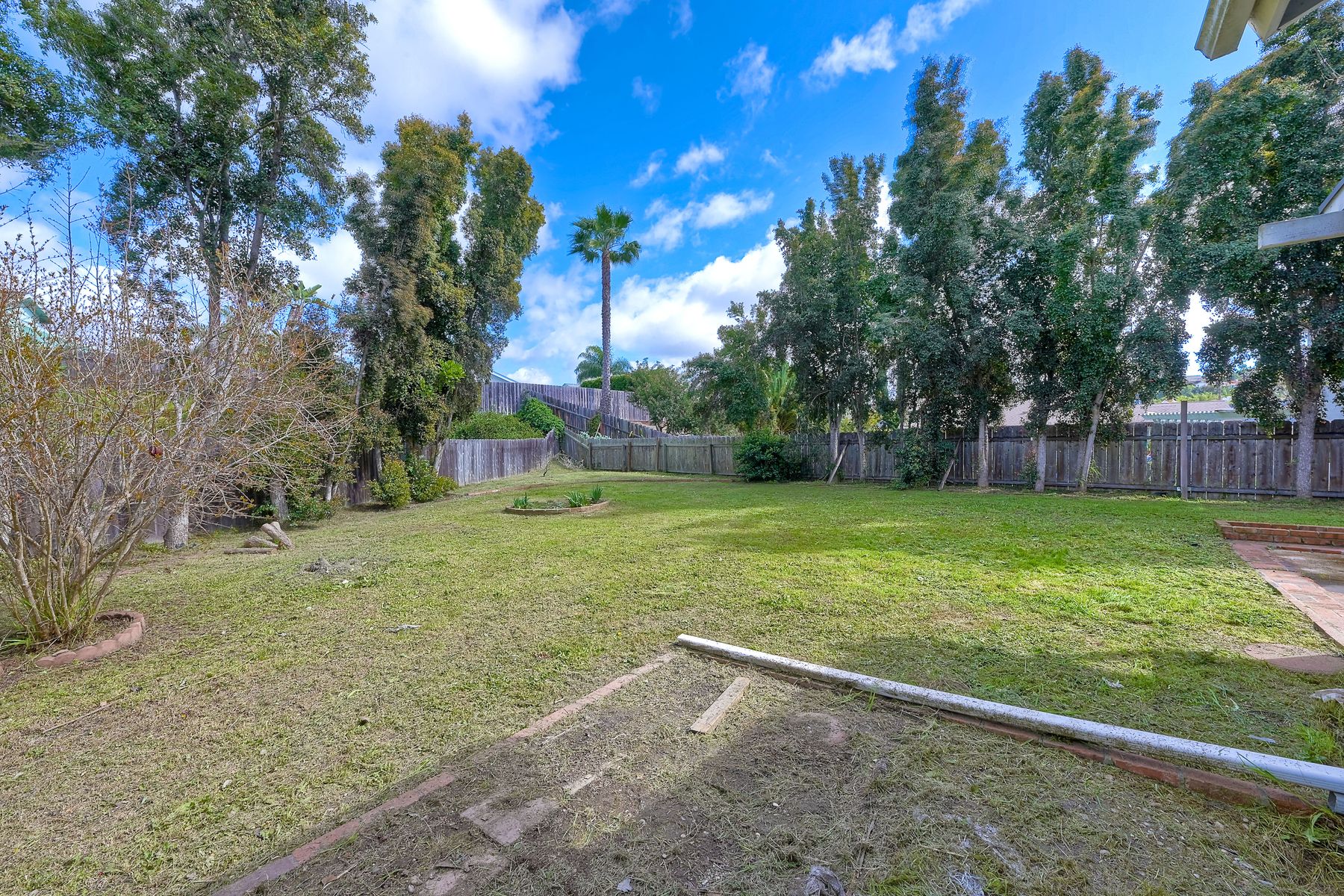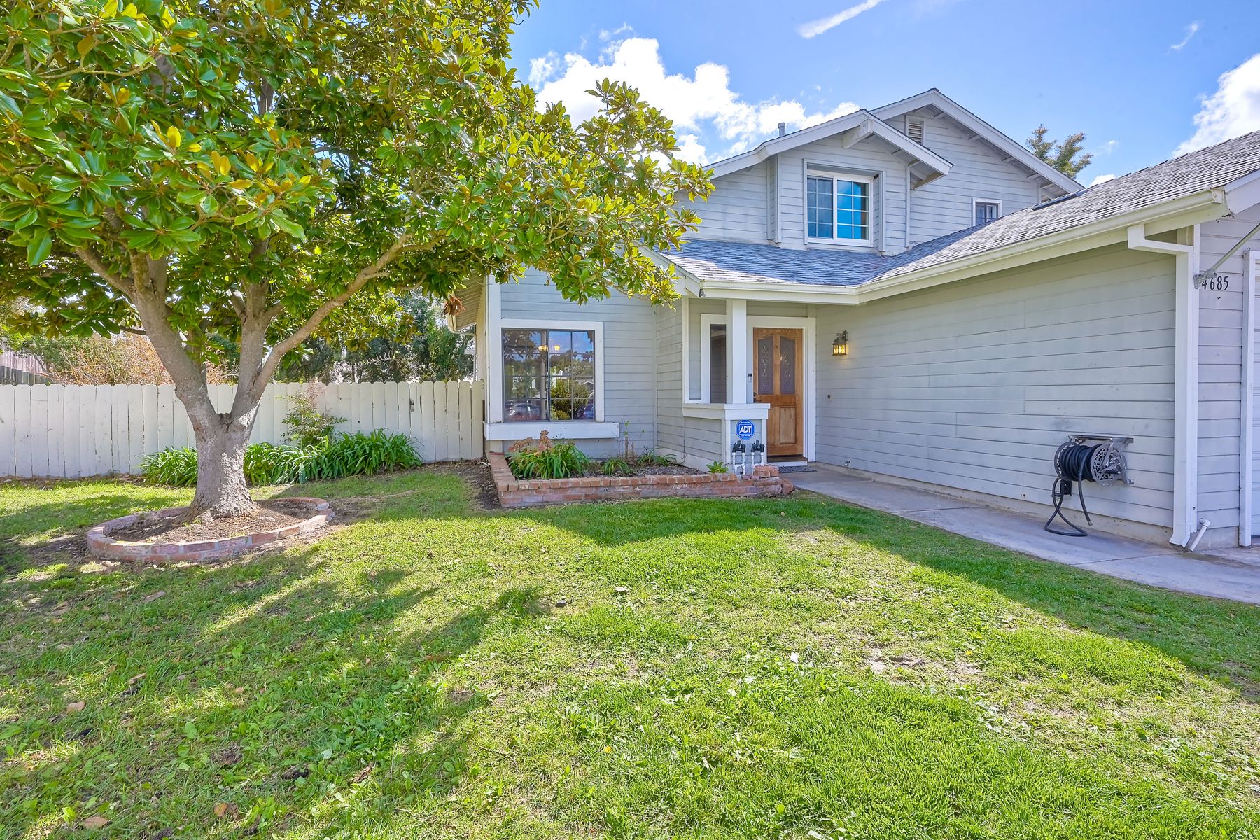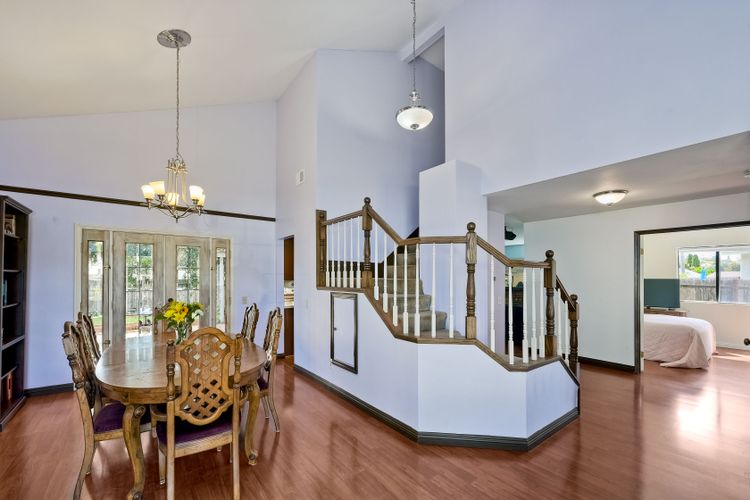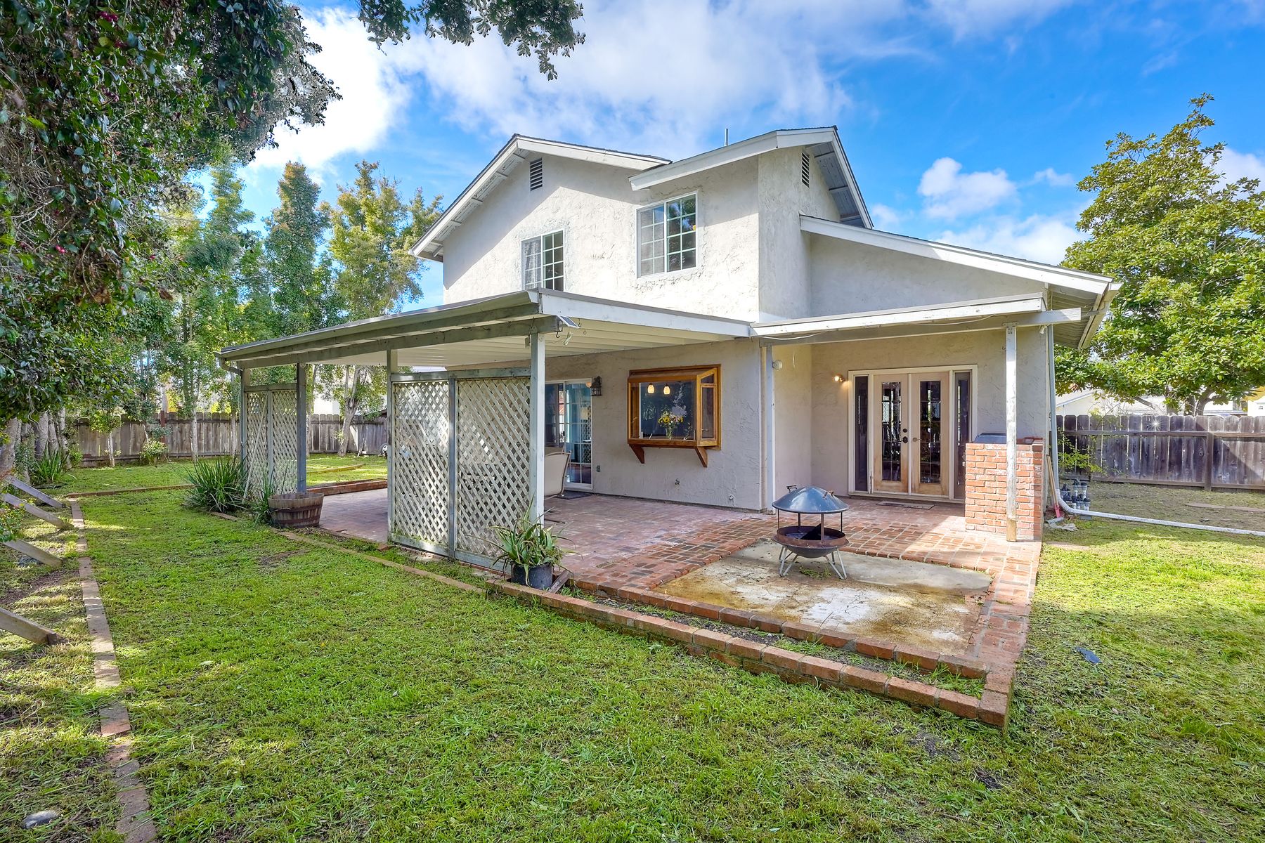 Lovely home on spacious lot in Sunset Hills - south of the 78, less than 15 minutes to the coast and in a charming neighborhood with NO HOA's! This 4 BR, 3 full bath home (one full BR and one full bath on entry level) lives so much larger than the 1,739 sf reflects. Perhaps it is the high ceilings and all of the natural light that pours through an abundance of windows. Perhaps it is the fact that it is nestled onto a .25 acre lot tucked into a cul-de-sac on a quiet street with a monstrous backyard!! Room for a pool for sure and quite possibly a charming little ADU. Spacious 2-car garage PLUS 2-car driveway. Sellers have: recently painted 85% of the interior, installed a new roof in 2021, installed new heat/AC and ducting in 2008/2009 AND have fully paid for 16-panel Palomar Solar panels. Quartz counters and updated wood cabinets in kitchen. Quartz counters and maple cabinets in one of the upper-level bathrooms. Laminate flooring throughout most of home with tiled bathrooms. Side yard has plenty of room to store a boat or an RV. This lovely home has so many of the right things but leaves some room for the next owner to customize as desired. This is a home you won't want to miss!