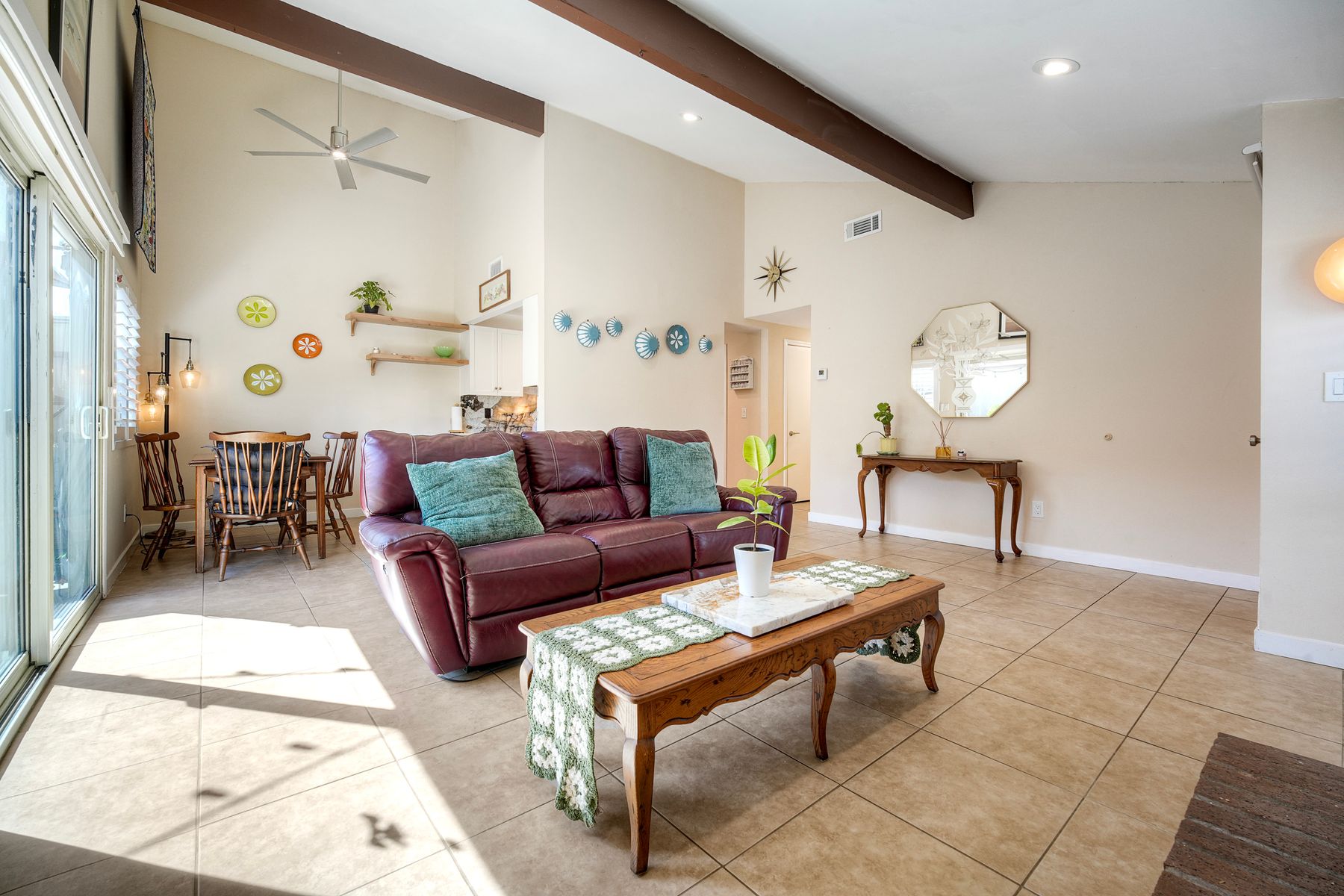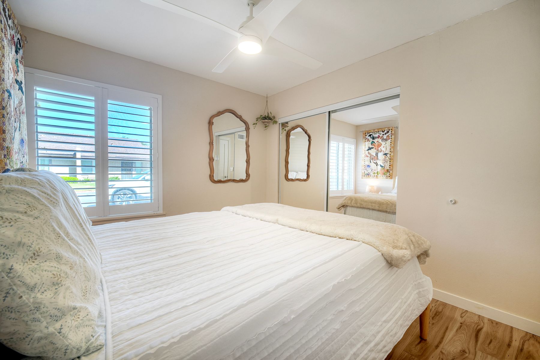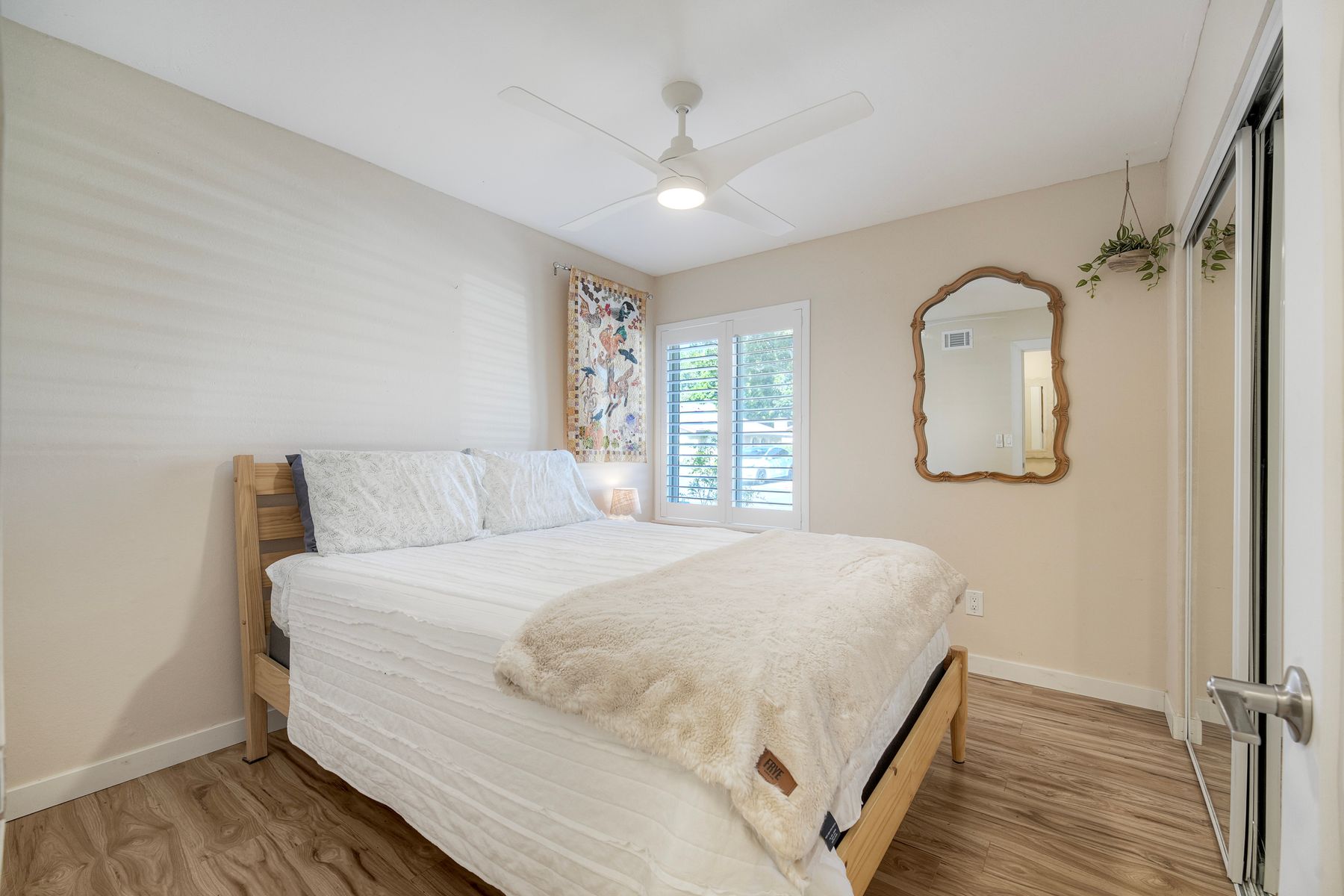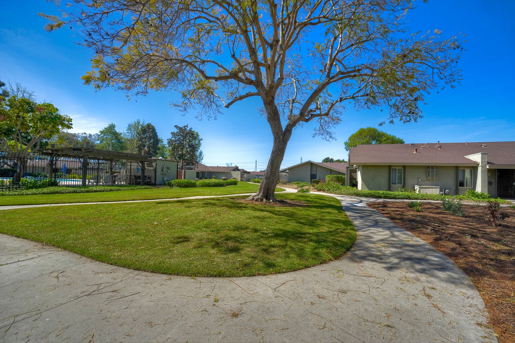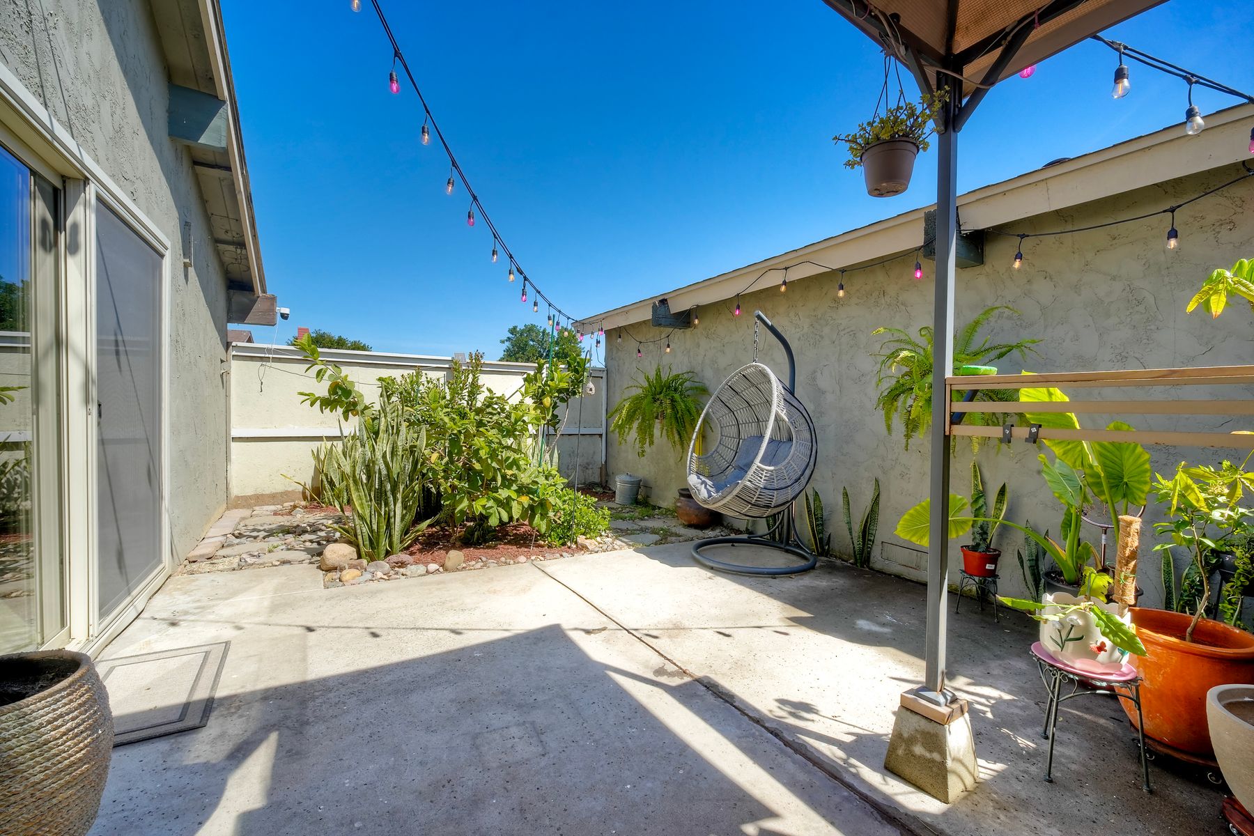 Welcome to this stunning, remodeled 2-bedroom, 1-bath home in Oceanside, Every detail of the floor plan has been thoughtfully designed. This beautiful home has been upgraded from top to bottom to maximize its space. As you step inside you will find beautiful tile and laminate flooring. Fresh paint adorns the walls and brightens every room. The heart of the home is the remodeled kitchen, featuring exquisite Patagonia granite countertops, custom self-closing cabinetry. Enjoy year-round comfort with a brand-new central AC and furnace unit. In addition, upgraded windows help to keep the home energy-efficient. LED lighting throughout the home provides a modern touch. There are ceiling fans in every room, allowing easy airflow and temperature control. The spacious living room boasts vaulted ceilings, creating an open and airy atmosphere. For gatherings and outdoor living, there is a private courtyard and garden. The surrounding community offers amazing perks. You will find two pools & spa, a large park with two playgrounds, and expansive open grass areas. An added perk is that HOA covers water, sewer, and trash! Lastly, the location couldn't be better! You're just minutes from the ocean, shopping, dining and freeway access. Imagine a Saturday morning taking the nearby San Luis Rey bike trail for a scenic ride to the coast! This home is truly a rare find that you don't want to miss!