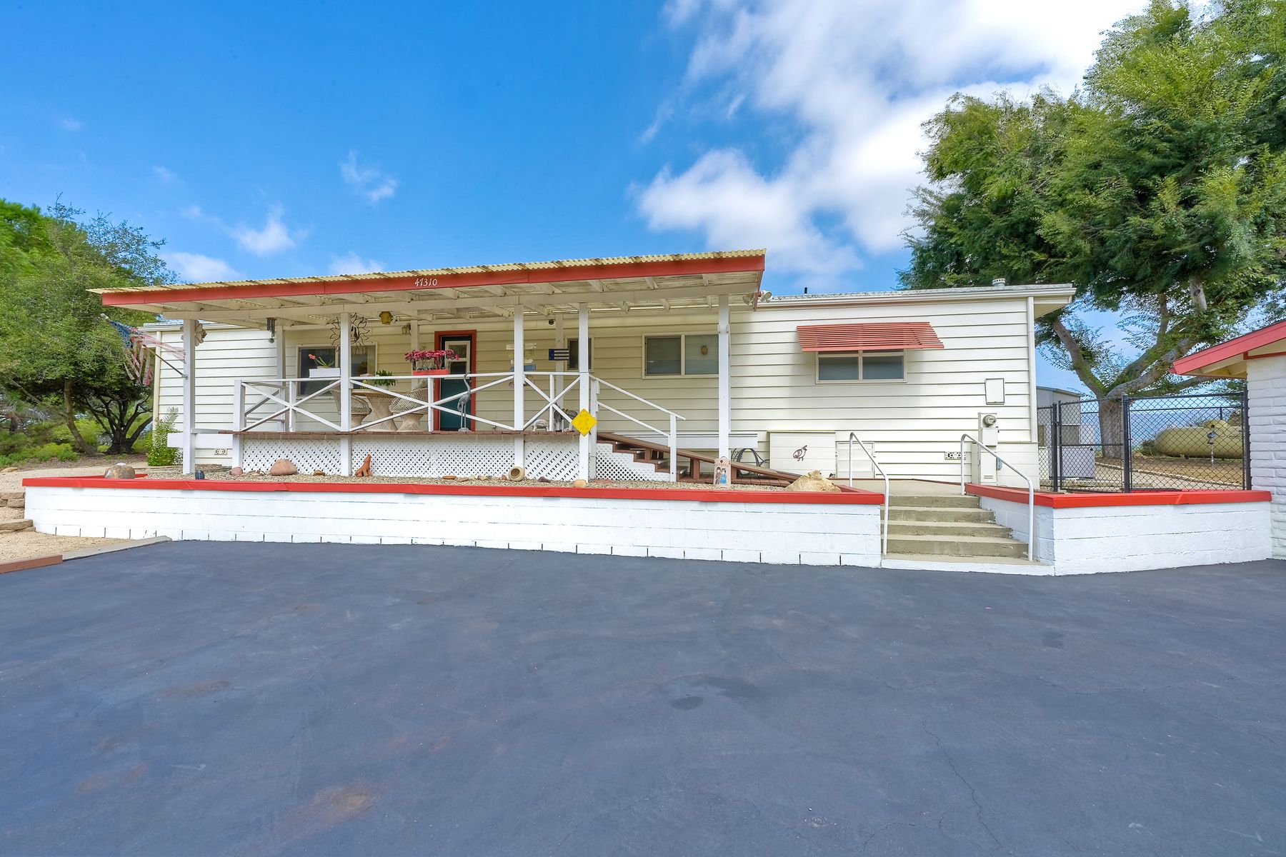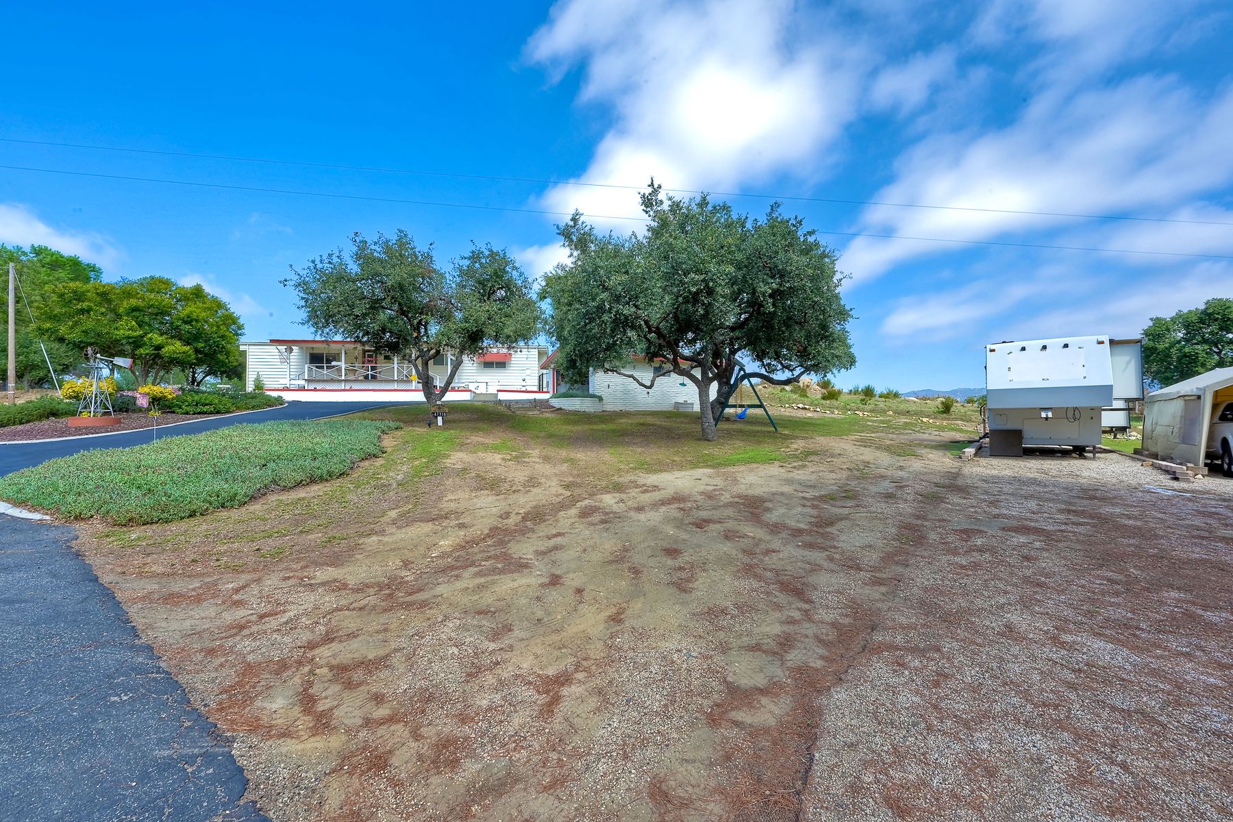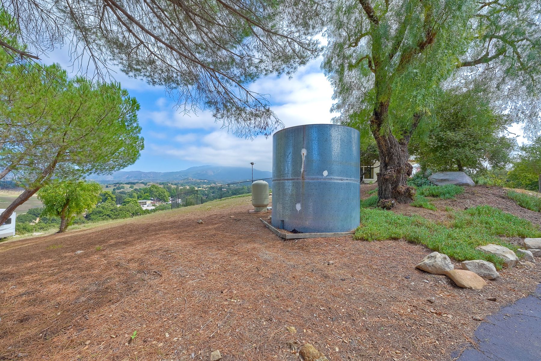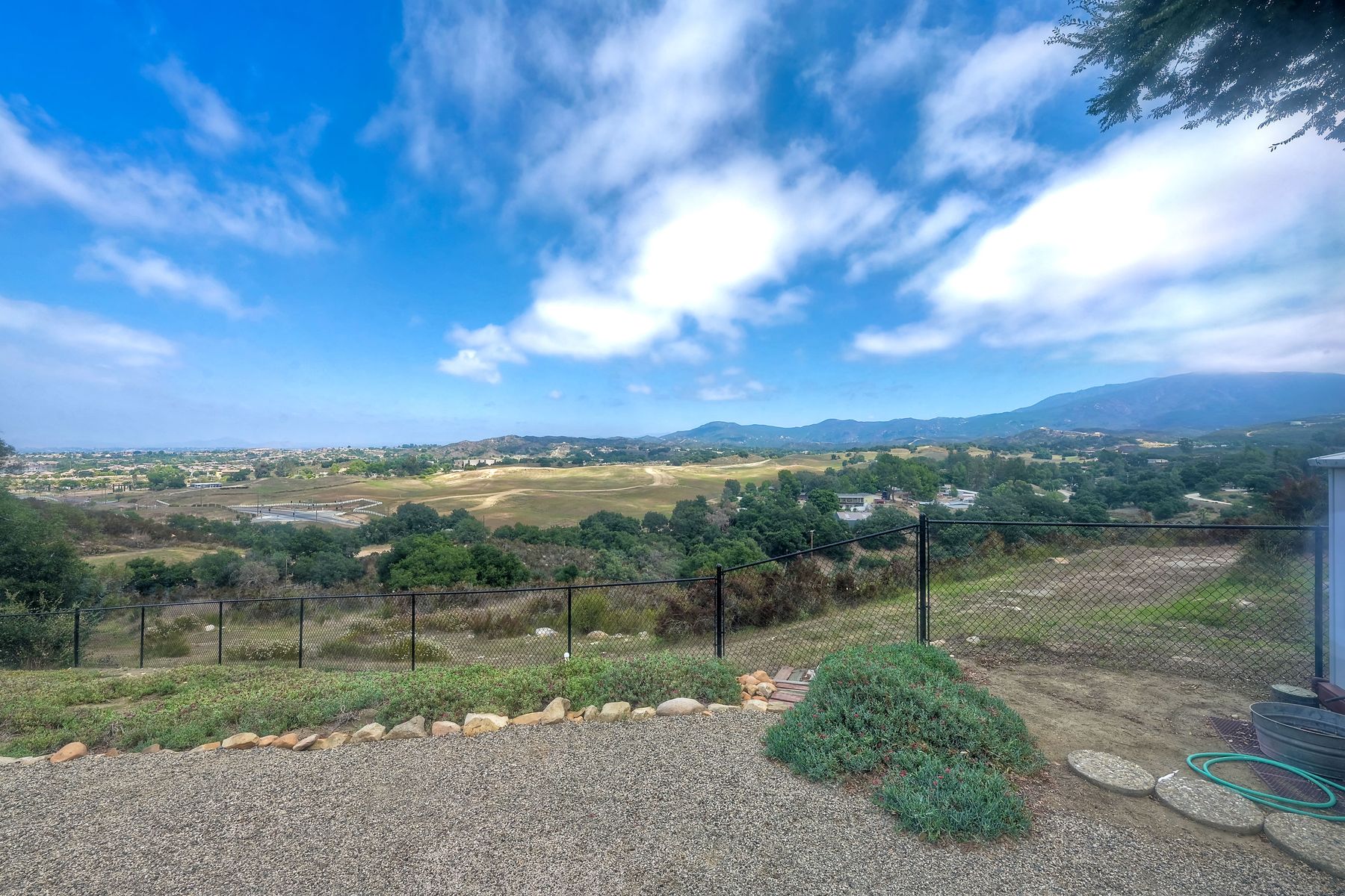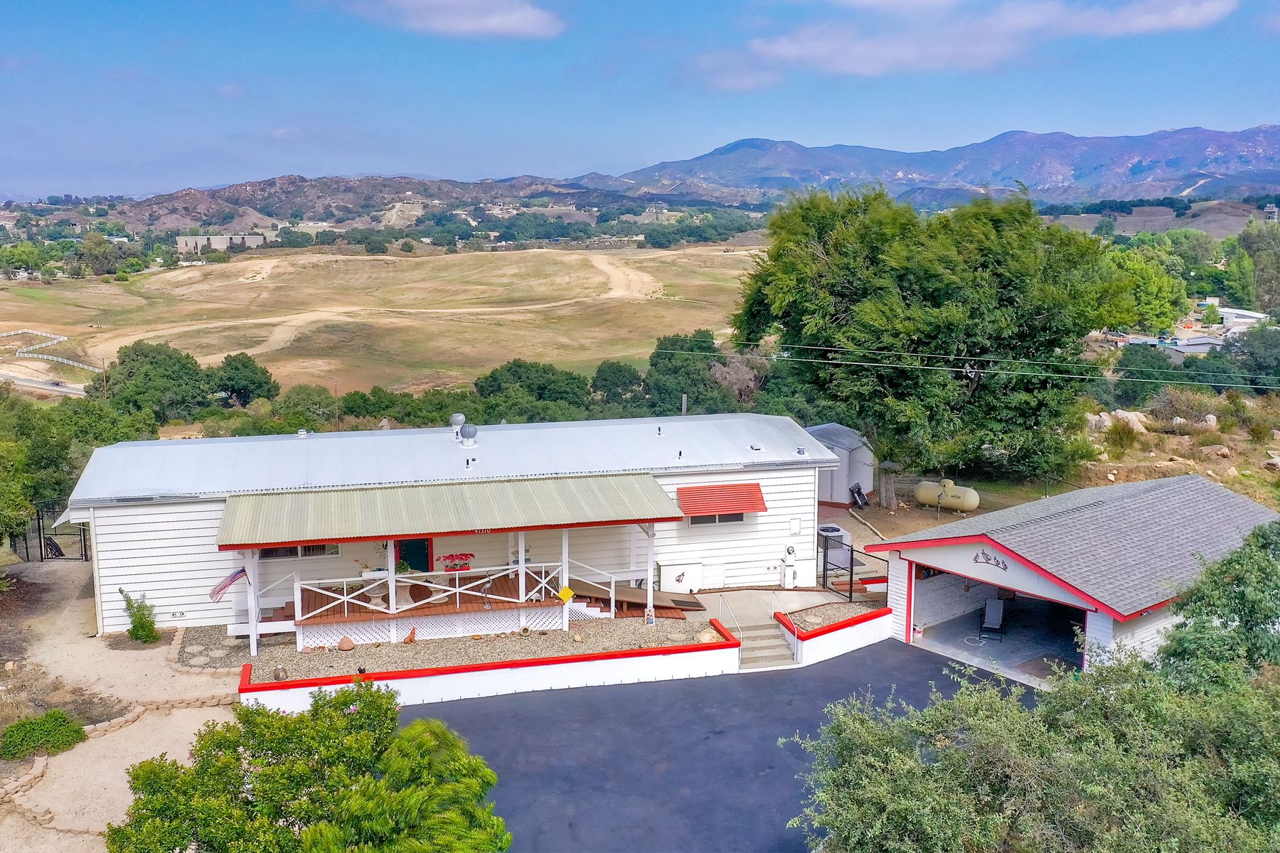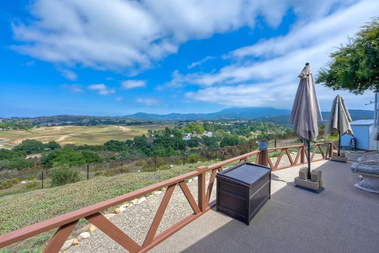 Views, Views, Views! This well maintained home sits on one of the largest lots in the rural and very private Oak Haven Estates community. It has amazing views of the city lights and mountains and is nestled amongst beautiful mature Oak and Pine trees, has low maintenance landscaping, R.V. parking with water and electric hookups. You can enjoy all of these wonderful features as well as country living while still only being a few miles from the city, shops, schools, Pechanga Casino and Temecula Wine Country and only 4 miles to Walmart and Home Depot. It is zoned for the highly rated Great Oaks High school. Relax and enjoy the views, breathtaking sunrises and great ocean breezes from the rear deck which is very private. There is a good size fully fenced area along the back of the home.This home sits on 3/4 acre and has a great location with wonderful curb appeal and easy access in and out of the community.There is an abundance of parking for all of your vehicles and toys and is perfect for entertaining. You will enjoy sunsets in the distance while sitting and relaxing on the front porch. It has 2 bedrooms and 2 bathrooms. The spacious living room and dining room has large windows with lots of natural light.The family room has a large sliding glass door where you can sit and relax and enjoy the views. There is also space for an office. The kitchen has lots of counter space and storage. The laundry space is inside the home. Some of the upgrades include double pane windows, a newer roof and water heater, central A/C and heating,whole house water filtration system and a reverse osmosis system inside. This property has its own well with a 2500 gallon holding tank and a back up generator that are all shared with one neighbor. Another great feature is that there is a detached 2 car garage with an air conditioned workshop. This is a perfect home or vacation home for somebody who loves and enjoys nature but still wants to be close to the city. The best of both lifestyles!! Low HOA. Property is not currently on a permanent foundation but seller may consider with an acceptable offer, no 433a certification.