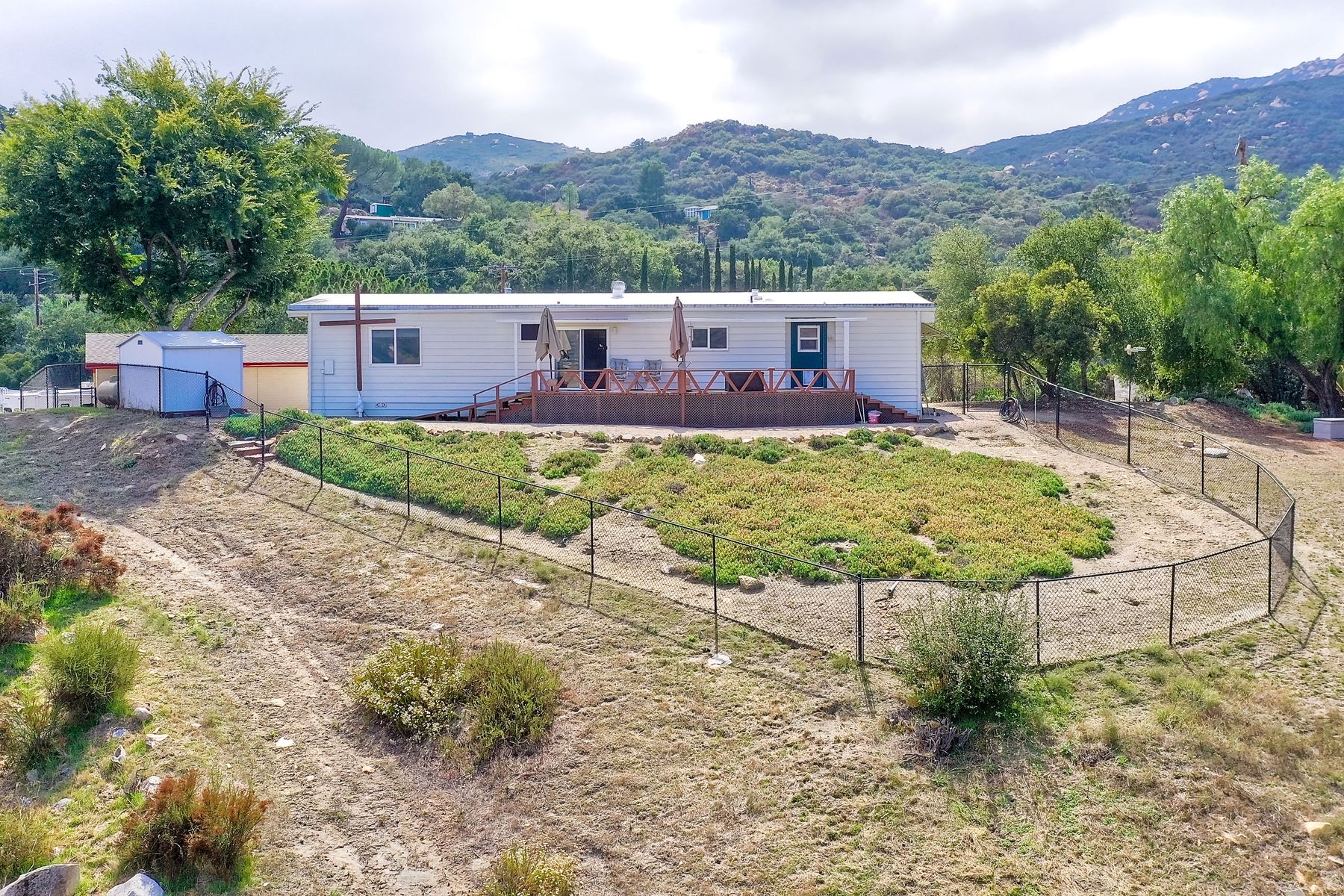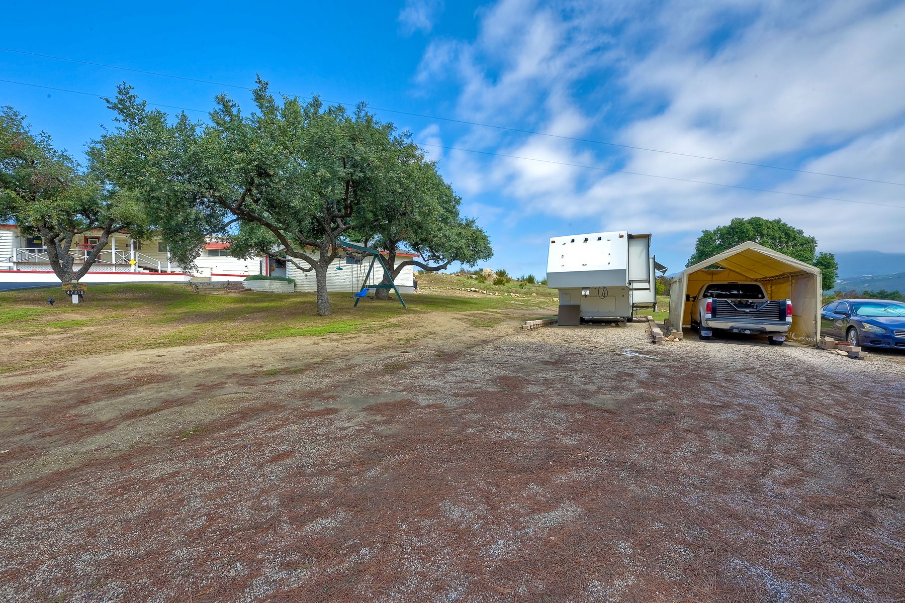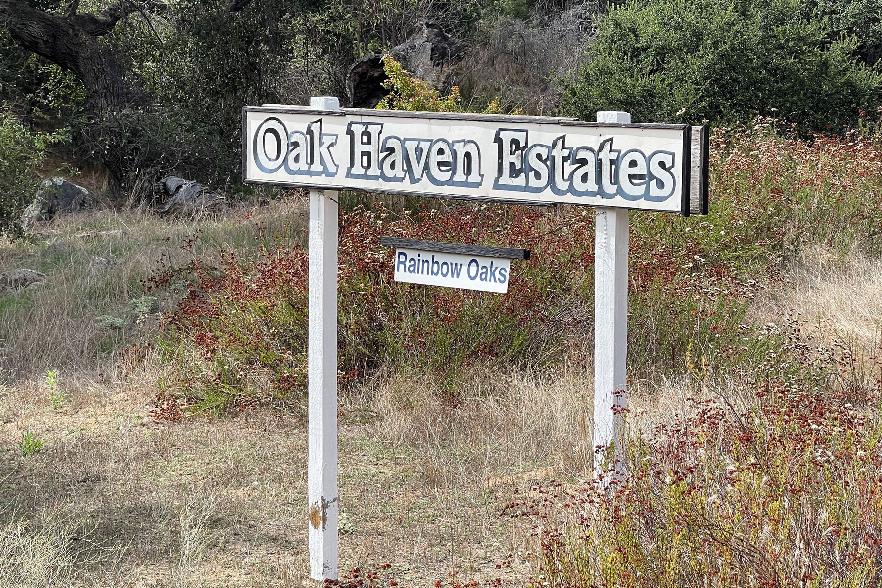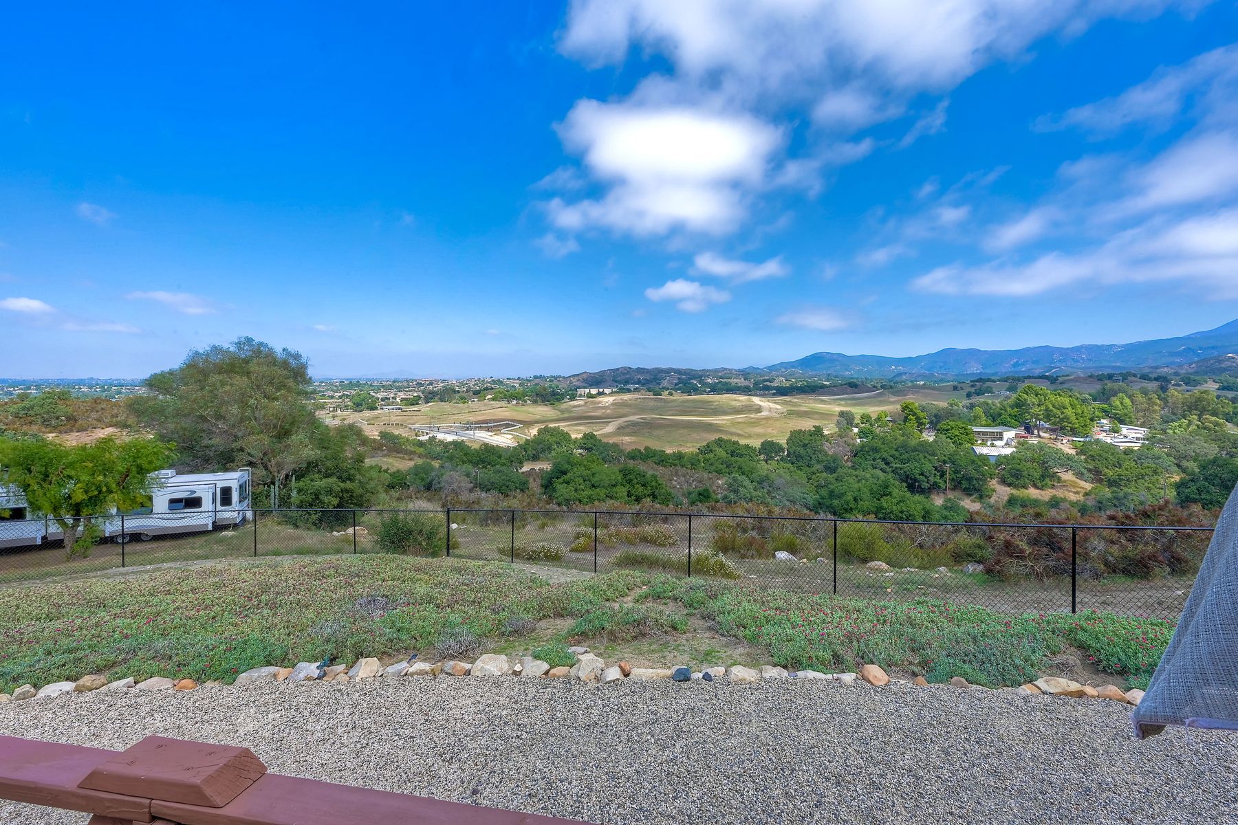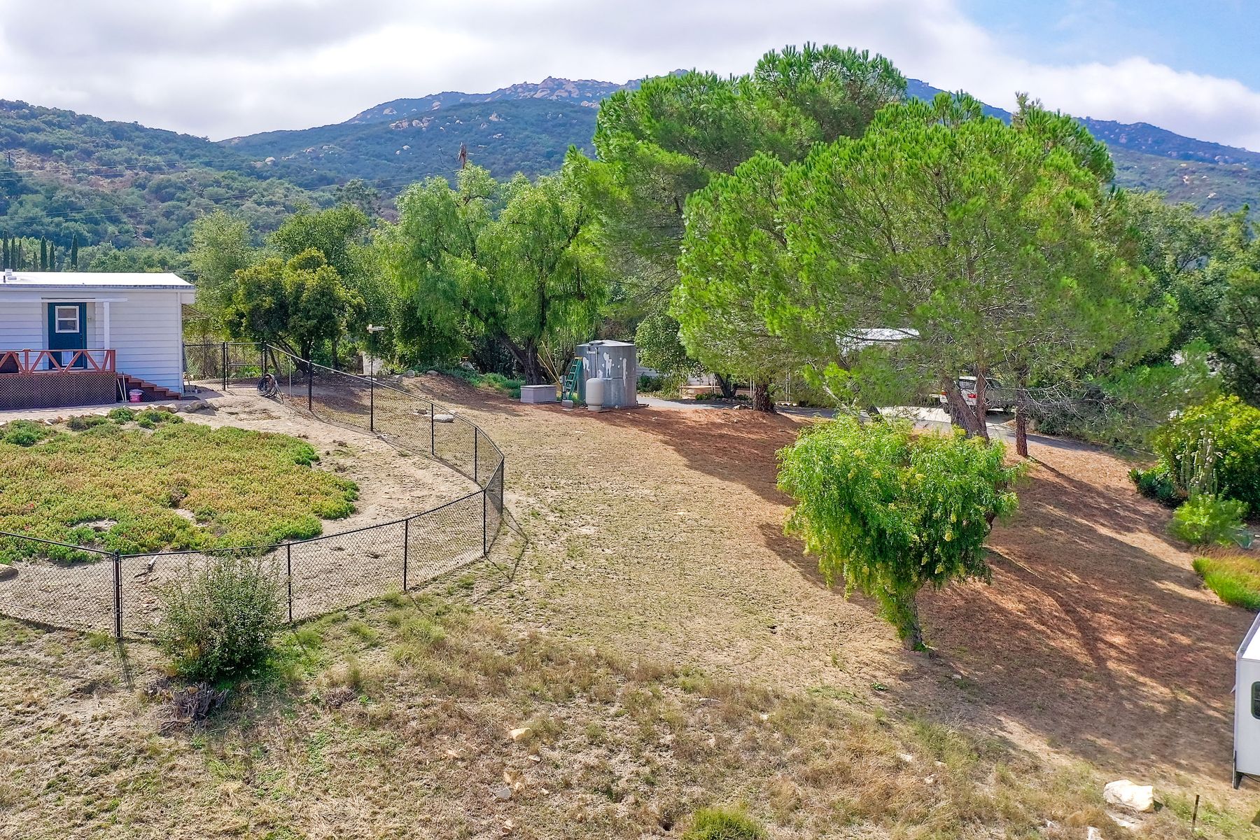 Views, Views, Views! This well maintained home sits on one of the largest lots in the rural and very private Oak Haven Estates community. It has amazing views of the city lights and mountains and is nestled amongst beautiful mature Oak and Pine trees, has low maintenance landscaping, R.V. parking with water and electric hookups. You can enjoy all of these wonderful features as well as country living while still only being a few miles from the city, shops, schools, Pechanga Casino and Temecula Wine Country and only 4 miles to Walmart and Home Depot. It is zoned for the highly rated Great Oaks High school. Relax and enjoy the views, breathtaking sunrises and great ocean breezes from the rear deck which is very private. There is a good size fully fenced area along the back of the home.This home sits on 3/4 acre and has a great location with wonderful curb appeal and easy access in and out of the community.There is an abundance of parking for all of your vehicles and toys and is perfect for entertaining. You will enjoy sunsets in the distance while sitting and relaxing on the front porch. It has 2 bedrooms and 2 bathrooms. The spacious living room and dining room has large windows with lots of natural light.The family room has a large sliding glass door where you can sit and relax and enjoy the views. There is also space for an office. The kitchen has lots of counter space and storage. The laundry space is inside the home. Some of the upgrades include double pane windows, a newer roof and water heater, central A/C and heating,whole house water filtration system and a reverse osmosis system inside. This property has its own well with a 2500 gallon holding tank and a back up generator that are all shared with one neighbor. Another great feature is that there is a detached 2 car garage with an air conditioned workshop. This is a perfect home or vacation home for somebody who loves and enjoys nature but still wants to be close to the city. The best of both lifestyles!! Low HOA. Property is not currently on a permanent foundation but seller may consider with an acceptable offer, no 433a certification.