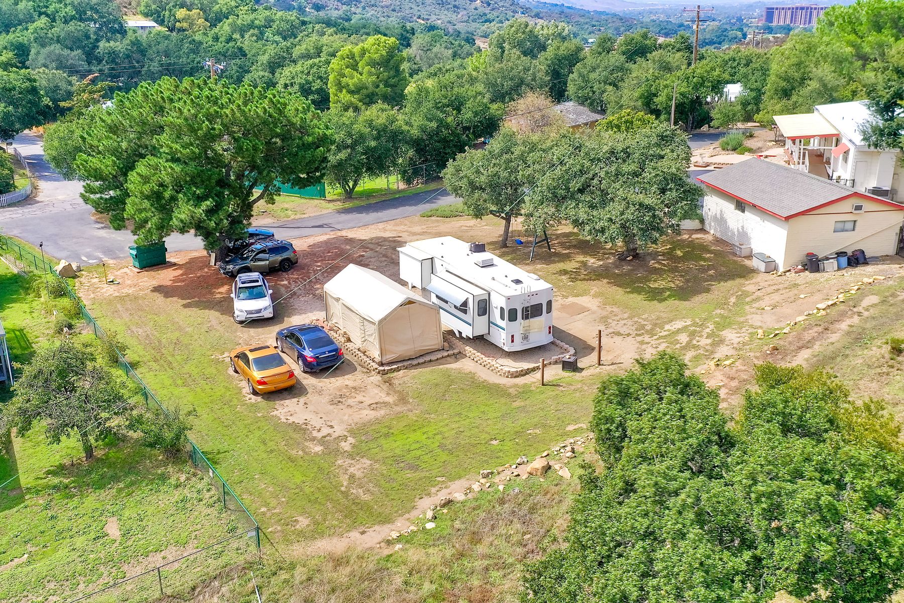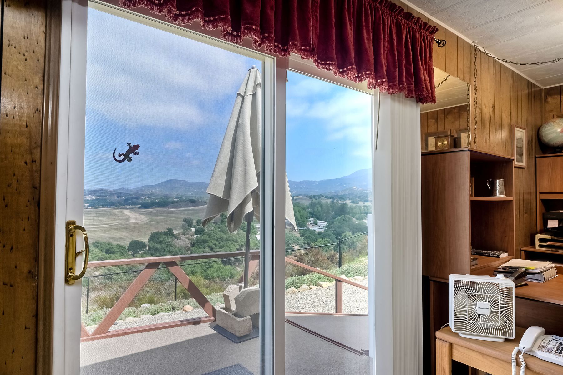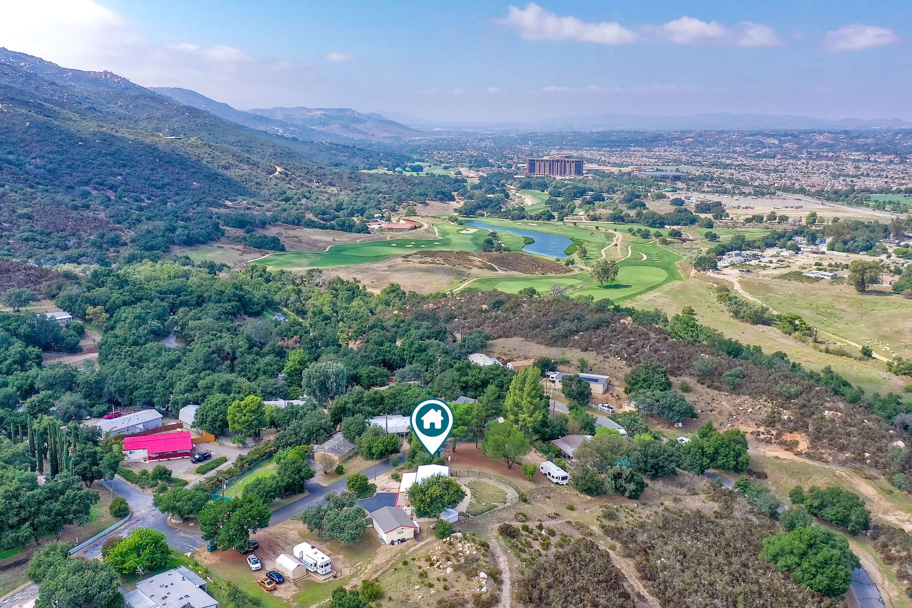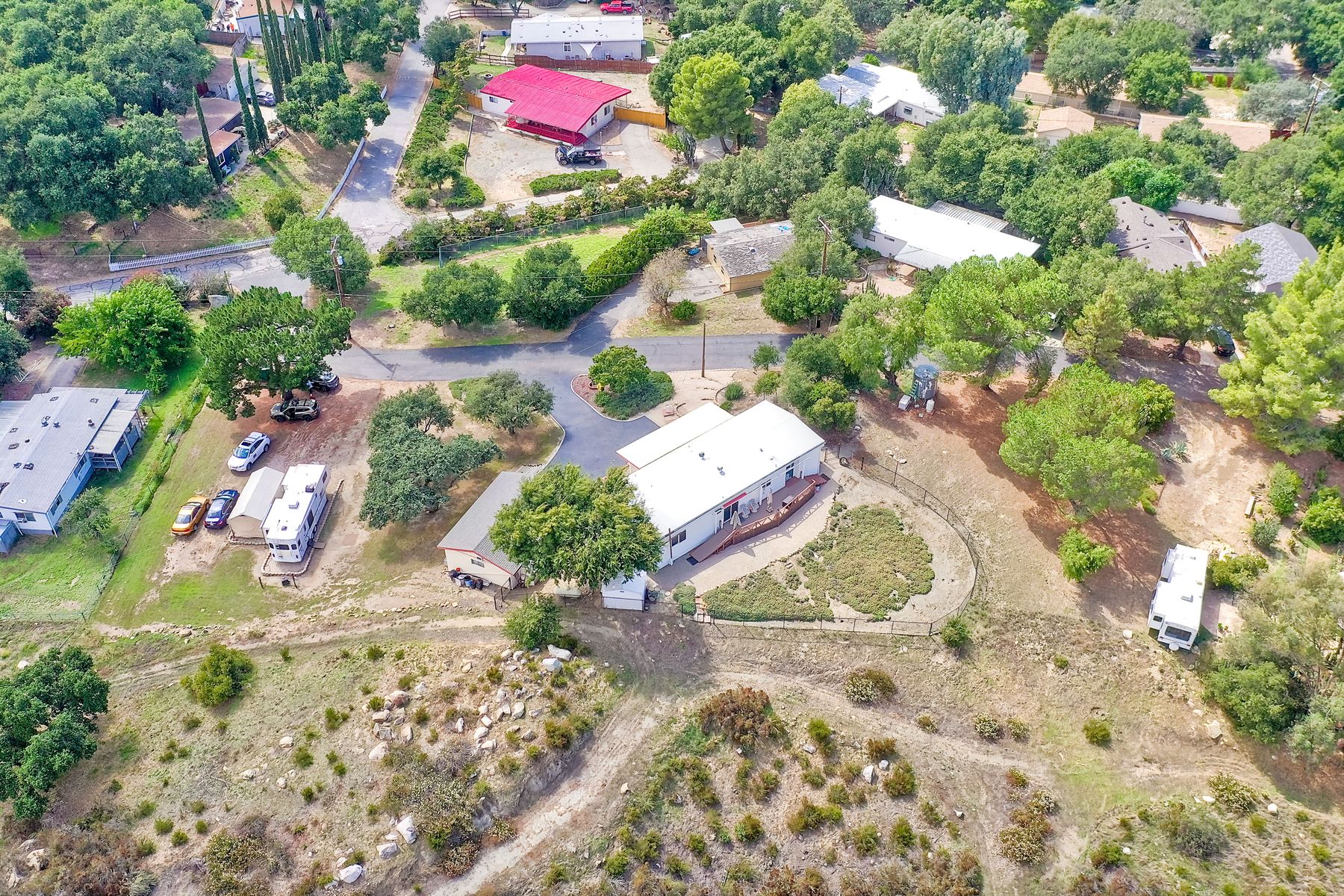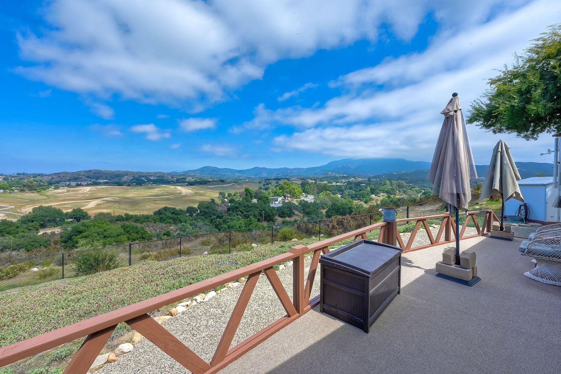 Views, Views, Views! This well maintained home sits on one of the largest lots in the rural and very private Oak Haven Estates community. It has amazing views of the city lights and mountains and is nestled amongst beautiful mature Oak and Pine trees, has low maintenance landscaping, R.V. parking with water and electric hookups. You can enjoy all of these wonderful features as well as country living while still only being a few miles from the city, shops, schools, Pechanga Casino and Temecula Wine Country and only 4 miles to Walmart and Home Depot. It is zoned for the highly rated Great Oaks High school. Relax and enjoy the views, breathtaking sunrises and great ocean breezes from the rear deck which is very private. There is a good size fully fenced area along the back of the home.This home sits on 3/4 acre and has a great location with wonderful curb appeal and easy access in and out of the community.There is an abundance of parking for all of your vehicles and toys and is perfect for entertaining. You will enjoy sunsets in the distance while sitting and relaxing on the front porch. It has 2 bedrooms and 2 bathrooms. The spacious living room and dining room has large windows with lots of natural light.The family room has a large sliding glass door where you can sit and relax and enjoy the views. There is also space for an office. The kitchen has lots of counter space and storage. The laundry space is inside the home. Some of the upgrades include double pane windows, a newer roof and water heater, central A/C and heating,whole house water filtration system and a reverse osmosis system inside. This property has its own well with a 2500 gallon holding tank and a back up generator that are all shared with one neighbor. Another great feature is that there is a detached 2 car garage with an air conditioned workshop. This is a perfect home or vacation home for somebody who loves and enjoys nature but still wants to be close to the city. The best of both lifestyles!! Low HOA. Property is not currently on a permanent foundation but seller may consider with an acceptable offer, no 433a certification.