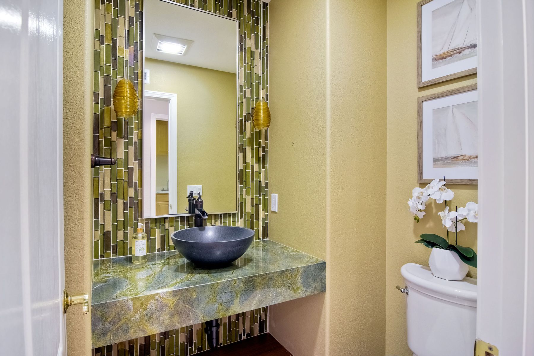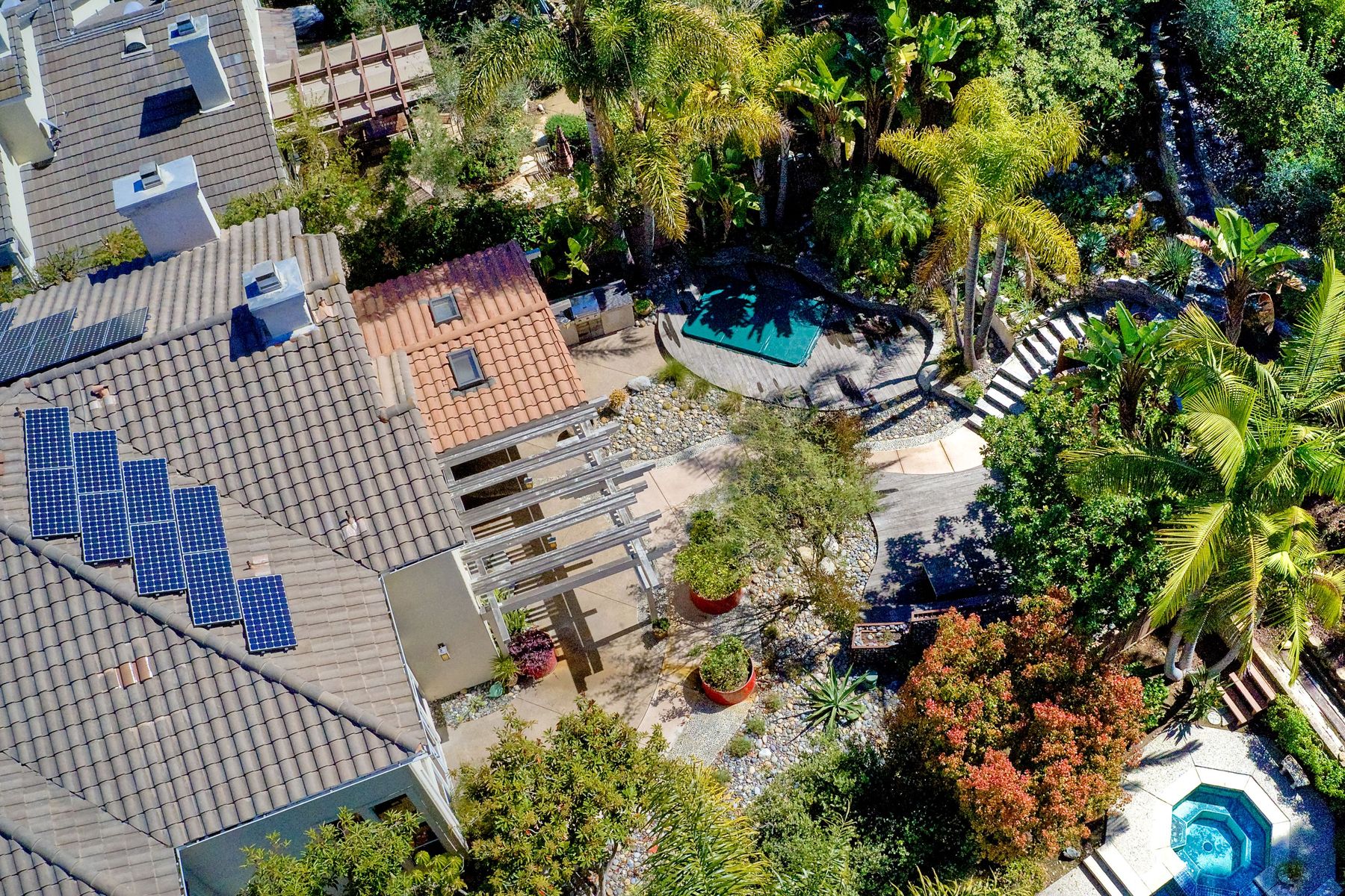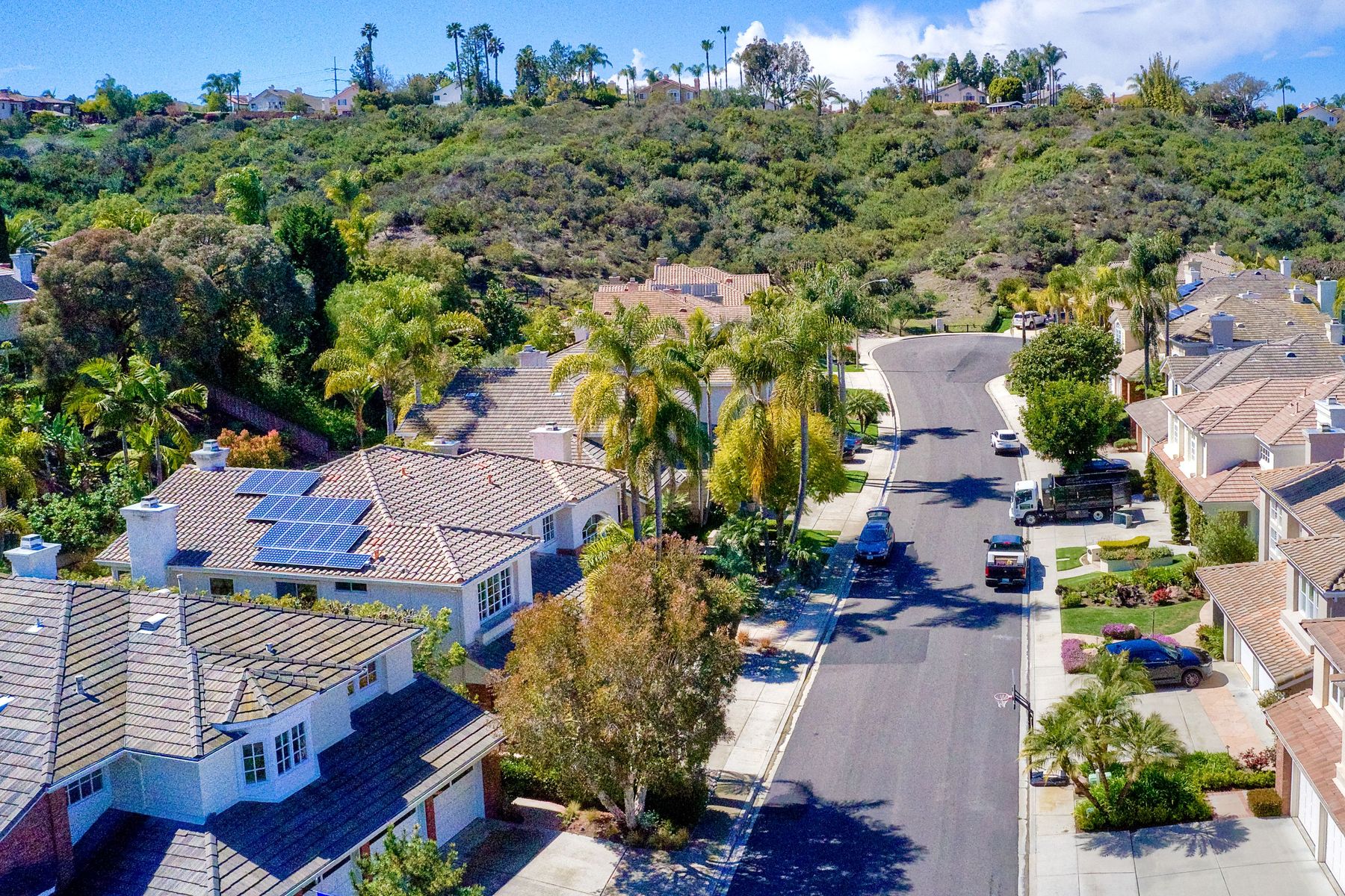 Meticulously remodeled home in the heart of Carmel Valley. Located on a quiet cul-de-sac. The gourmet kitchen features custom cabinetry, a six-burner gas cooktop, Sub Zero refrigerator, warming drawer and double ovens. Kitchen opens to a family room. Formal living and dining room have soaring ceilings and are flooded with natural light. Temperature controlled wine cabinet that fits 12 cases of wine, plus a separate white wine refrigerator.Brazilian cherry floors upstairs and down. Full bedroom with its own bathroom downstairs that is currently built out as an office (closet was removed). Upstairs, the spacious master overlooks the peaceful backyard and has a dual-sided gas fireplace. The master bath was remodeled with the utmost attention to detail and features a walk-in shower and a luxurious free-standing tub, plus a large walk-in closet. The two upstairs secondary bedrooms share a full bathroom and a bonus loft area. Low maintenance, private, pool-sized yard is professionally landscaped and features a barbecue, fire pit, hot tub and water feature. Home has solar (owned). Low HOA and no Mello Roos. Close to top rated schools including Torrey Pines High School, Cathedral Catholic and Canyon Crest Academy and great shopping and restaurants. Minutes to I-5 and 56 and to beaches.