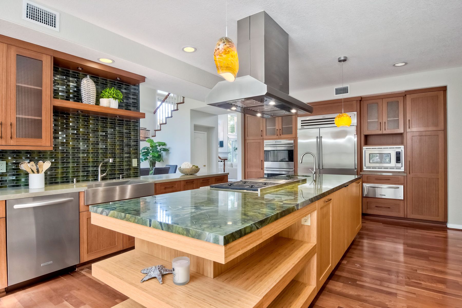 6 Burner Stove, Barbecue, Convection Oven, Dishwasher, Double Oven, Electric Oven, Disposal, Gas Cooking, Gas Cooktop, Gas Water Heater, Microwave, Range Hood, Refrigerator, Vented Exhaust Fan, Warming Drawer, Water Heater, Water Line to Refrigerator