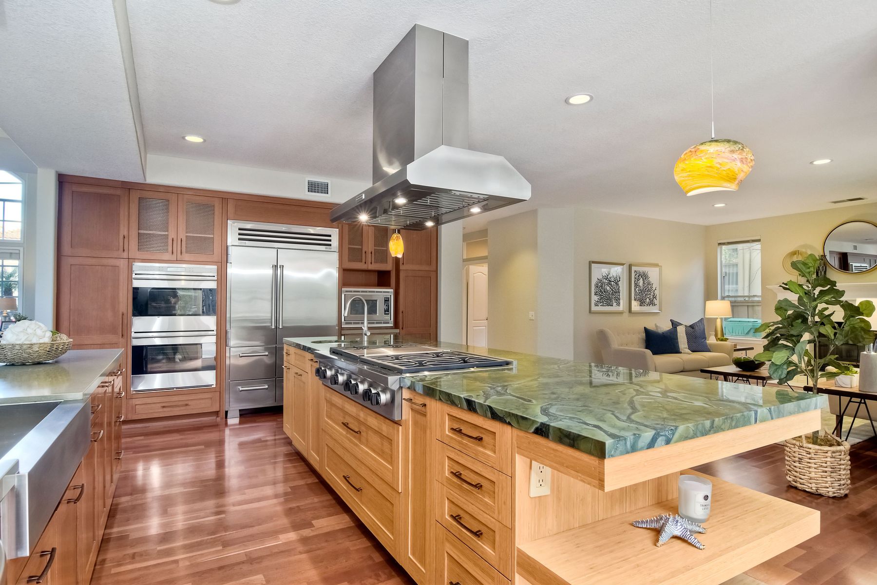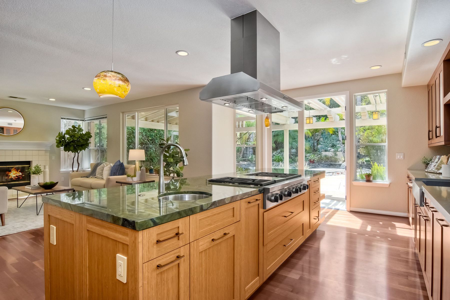 Granite Counters, Kitchen Open to Family Room, Kitchen Island, Pots & Pan Drawers, Remodeled Kitchen, Self-closing drawers