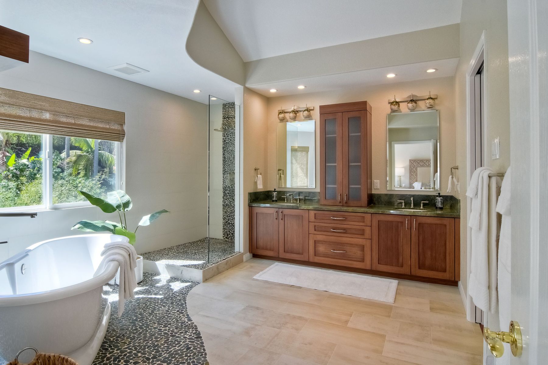 Double Sinks In Master Bath, Exhaust fan(s), Granite Counters, Low Flow Toilet(s), Remodeled, Separate tub and shower, Upgraded, Walk-in shower, Bathtub, Closet in bathroom