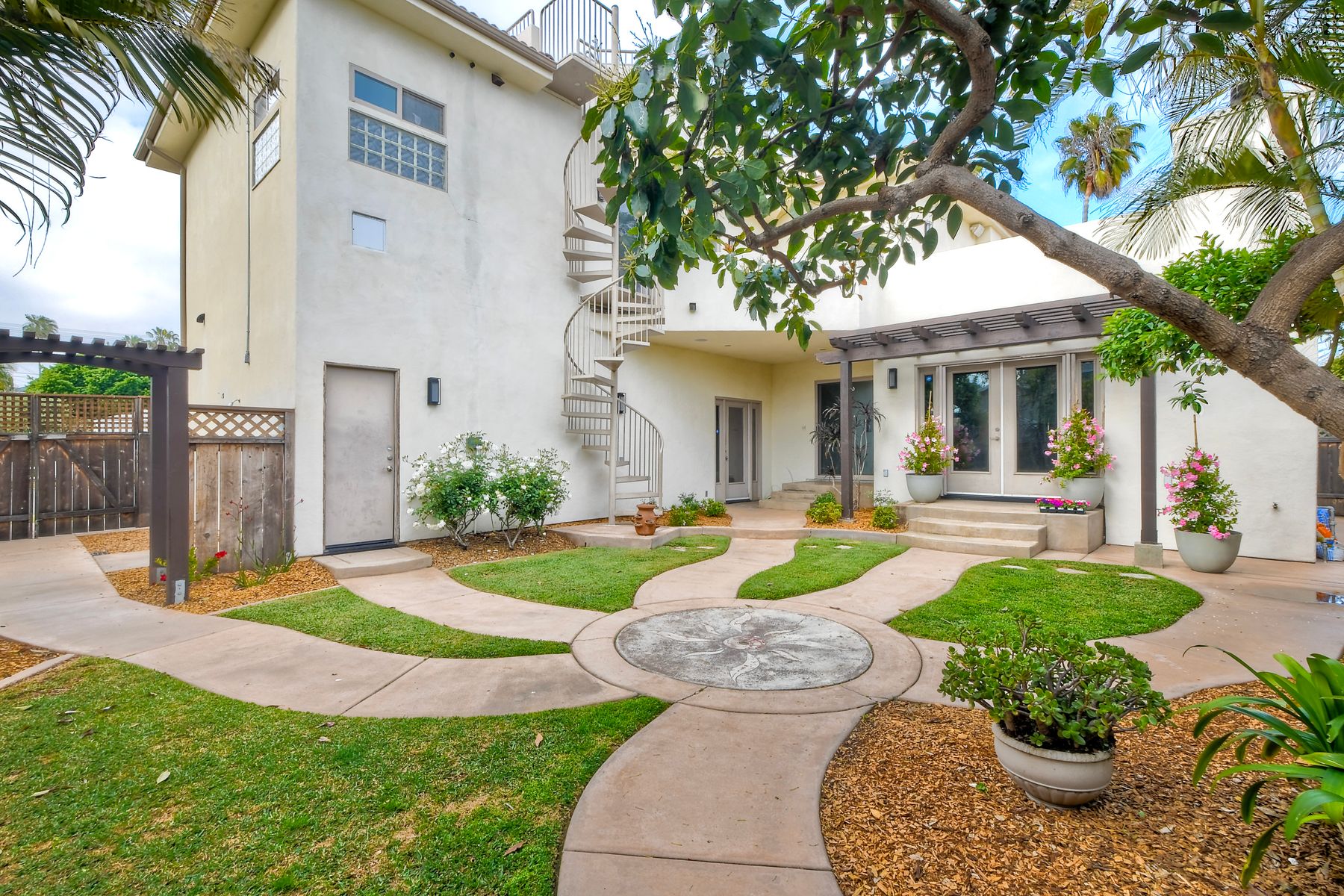 Coastal Living at Its Finest – Pacific Beach Stunner with Panoramic Views. Welcome to this exceptional Pacific Beach residence offering the best of San Diego’s coastal lifestyle. Located just blocks from the beach, this expansive custom built 4-bedroom, 3.5-bathroom home boasts 3,009 sq ft of living space and is situated on a desirable end, corner lot. Walking distance to the beach and boardwalk, restaurants, grocery stores, parks, and nightlife. Highlights include dual master suites—one on each level—, built-in surround sound speakers throughout the interior and exterior of the house, and two spacious decks including an incredible rooftop deck with sweeping views of Downtown, Mission Bay, and the Pacific Ocean. An 11kW, 13 panel owned solar system was installed in 2022 by Baker Electric and provides enough electricity for two electric vehicles and all appliances++. Fresh interior & exterior paint, along with new upstairs carpet & re-finished hardwood floors. The thoughtfully designed first floor features a primary suite with a private ensuite bath, perfect for multigenerational living or guest accommodations. The main level also includes a generous formal dining room, a large and open kitchen ideal for entertaining, as well as a great room with gas fireplace and a flexible space for work or reading . A tucked-away laundry room with loads of storage and a separate entrance adds convenience and functionality. Upstairs, you’ll find three additional bedrooms, each with walk-in closets. See Supplement=> The second-level master retreat is a true sanctuary, complete with a luxurious ensuite bathroom offering dual vanities, a soaking tub, walk-in shower, and a massive custom- built walk-in closet. The master suite also has private access to an upper-level deck with stunning views. One of the upstairs bedrooms is perfectly suited as a home office, with built-in cabinetry and a desk, while another enjoys direct access to a full bathroom. The outdoor space is where this home truly shines. Enjoy expansive decks, including a rooftop oasis perfect for sunsets and taking in breathtaking views of San Diego. The quiet, private backyard features a lush lawn, a charming pergola, mature avocado & lime trees and an outdoor shower—ideal after a day at the beach. Additional perks include a spacious two-car garage with a wall of built in cabinets for storage and a workbench. There is ample parking for three additional vehicles in the driveway. The side utility area could easily store a small RV, boat or trailer. With close proximity to schools, parks, restaurants, and the sandy shores of Pacific Beach, this home blends luxury and lifestyle in one unbeatable package.