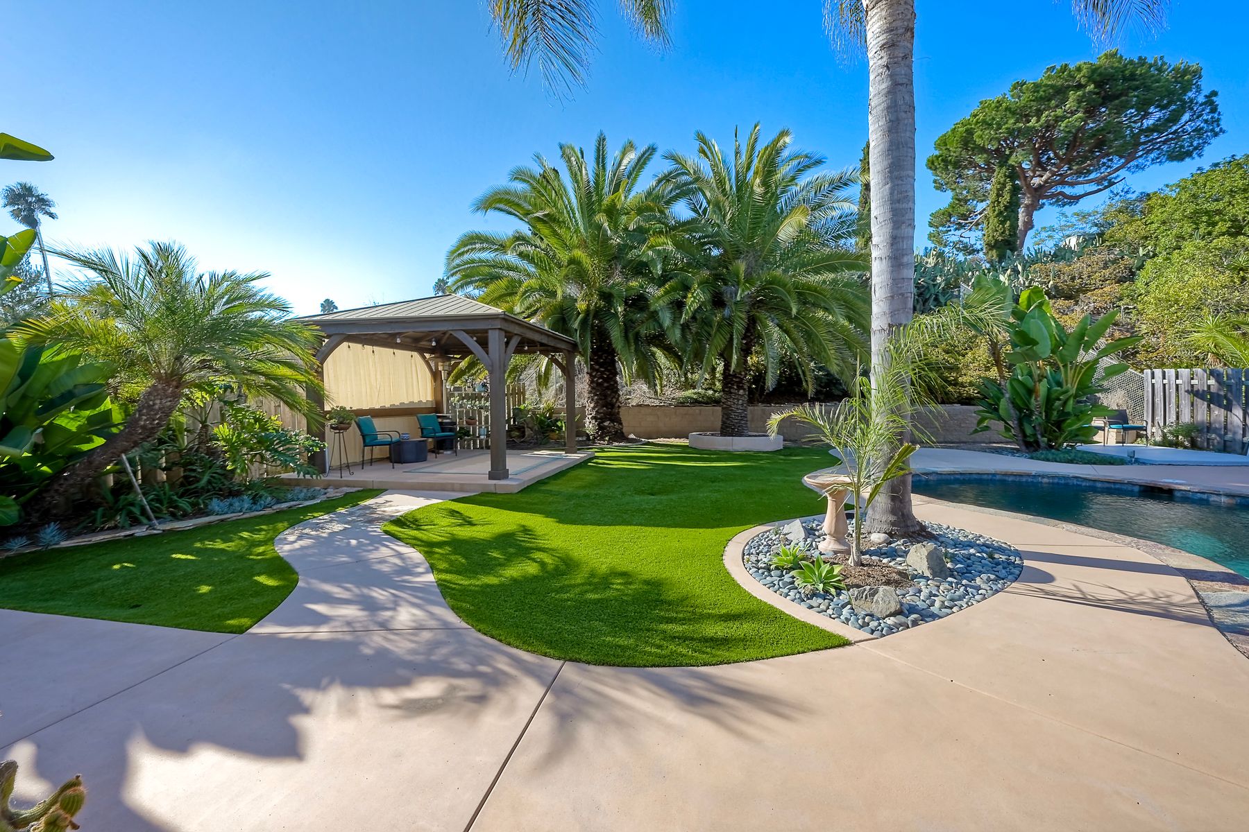 Have you been looking for Resort-Style Living in Carlsbad 92008?– This is a one-of-a-kind Custom Single-Level Home on an expansive, private lot. Experience the best of Carlsbad living in this stunning custom-built single-level home, perfectly situated on a spacious 12,700 sq. ft. lot adjacent to a tranquil nature preserve. Designed for comfort and style, this home features soaring ceilings, abundant natural light, and an open layout ideal for both everyday living and entertaining. The chef’s kitchen and expansive great room flow seamlessly to the backyard oasis, complete with a PebbleTec pool (10 ft. deep) featuring a Baja shelf and cascading waterfalls, surrounded by lush landscaping and multiple areas for outdoor dining and relaxation. Enjoy a luxurious primary suite with a walk-in closet, spa-like bath, and French doors leading to your outdoor oasis. Energy-efficient upgrades include paid solar (no electric bill since installation), a new HVAC system (Jan 2024), and a new tankless water heater (Jan 2025). Fresh interior paint (2025), newer appliances, Ecobee smart thermostat, and whole-house air purifier enhance modern comfort and livability. Meticulously maintained with true pride of ownership—offering privacy, style, and resort-inspired living just minutes from Carlsbad Village, top-rated Carlsbad schools, and coastal amenities.