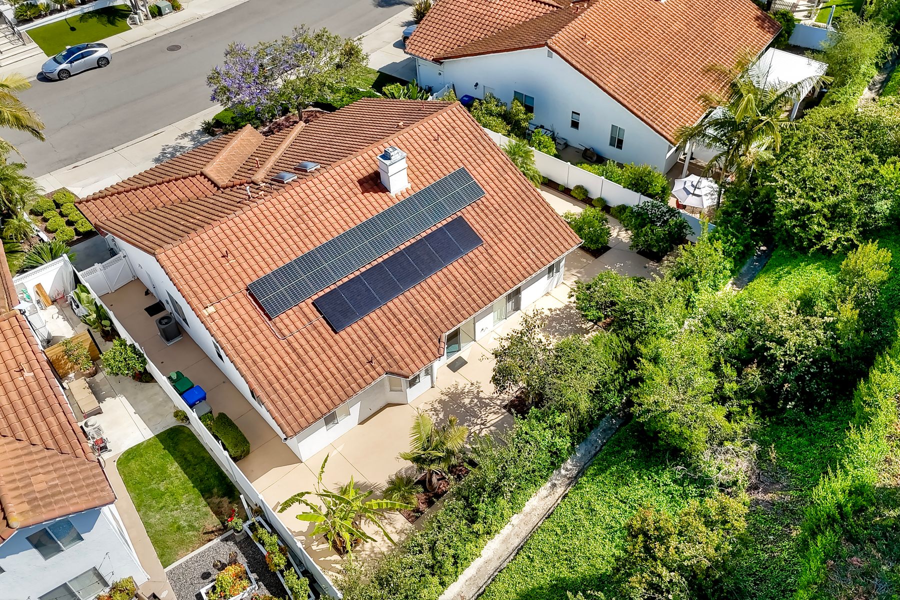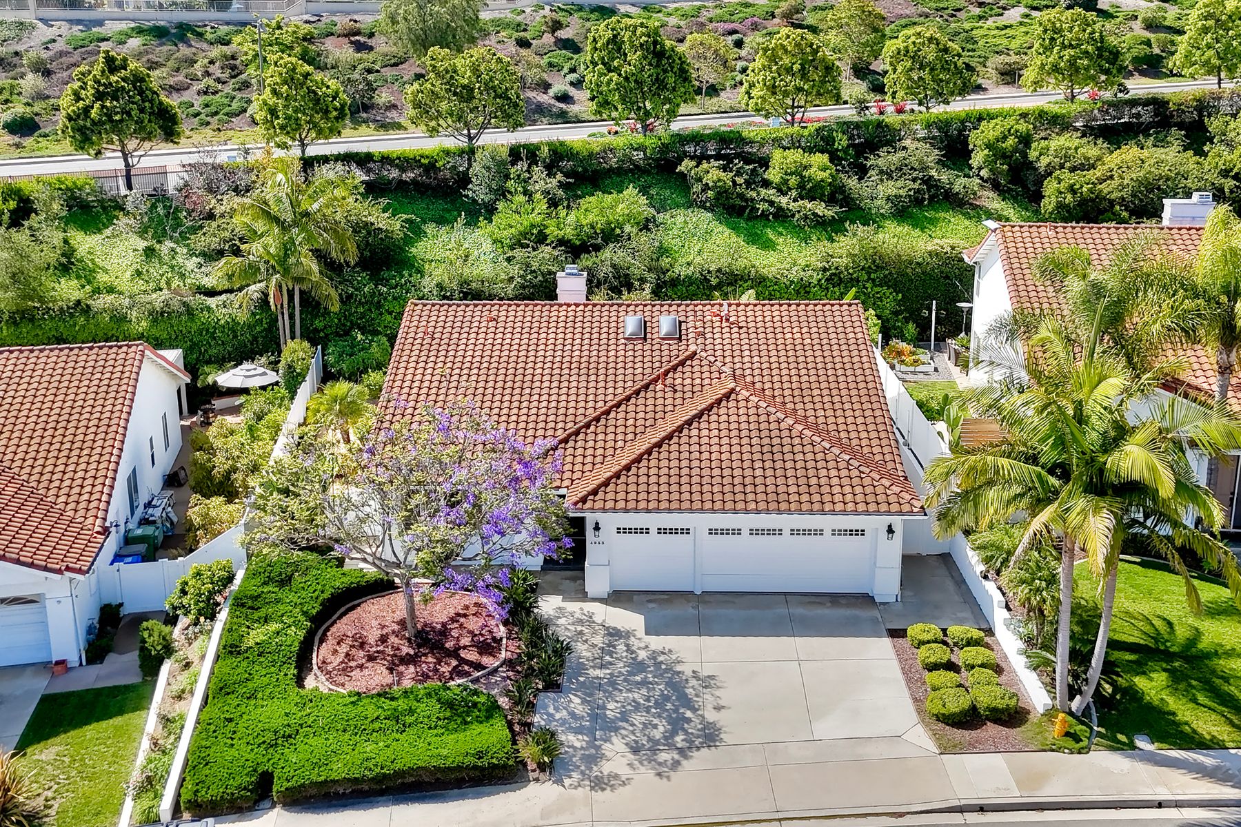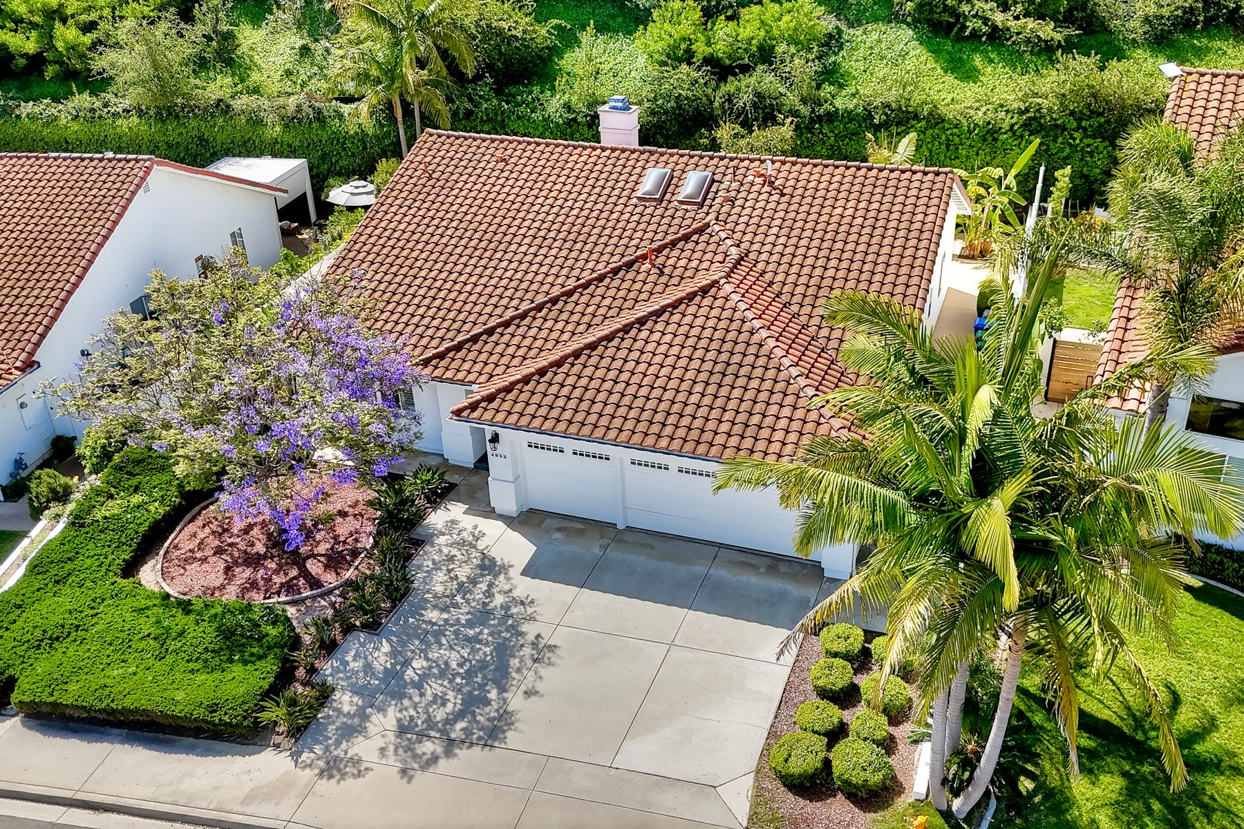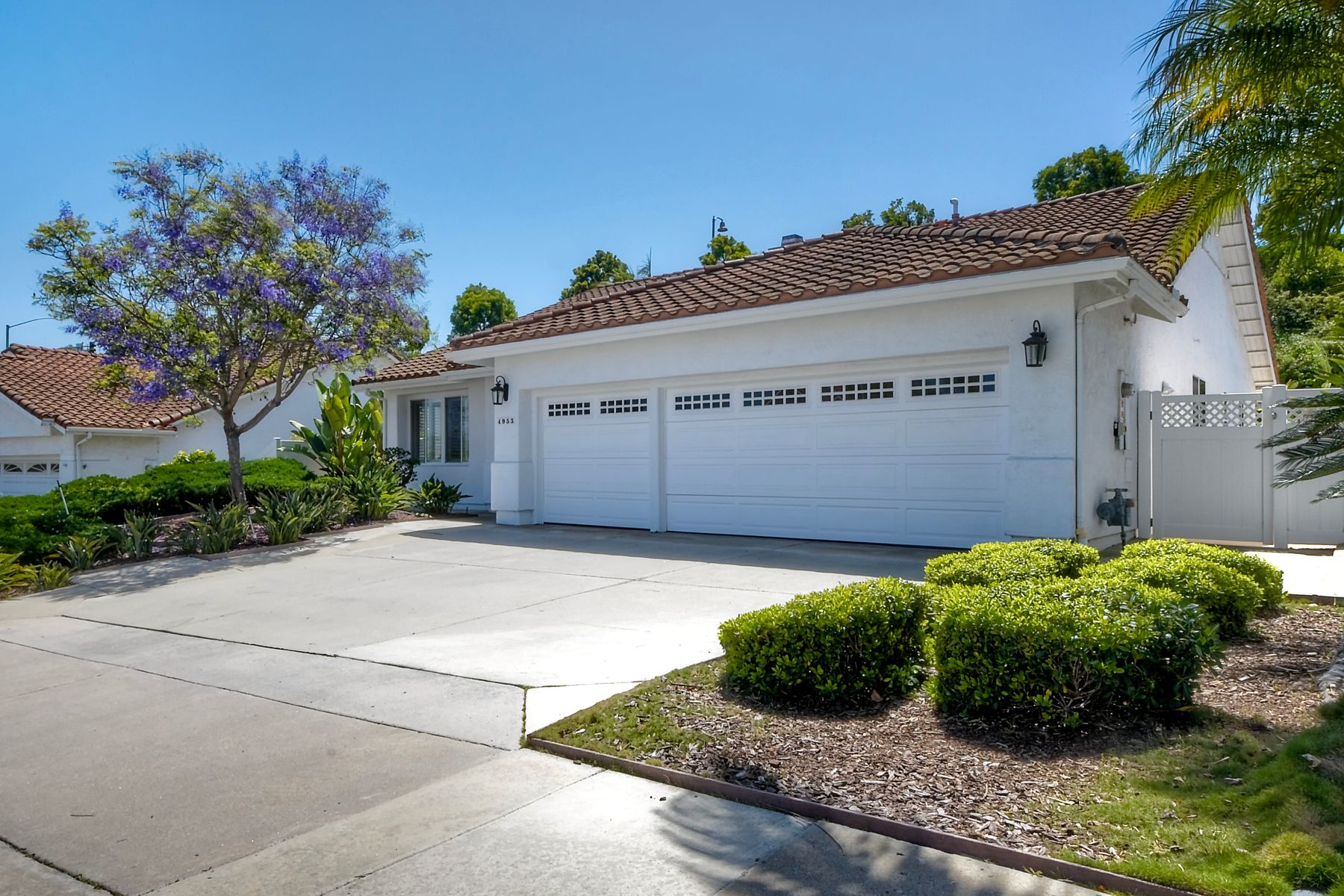THE SUMMIT at OCEAN HILLS, a highly desirable neighborhood in North Oceanside known for it's Mediterranean style white stucco homes with red tile roofs.* Here is the SINGLE LEVEL home you have been searching for, set on a LARGE LOT with a THREE CAR GARAGE. Enjoy modern, energy efficient living with a fully OWNED and PAID for 18-PANEL SOLAR SYSTEM and TESLA EV CHARGING setup, with BATTERY BACKUP, helping reduce utility costs.* The open-concept layout offers an effortless flow between living spaces, while vaulted ceilings enhance the airy, expansive feel. The living room and dining area connect seamlessly. The dining space is filled with natural light from two skylights. A cozy double-sided fireplace is shared between the dining area and family room.* The kitchen is a bright, galley-style space with a long run of counters on both sides. Generous dark stone counter space is contrasted by a lighter stone surface on the raised bar/peninsula. The overall effect is substantial and durable, with plenty of prep and serving room. Abundant, full-height cabinetry gives the room a clean, classic look and provides ample storage. At the far end of the kitchen is a cozy window nook with a small desk and seating area, set into the bay windows—an ideal spot for casual dining or a workspace, with lots of natural light and view of the rear garden.* The spacious primary ensuite bedroom offers a comfortable retreat, featuring a large walk-in closet and a sliding glass door that opens directly to the rear patio and backyard. You can enjoy privacy on the patio, as there is no neighbor behind the home.* Enjoy the garden’s bounty from mature fruit trees, including two avocado trees plus apricot, fig, and lemon. *Additional features: newer AC, newer hot water tank w/recirculating hot water, reverse osmosis water system, new washing machine, overhead storage racks in garage.* This property offers convenient access to local shopping, dining, parks, hiking trails and major commuter routes while remaining just a short drive from the Oceanside coastline and harbor.