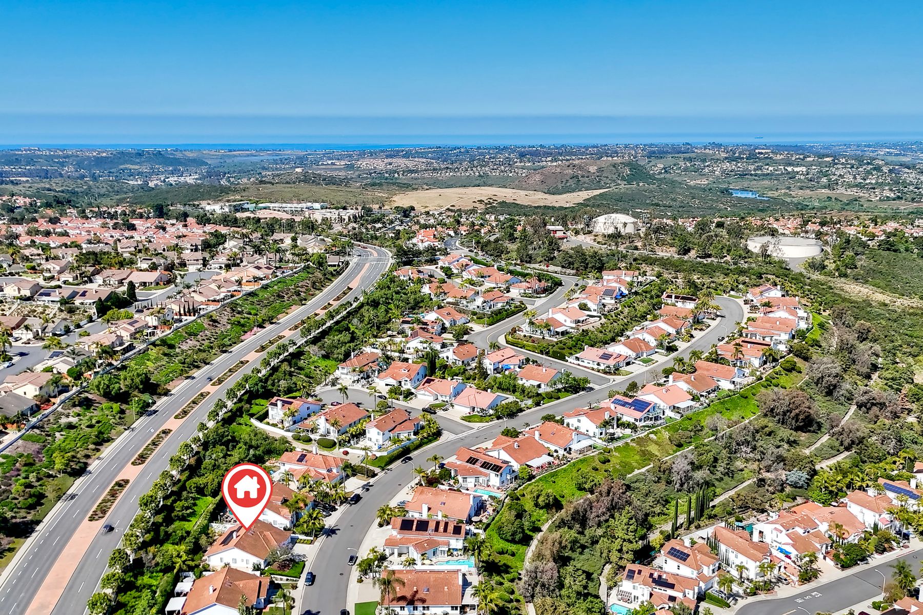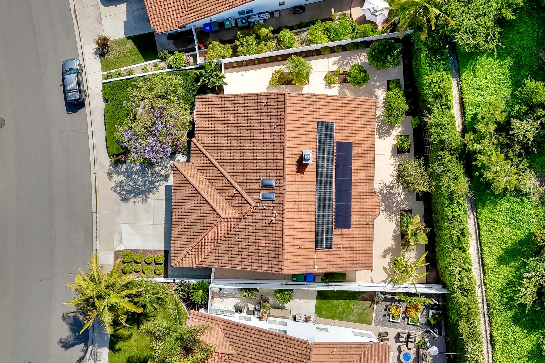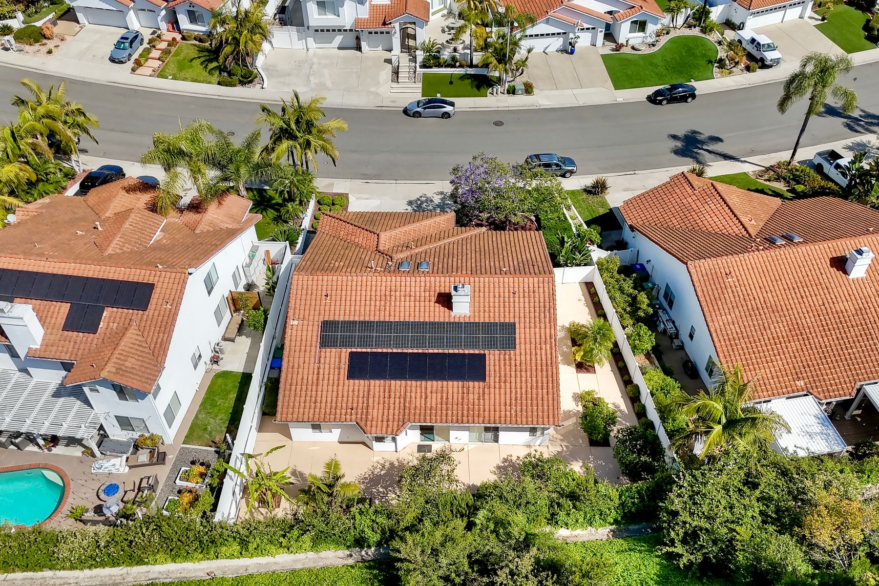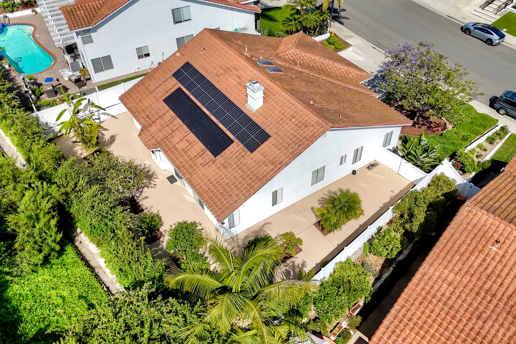 THE SUMMIT at OCEAN HILLS, a highly desirable neighborhood in North Oceanside known for it's Mediterranean style white stucco homes with red tile roofs.* Here is the SINGLE LEVEL home you have been searching for, set on a LARGE LOT with a THREE CAR GARAGE. Enjoy modern, energy efficient living with a fully OWNED and PAID for 18-PANEL SOLAR SYSTEM and TESLA EV CHARGING setup, with BATTERY BACKUP, helping reduce utility costs.* The open-concept layout offers an effortless flow between living spaces, while vaulted ceilings enhance the airy, expansive feel. The living room and dining area connect seamlessly. The dining space is filled with natural light from two skylights. A cozy double-sided fireplace is shared between the dining area and family room.* The kitchen is a bright, galley-style space with a long run of counters on both sides. Generous dark stone counter space is contrasted by a lighter stone surface on the raised bar/peninsula. The overall effect is substantial and durable, with plenty of prep and serving room. Abundant, full-height cabinetry gives the room a clean, classic look and provides ample storage. At the far end of the kitchen is a cozy window nook with a small desk and seating area, set into the bay windows—an ideal spot for casual dining or a workspace, with lots of natural light and view of the rear garden.* The spacious primary ensuite bedroom offers a comfortable retreat, featuring a large walk-in closet and a sliding glass door that opens directly to the rear patio and backyard. You can enjoy privacy on the patio, as there is no neighbor behind the home.* Enjoy the garden’s bounty from mature fruit trees, including two avocado trees plus apricot, fig, and lemon. *Additional features: newer AC, newer hot water tank w/recirculating hot water, reverse osmosis water system, new washing machine, overhead storage racks in garage.* This property offers convenient access to local shopping, dining, parks, hiking trails and major commuter routes while remaining just a short drive from the Oceanside coastline and harbor.