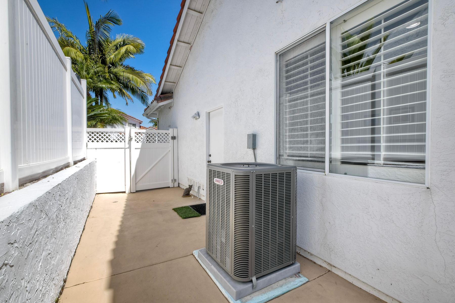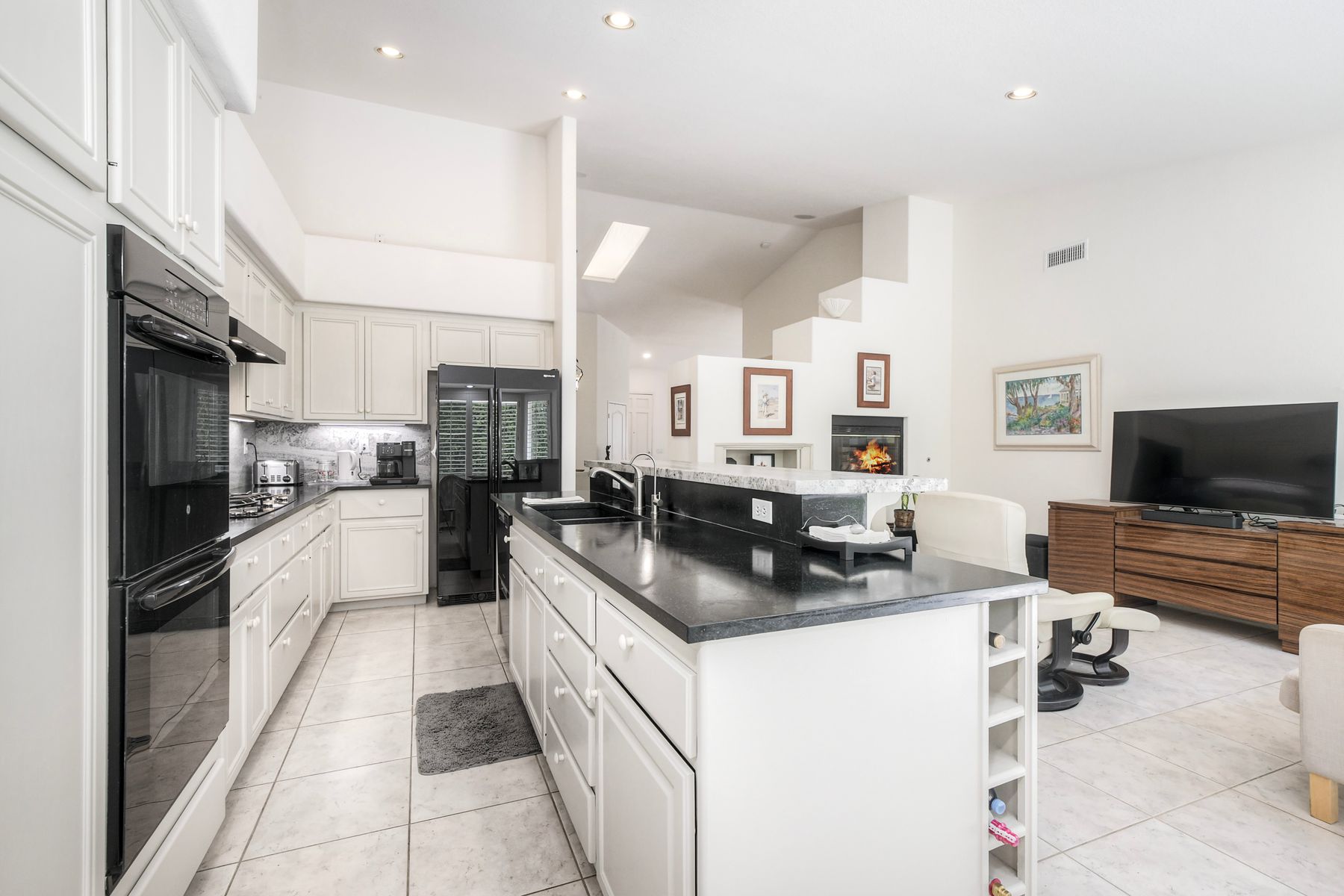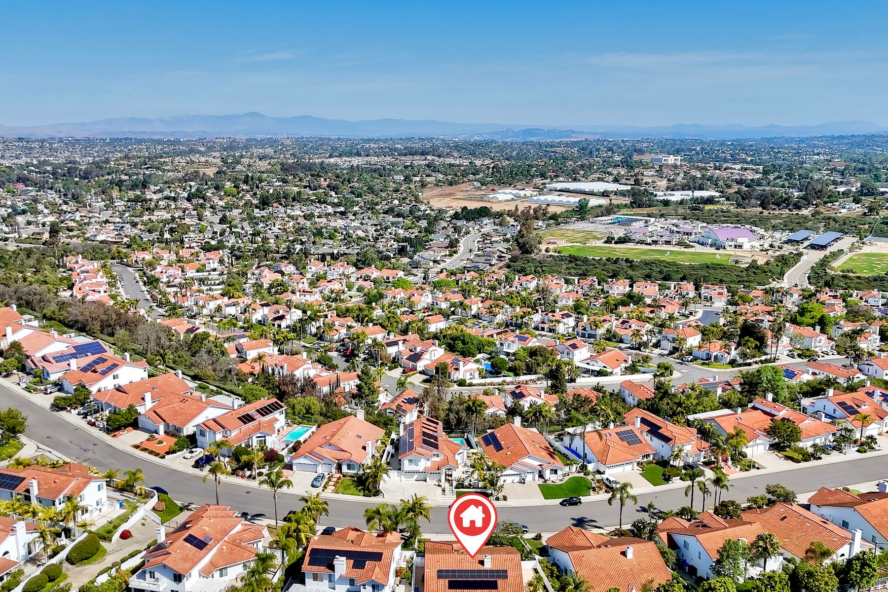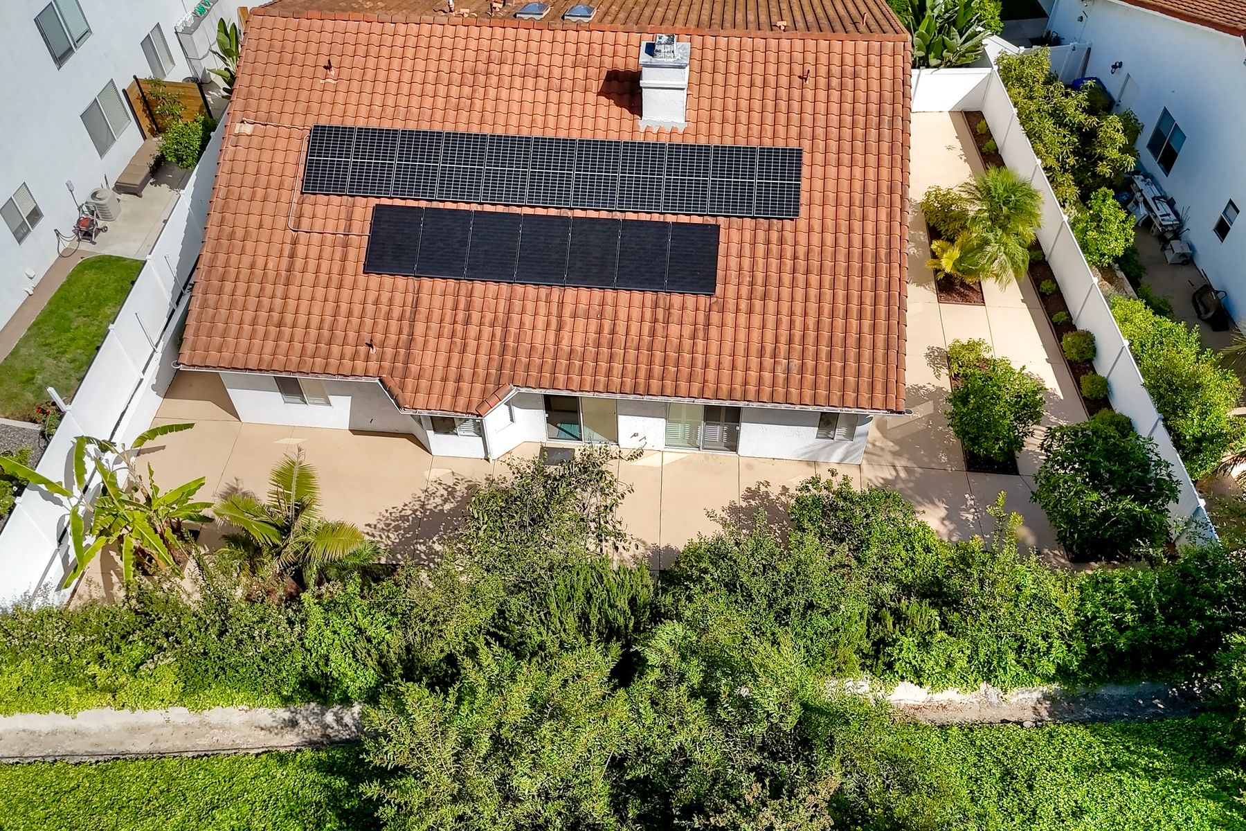 THE SUMMIT at OCEAN HILLS, a highly desirable neighborhood in North Oceanside known for it's Mediterranean style white stucco homes with red tile roofs.* Here is the SINGLE LEVEL home you have been searching for, set on a LARGE LOT with a THREE CAR GARAGE. Enjoy modern, energy efficient living with a fully OWNED and PAID for 18-PANEL SOLAR SYSTEM and TESLA EV CHARGING setup, with BATTERY BACKUP, helping reduce utility costs.* The open-concept layout offers an effortless flow between living spaces, while vaulted ceilings enhance the airy, expansive feel. The living room and dining area connect seamlessly. The dining space is filled with natural light from two skylights. A cozy double-sided fireplace is shared between the dining area and family room.* The kitchen is a bright, galley-style space with a long run of counters on both sides. Generous dark stone counter space is contrasted by a lighter stone surface on the raised bar/peninsula. The overall effect is substantial and durable, with plenty of prep and serving room. Abundant, full-height cabinetry gives the room a clean, classic look and provides ample storage. At the far end of the kitchen is a cozy window nook with a small desk and seating area, set into the bay windows—an ideal spot for casual dining or a workspace, with lots of natural light and view of the rear garden.* The spacious primary ensuite bedroom offers a comfortable retreat, featuring a large walk-in closet and a sliding glass door that opens directly to the rear patio and backyard. You can enjoy privacy on the patio, as there is no neighbor behind the home.* Enjoy the garden’s bounty from mature fruit trees, including two avocado trees plus apricot, fig, and lemon. *Additional features: newer AC, newer hot water tank w/recirculating hot water, reverse osmosis water system, new washing machine, overhead storage racks in garage.* This property offers convenient access to local shopping, dining, parks, hiking trails and major commuter routes while remaining just a short drive from the Oceanside coastline and harbor.