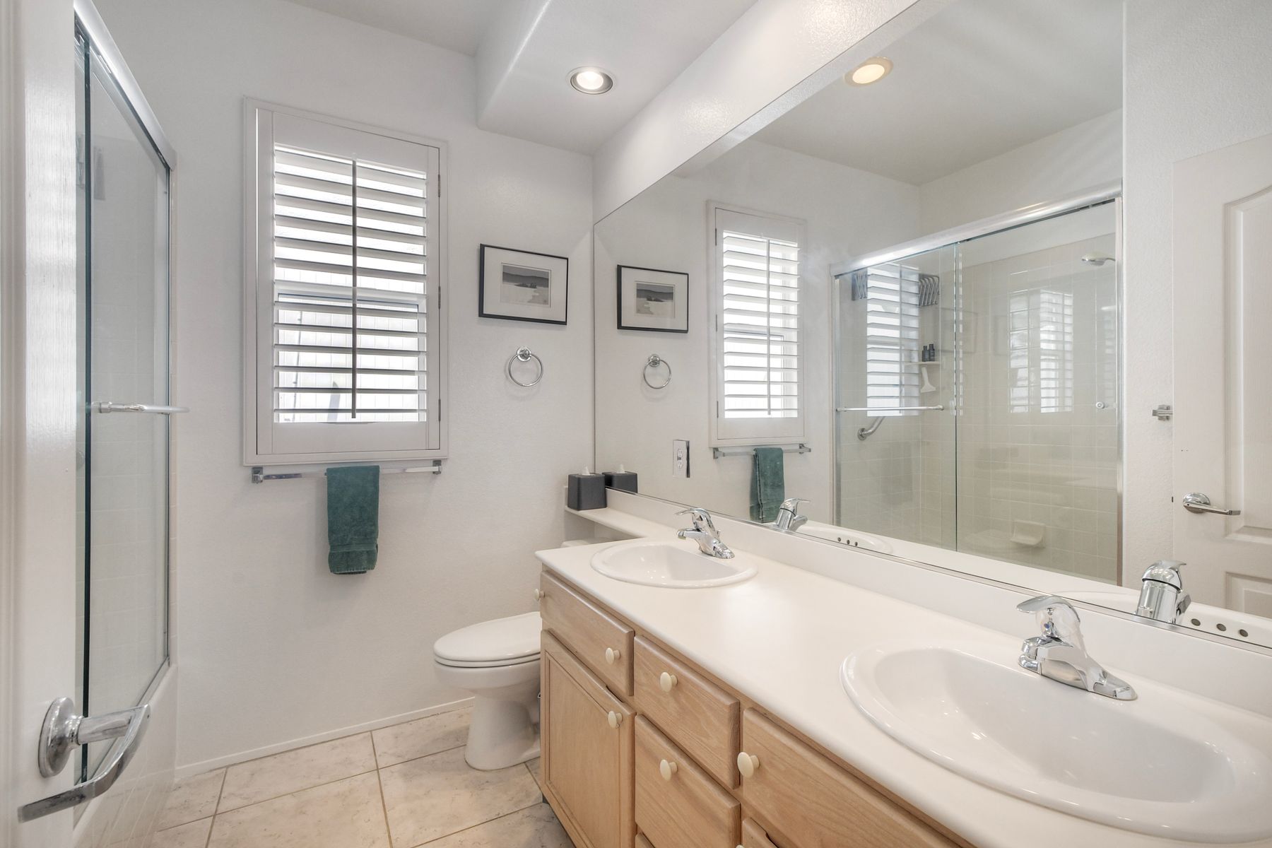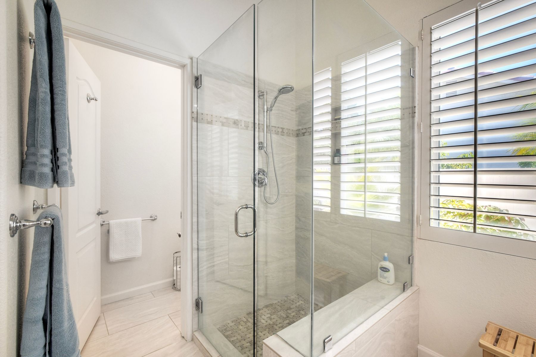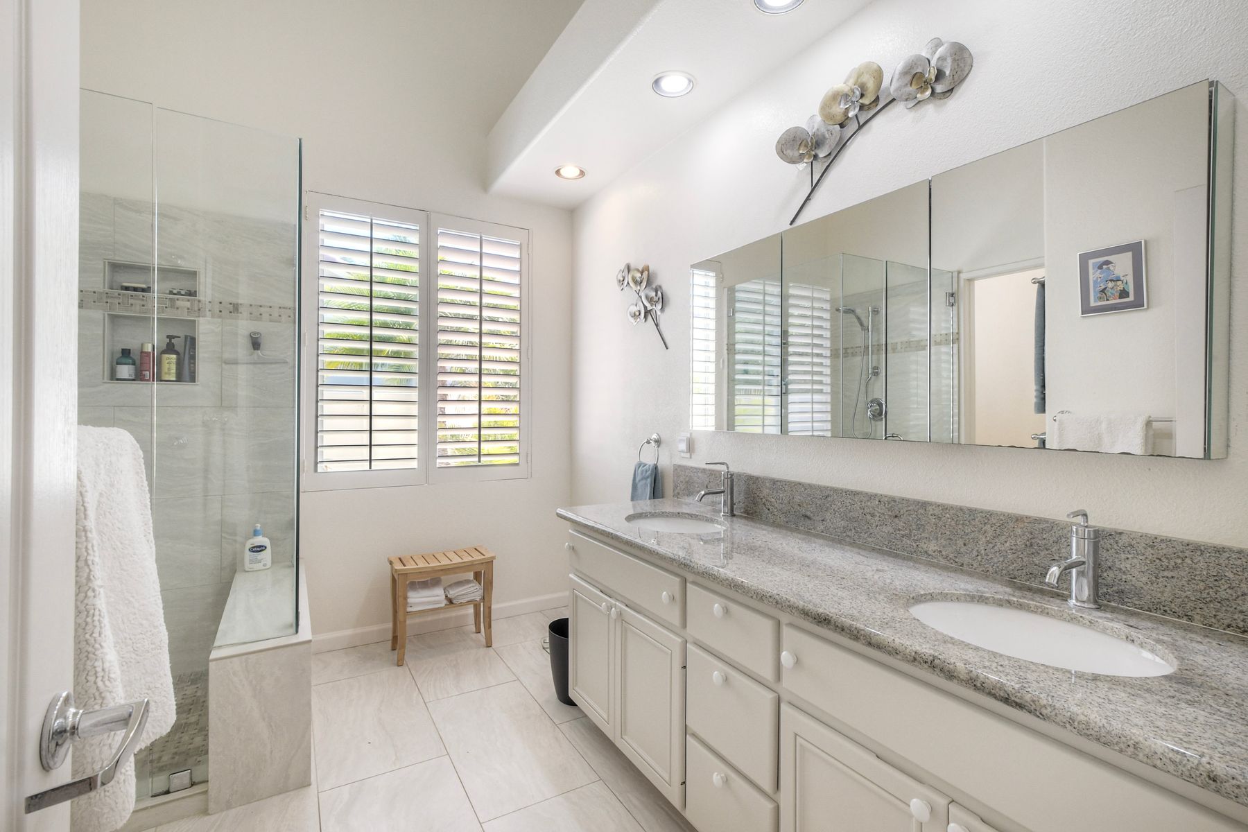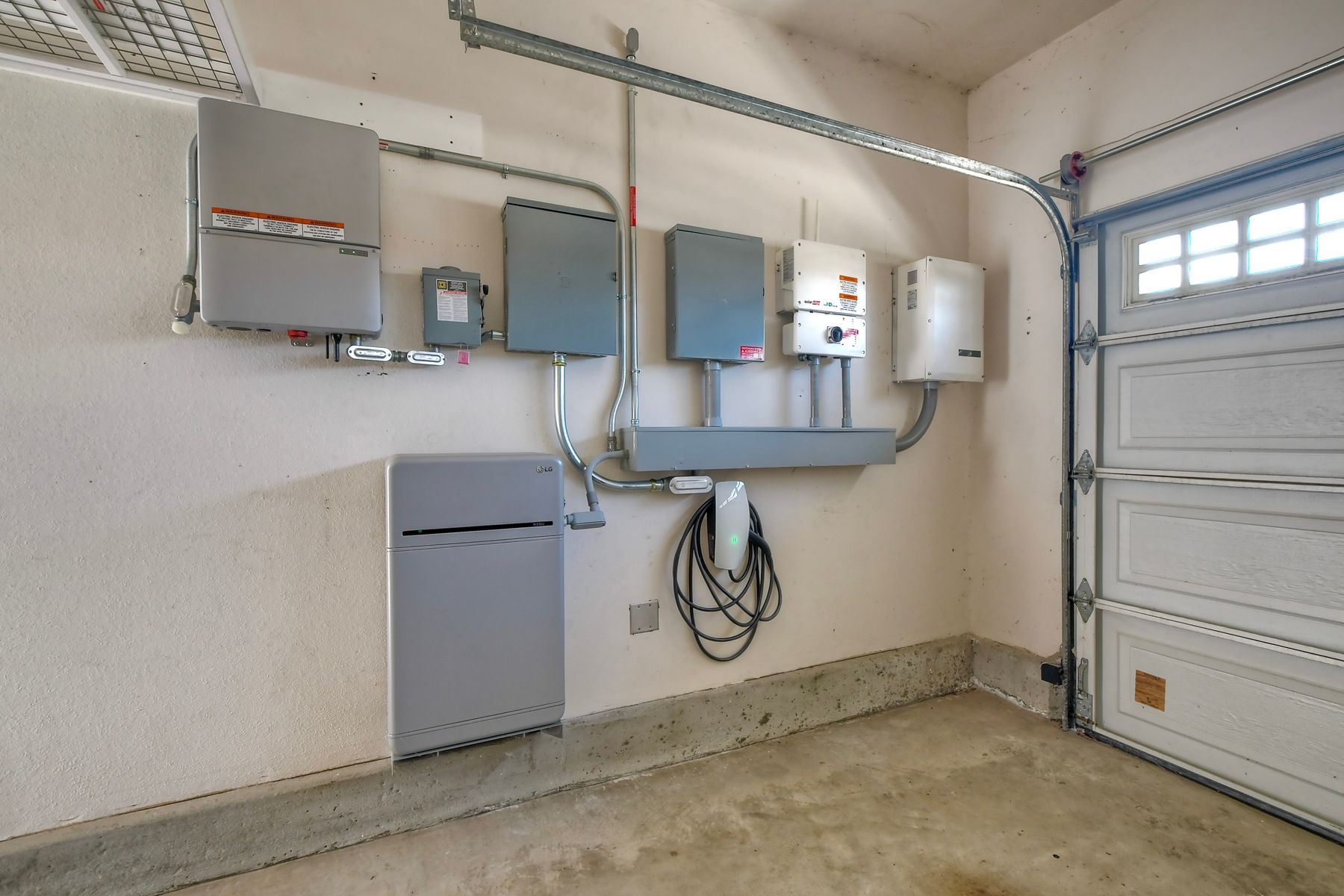 THE SUMMIT at OCEAN HILLS, a highly desirable neighborhood in North Oceanside known for it's Mediterranean style white stucco homes with red tile roofs.* Here is the SINGLE LEVEL home you have been searching for, set on a LARGE LOT with a THREE CAR GARAGE. Enjoy modern, energy efficient living with a fully OWNED and PAID for 18-PANEL SOLAR SYSTEM and TESLA EV CHARGING setup, with BATTERY BACKUP, helping reduce utility costs.* The open-concept layout offers an effortless flow between living spaces, while vaulted ceilings enhance the airy, expansive feel. The living room and dining area connect seamlessly. The dining space is filled with natural light from two skylights. A cozy double-sided fireplace is shared between the dining area and family room.* The kitchen is a bright, galley-style space with a long run of counters on both sides. Generous dark stone counter space is contrasted by a lighter stone surface on the raised bar/peninsula. The overall effect is substantial and durable, with plenty of prep and serving room. Abundant, full-height cabinetry gives the room a clean, classic look and provides ample storage. At the far end of the kitchen is a cozy window nook with a small desk and seating area, set into the bay windows—an ideal spot for casual dining or a workspace, with lots of natural light and view of the rear garden.* The spacious primary ensuite bedroom offers a comfortable retreat, featuring a large walk-in closet and a sliding glass door that opens directly to the rear patio and backyard. You can enjoy privacy on the patio, as there is no neighbor behind the home.* Enjoy the garden’s bounty from mature fruit trees, including two avocado trees plus apricot, fig, and lemon. *Additional features: newer AC, newer hot water tank w/recirculating hot water, reverse osmosis water system, new washing machine, overhead storage racks in garage.* This property offers convenient access to local shopping, dining, parks, hiking trails and major commuter routes while remaining just a short drive from the Oceanside coastline and harbor.