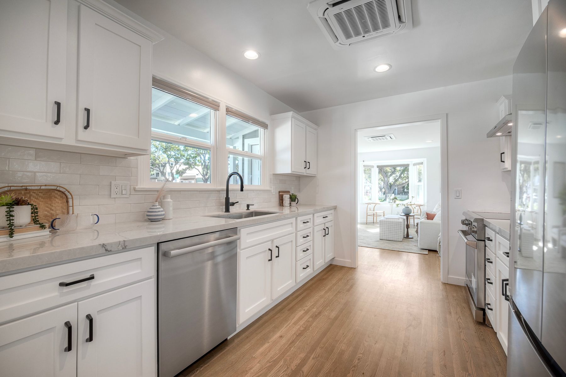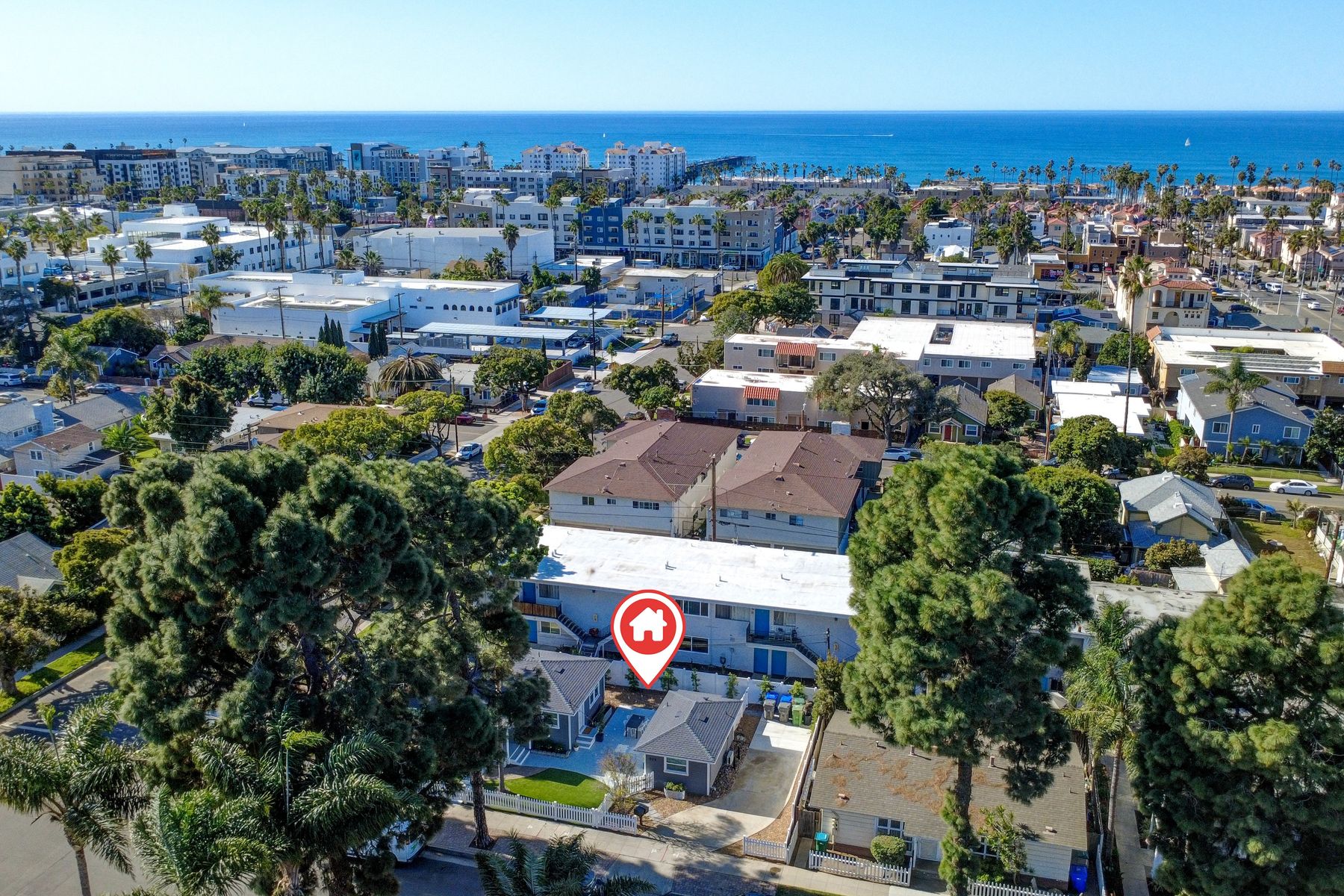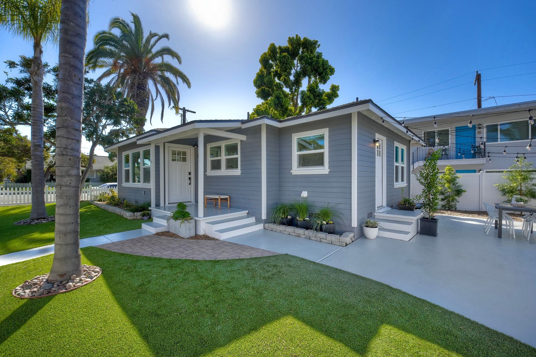 Stunning fully renovated beach home with ADU, ideally situated in the coastal community of Oceanside. This exceptional property is located within walking distance to award-winning beaches, popular dining spots, local markets, and everything this vibrant, up-and-coming neighborhood has to offer. Set on a Spacious Corner Lot along a quaint street, the home features New Vinyl Fencing, Turf, and Drought-tolerant landscaping, creating a private and low-maintenance outdoor space. The property boasts the Only Private Driveway on the block, along with the charm of a mature pomegranate tree, adding both character and curb appeal. Both the main house and the ADU have been extensively upgraded with New Roofs featuring Extended Eaves, along with Updated Electrical, Plumbing, and HVAC systems, including Mini-splits and a Multi-zone heat pump. Additional improvements include Tankless Water Heaters, New Interior and Exterior Paint, Fresh Baseboards, Ceiling Fans, Recessed Lighting, New Windows, and stylish window coverings throughout. The Kitchens have been thoughtfully renovated with new Stainless Steel Appliances and soft-close drawers, while the Bathrooms showcase New Tile Flooring, Modern vanities, Glass surrounds, and updated fixtures. The main house includes its own dedicated laundry room with gas and electric hook-ups, while the ADU offers a space for a full-size electric washer and dryer, providing flexibility for guests, extended family, or rental potential. This beautifully upgraded coastal property offers both lifestyle and versatility—You do not want to miss this one!