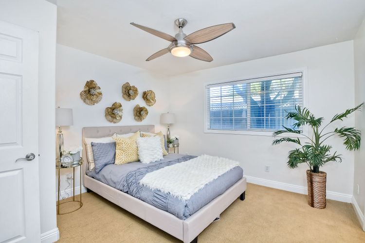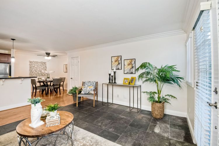 1st floor condo in Las Brisas with large private outdoor space, possibly the largest in the community so great for a dog. French doors open directly to your private yard. Home is freshly painted! Just 2 miles to Oceanside Beaches @ lifeguard Tower 9. Stacked laundry closet in unit and nicely upgraded kitchen. Walk-in closets in both bedrooms. Detached garage is located near unit, and you also get 1 reserved parking spot. HOA fees include use of pool/spa, tennis court, sport court as well as water, sewer & trash. Quick access to all downtown Oceanside has to offer; walk the Oceanside Pier and Strand Beach, loads of fine dining restaurants, and beach access end of the San Luis Rey River Trail.