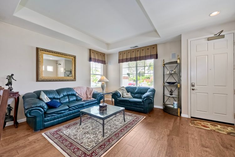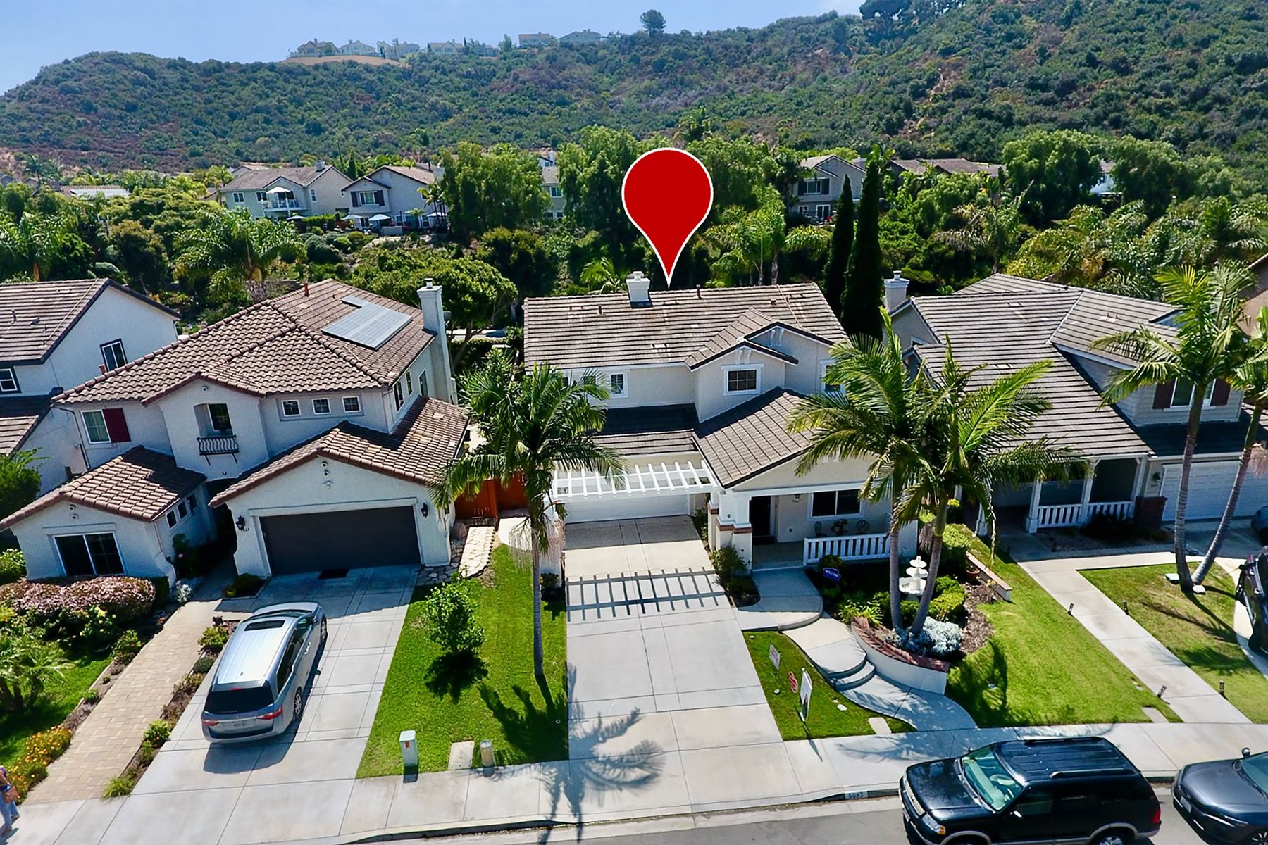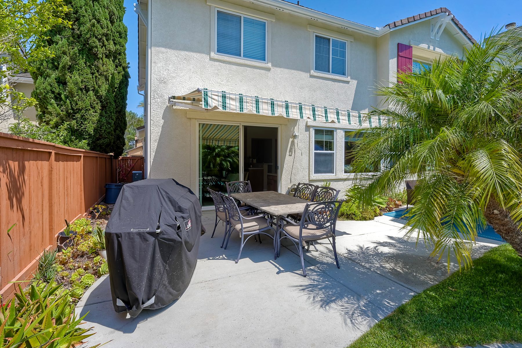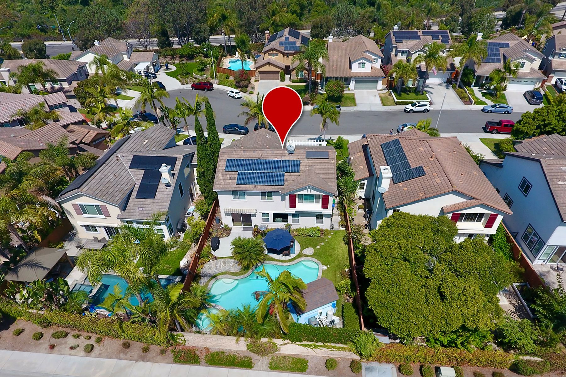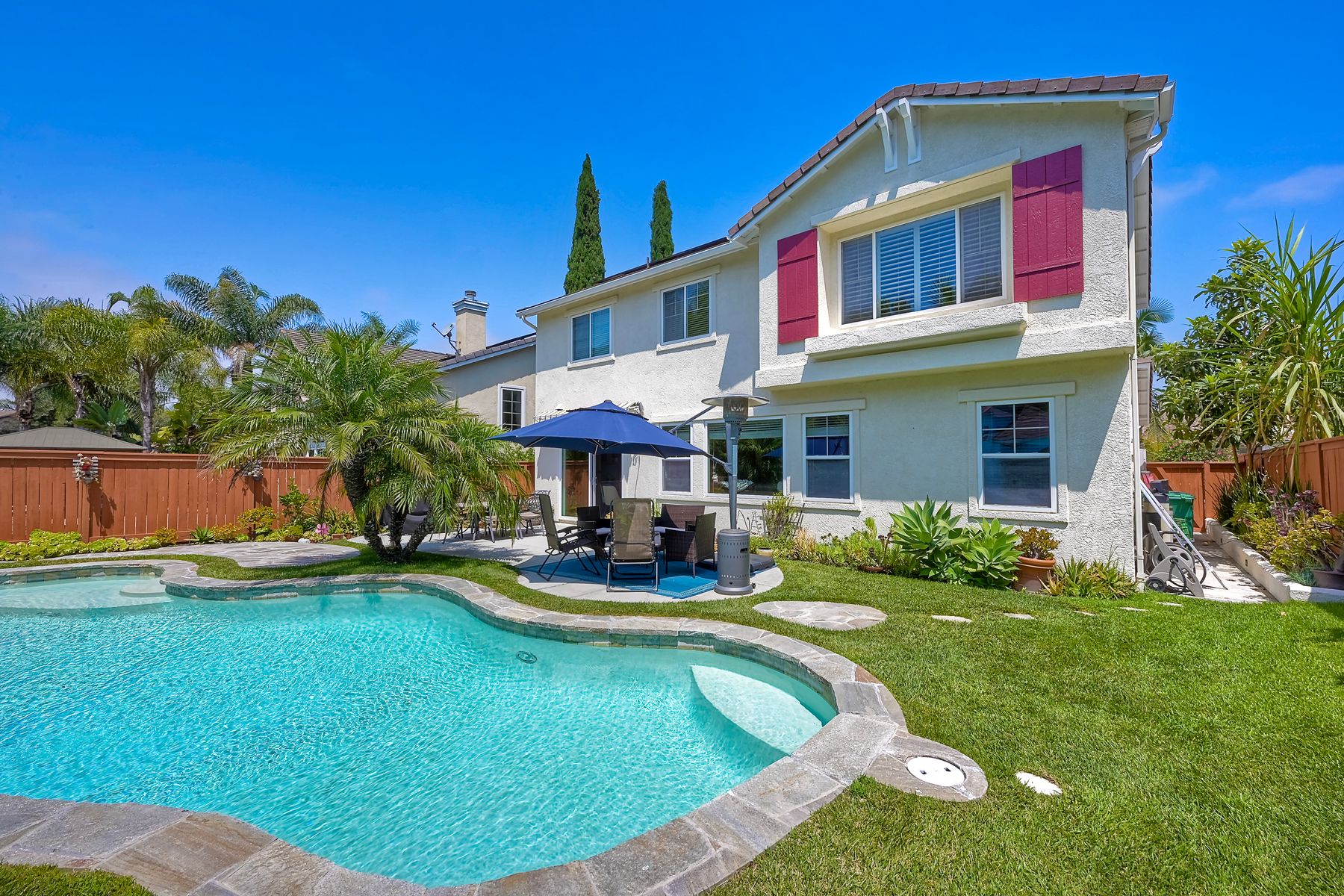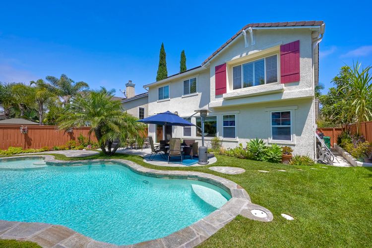 Stunning former model home, original owners. Welcome to this beautifully maintained home. It boasts a range of premium features and modern upgrades, ensuring a luxurious living experience. Enjoy a built-in surround sound system for an immersive audio moment. Equipped with 15 efficient solar panels (PPA)to reduce your energy costs. Benefit from a water softener and reverse osmosis system for pure, clean water. Includes an electric car charger for your convenience. Features gorgeous hardwood floors throughout the home. Unwind in the private Pool and spa, both with colorful sam lights, for those night swims, or just to relax and entertain. Nestled in a quiet and peaceful cul-de-sac street. This move-in ready property includes: 4 bedrooms - all in 2nd story- 2.5 bathrooms with new shower doors, large linens closet, laundry room in 2nd story, washer/dryer included; gas fireplace in family room with media center built-in. Office with two comfortable built-in working stations. Large kitchen with quartz countertops, lots of cabinets and center island. Stainless steel appliances convey, refrigerator, stand-alone range with double gas oven, newer microwave and dishwasher. Butler area with wine cooler. A/C replaced in last 2.5 years; retractable awning in expansive back yard. Mature landscaping with beautiful king palm trees; and lots of succulents! House exterior recently painted. Great condition, super clean, lots of light and very airy. Easy access to freeways, shopping, restaurants, 1.5 miles to Legoland, 3 miles to Carlsbad beaches. School District is one of the high rated ones!
