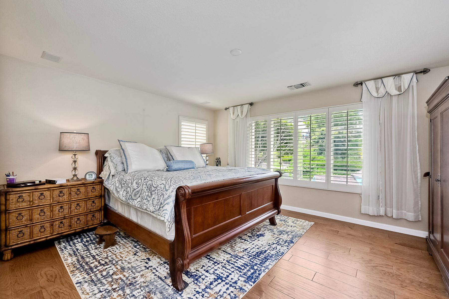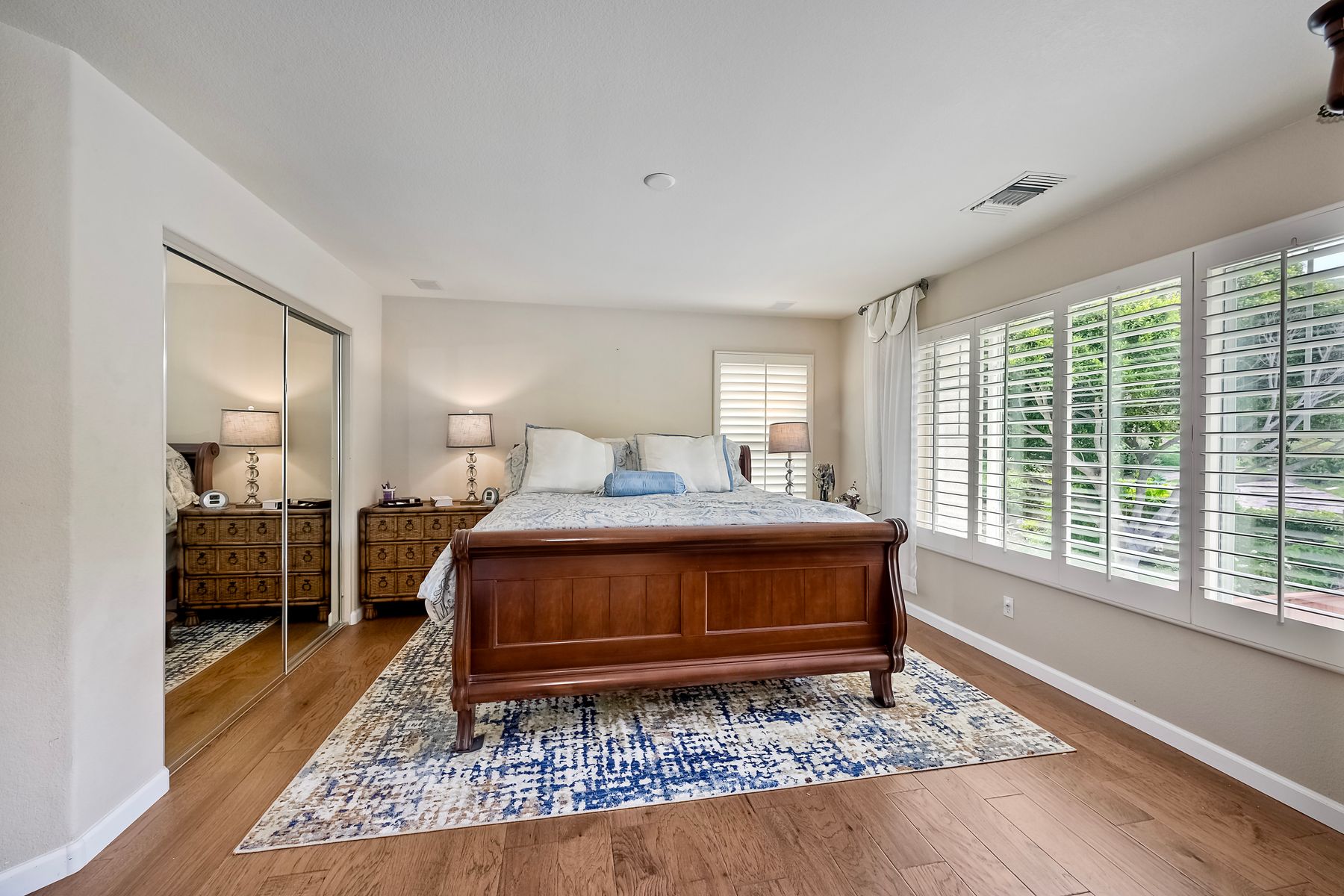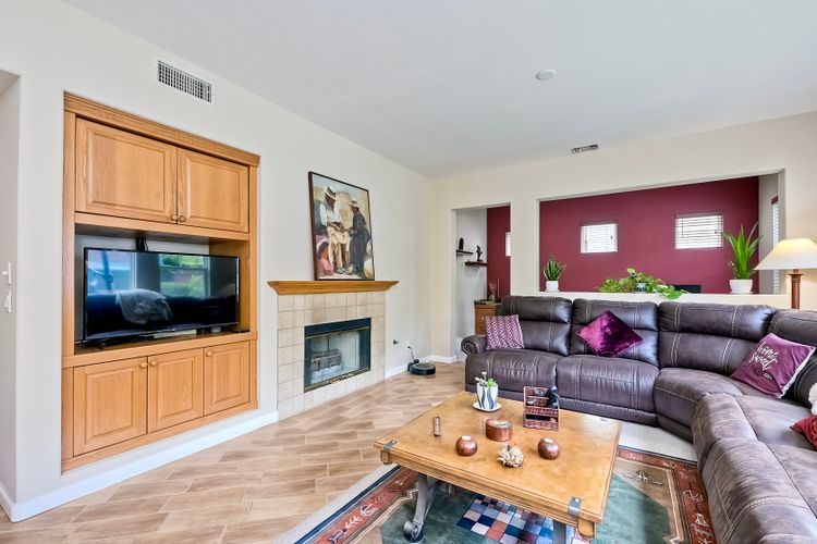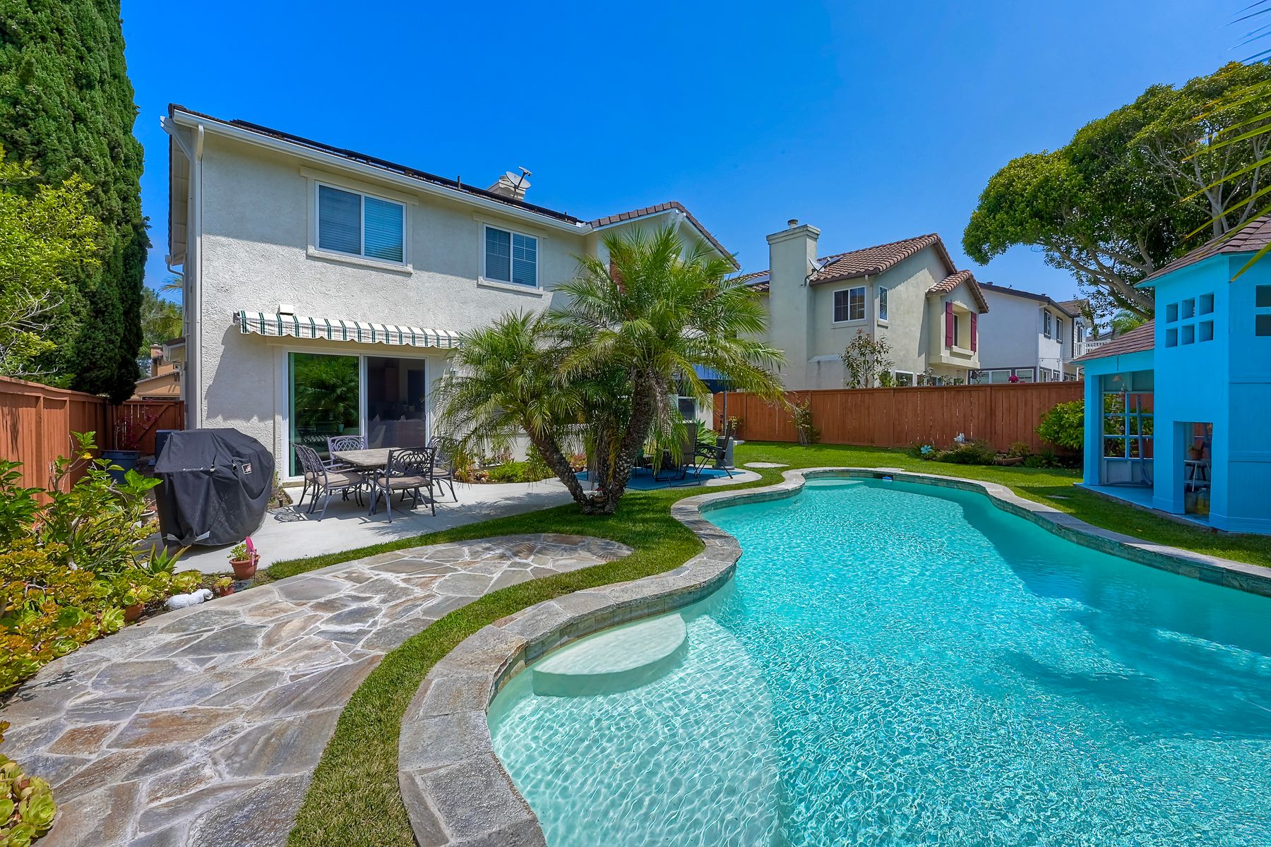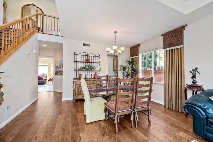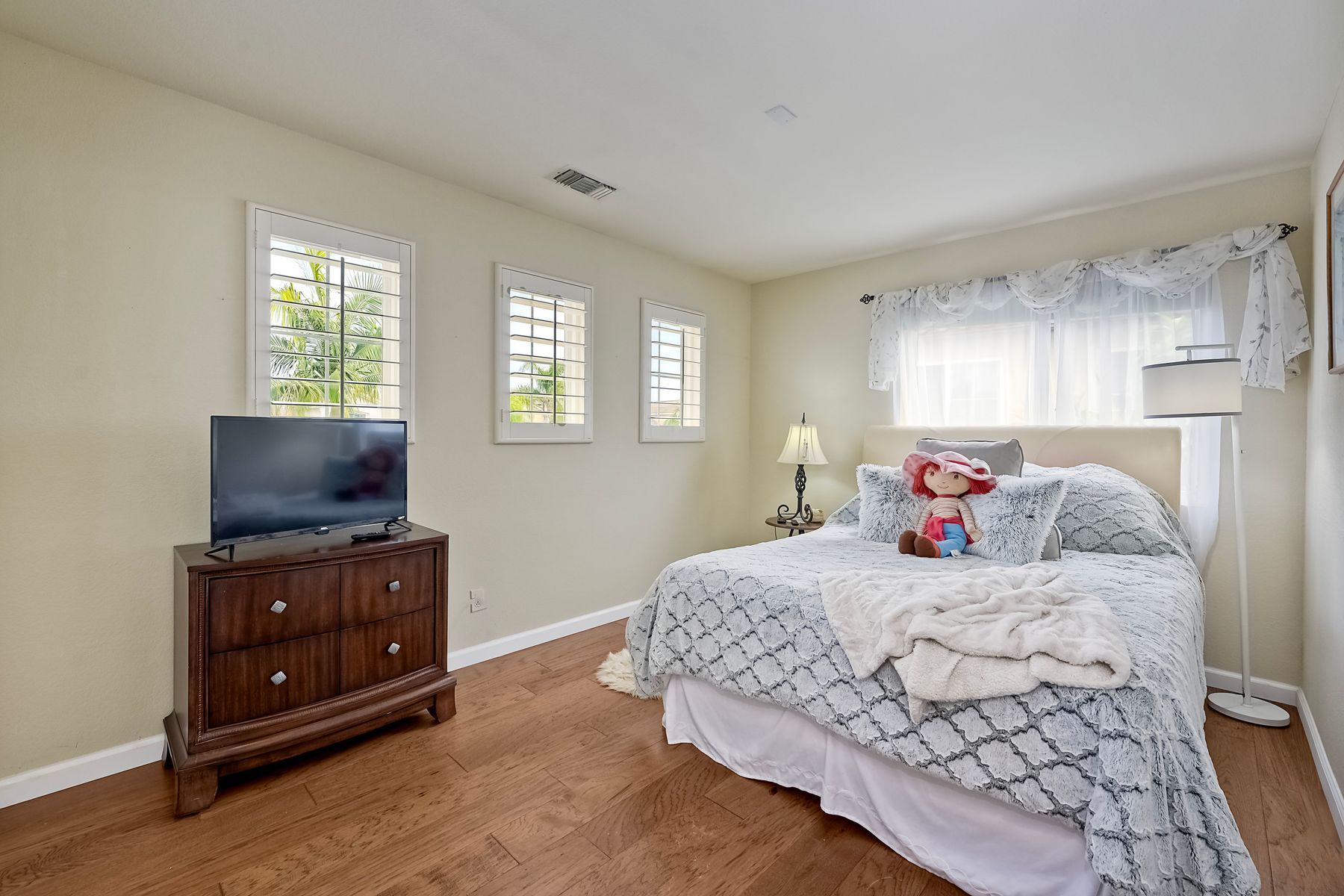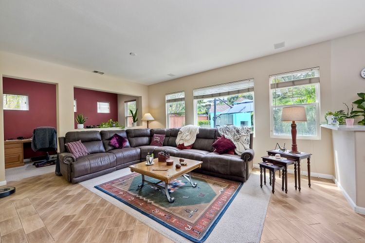 Stunning former model home, original owners. Welcome to this beautifully maintained home. It boasts a range of premium features and modern upgrades, ensuring a luxurious living experience. Enjoy a built-in surround sound system for an immersive audio moment. Equipped with 15 efficient solar panels (PPA)to reduce your energy costs. Benefit from a water softener and reverse osmosis system for pure, clean water. Includes an electric car charger for your convenience. Features gorgeous hardwood floors throughout the home. Unwind in the private Pool and spa, both with colorful sam lights, for those night swims, or just to relax and entertain. Nestled in a quiet and peaceful cul-de-sac street. This move-in ready property includes: 4 bedrooms - all in 2nd story- 2.5 bathrooms with new shower doors, large linens closet, laundry room in 2nd story, washer/dryer included; gas fireplace in family room with media center built-in. Office with two comfortable built-in working stations. Large kitchen with quartz countertops, lots of cabinets and center island. Stainless steel appliances convey, refrigerator, stand-alone range with double gas oven, newer microwave and dishwasher. Butler area with wine cooler. A/C replaced in last 2.5 years; retractable awning in expansive back yard. Mature landscaping with beautiful king palm trees; and lots of succulents! House exterior recently painted. Great condition, super clean, lots of light and very airy. Easy access to freeways, shopping, restaurants, 1.5 miles to Legoland, 3 miles to Carlsbad beaches. School District is one of the high rated ones!
