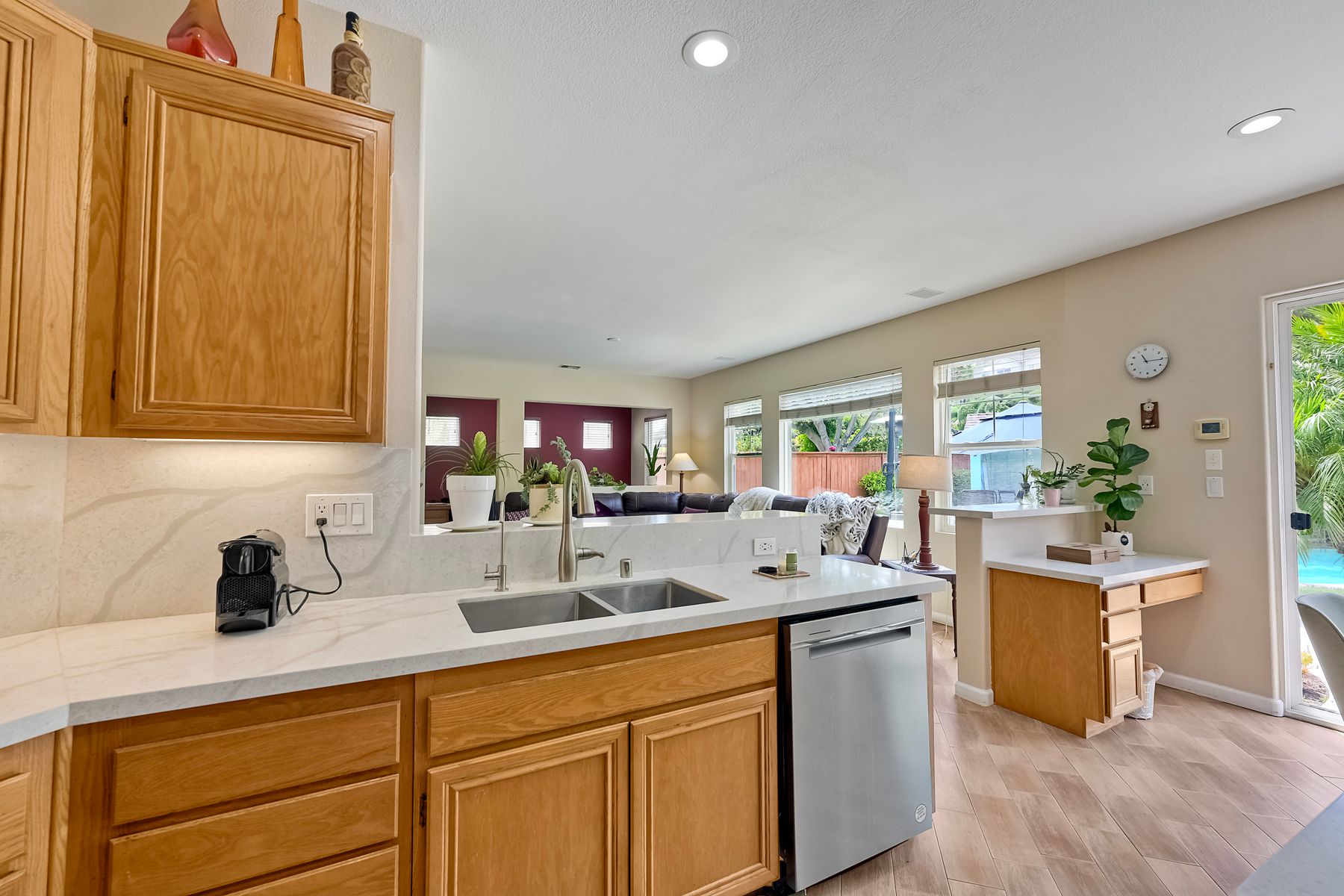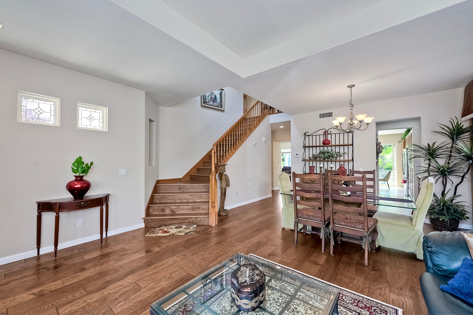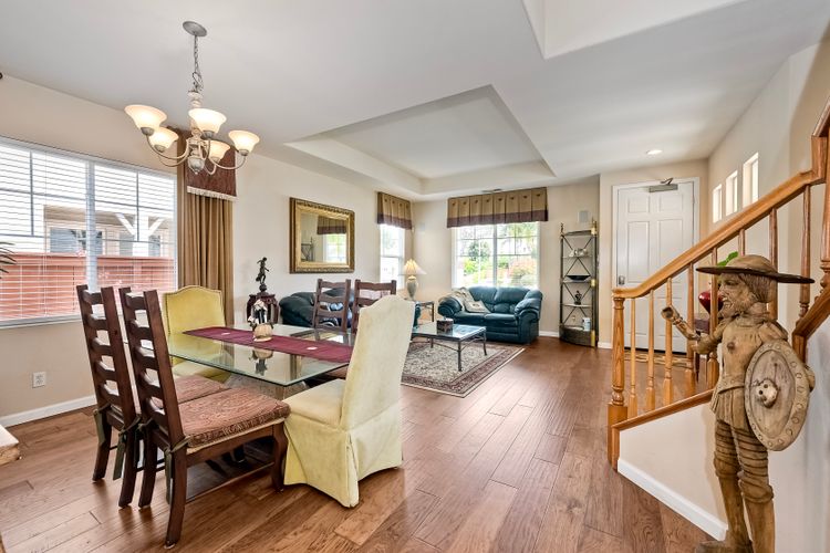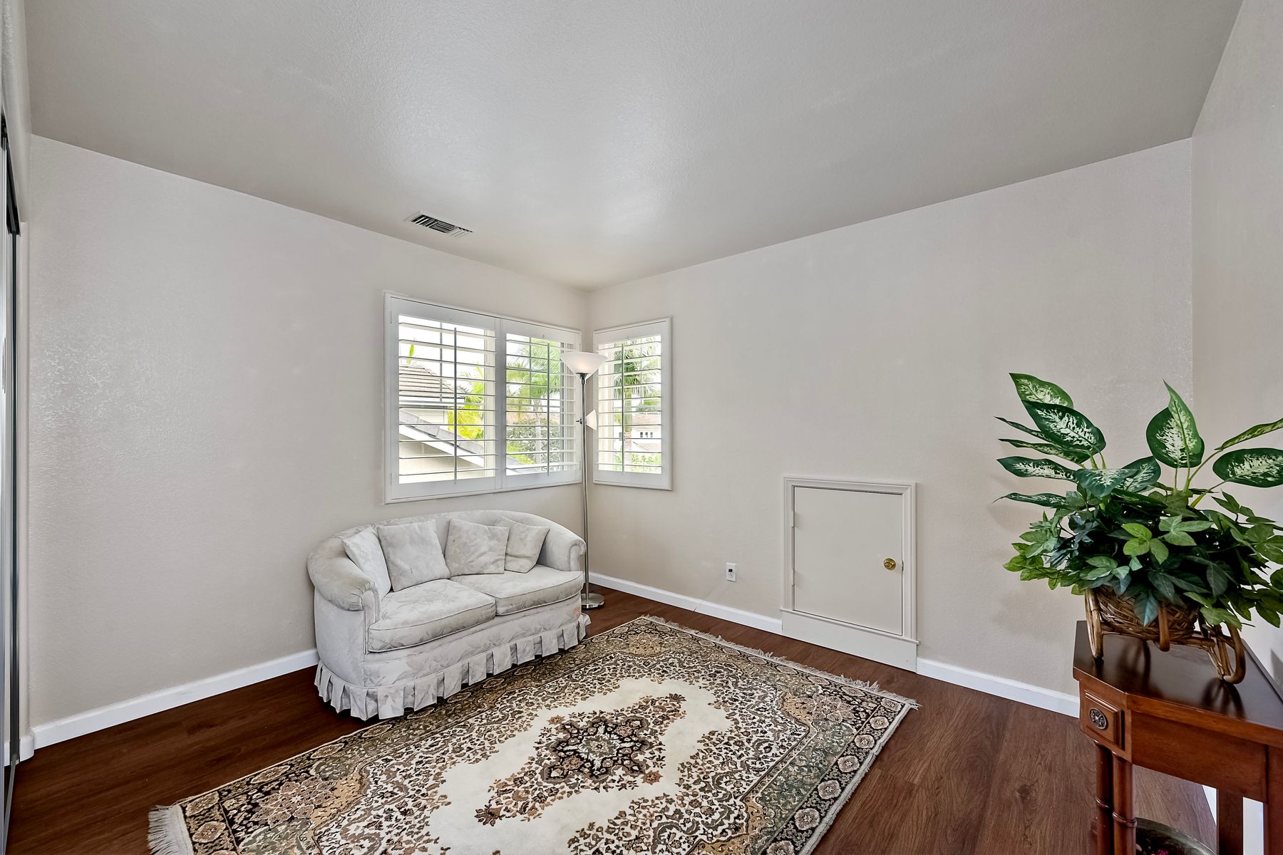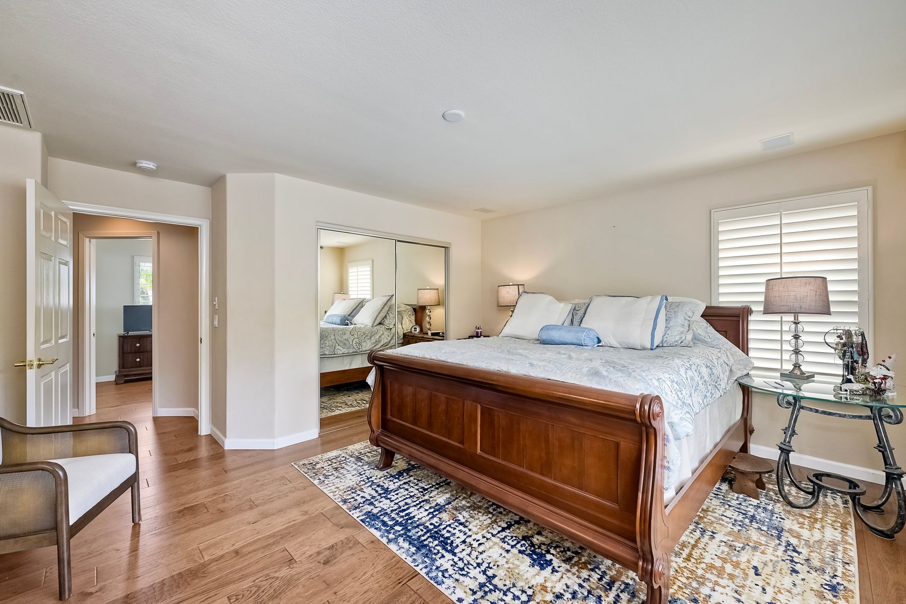 Stunning former model home, original owners. Welcome to this beautifully maintained home. It boasts a range of premium features and modern upgrades, ensuring a luxurious living experience. Enjoy a built-in surround sound system for an immersive audio moment. Equipped with 15 efficient solar panels (PPA)to reduce your energy costs. Benefit from a water softener and reverse osmosis system for pure, clean water. Includes an electric car charger for your convenience. Features gorgeous hardwood floors throughout the home. Unwind in the private Pool and spa, both with colorful sam lights, for those night swims, or just to relax and entertain. Nestled in a quiet and peaceful cul-de-sac street. This move-in ready property includes: 4 bedrooms - all in 2nd story- 2.5 bathrooms with new shower doors, large linens closet, laundry room in 2nd story, washer/dryer included; gas fireplace in family room with media center built-in. Office with two comfortable built-in working stations. Large kitchen with quartz countertops, lots of cabinets and center island. Stainless steel appliances convey, refrigerator, stand-alone range with double gas oven, newer microwave and dishwasher. Butler area with wine cooler. A/C replaced in last 2.5 years; retractable awning in expansive back yard. Mature landscaping with beautiful king palm trees; and lots of succulents! House exterior recently painted. Great condition, super clean, lots of light and very airy. Easy access to freeways, shopping, restaurants, 1.5 miles to Legoland, 3 miles to Carlsbad beaches. School District is one of the high rated ones!