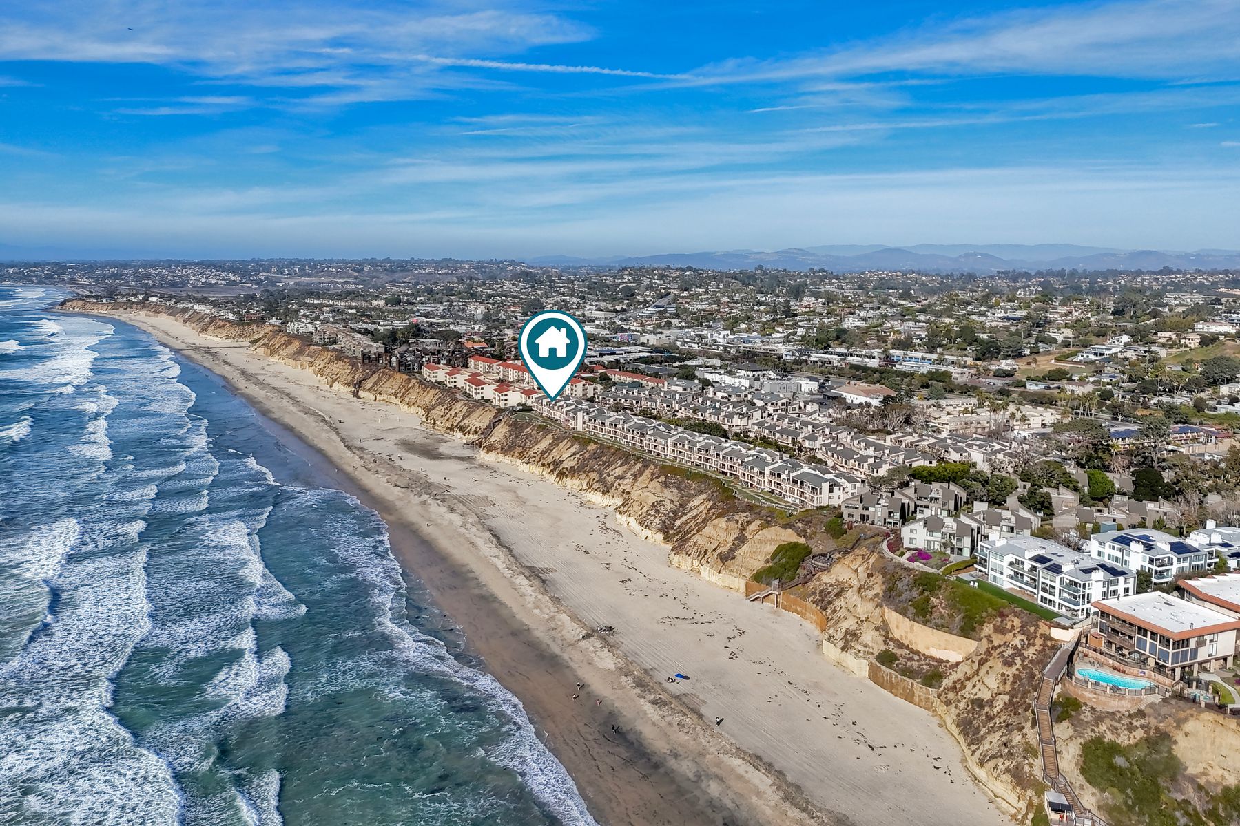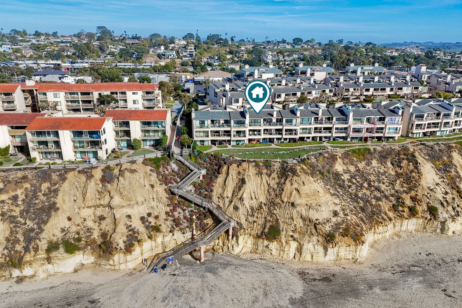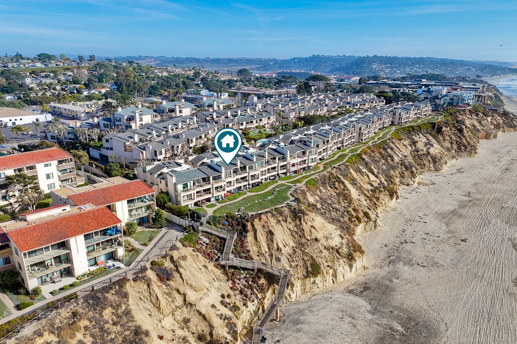 Oceanfront condo at Seascape Sur, perched on a bluff with direct beach access—your chance to own a piece of the coast. Step through the custom front door into a peaceful, inviting living space. Large stacking doors open to a private deck, offering stunning, uninterrupted views of the Pacific Ocean. The design is simple yet sophisticated, featuring high-quality finishes throughout. This home is made for comfort and everyday enjoyment. Relax while enjoying the gorgeous ocean view, prepare meals with premium Wolf, Bosch, and Sub-Zero appliances, or unwind at the modern bar, complete with wine and beverage refrigerators. The main bedroom is spacious and functional, featuring a large closet. The spa-like bathroom is designed with privacy in mind, making it a perfect retreat, and includes luxurious towel warmer. The second bedroom opens to a cozy courtyard, ideal for guests or a flexible home office. Enjoy the Southern California beach lifestyle with ease. The condo includes two parking spaces and extra storage for bikes and surfboards—perfect for an active lifestyle. The gated Seascape Sur community offers fantastic amenities, including two pools, tennis courts, a clubhouse, BBQ areas, and beautifully maintained landscaping. Located just a short walk from the Cedros District’s shops and restaurants, this home combines the best of coastal living with convenience.
