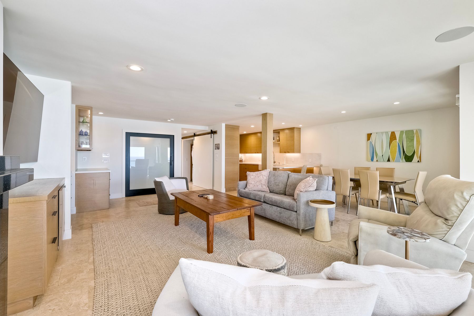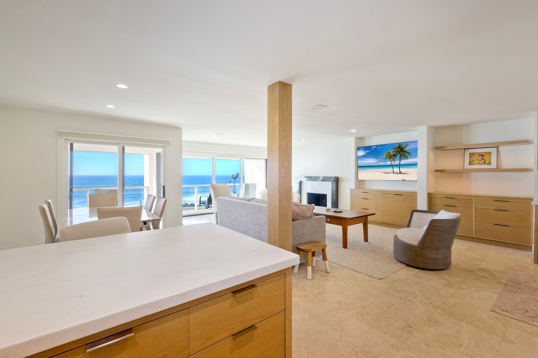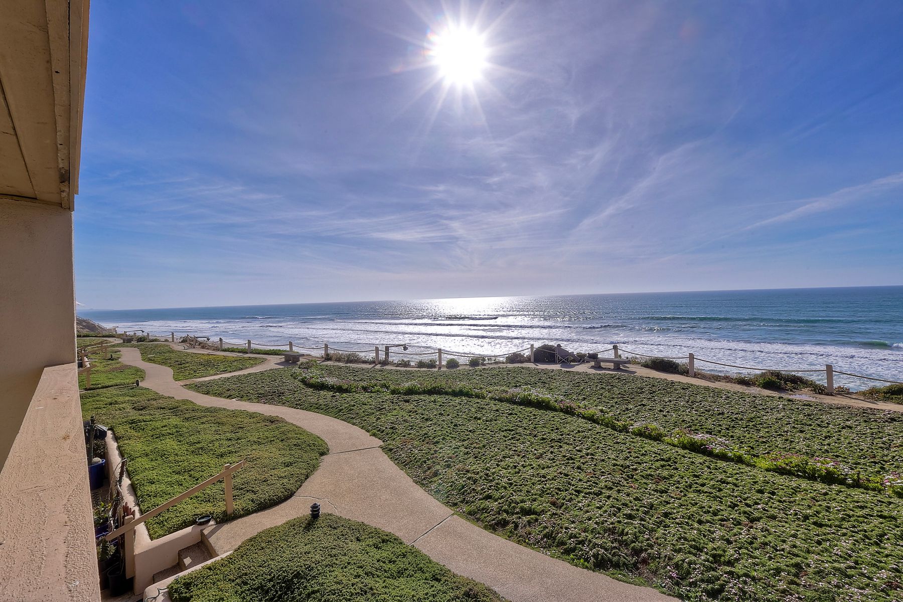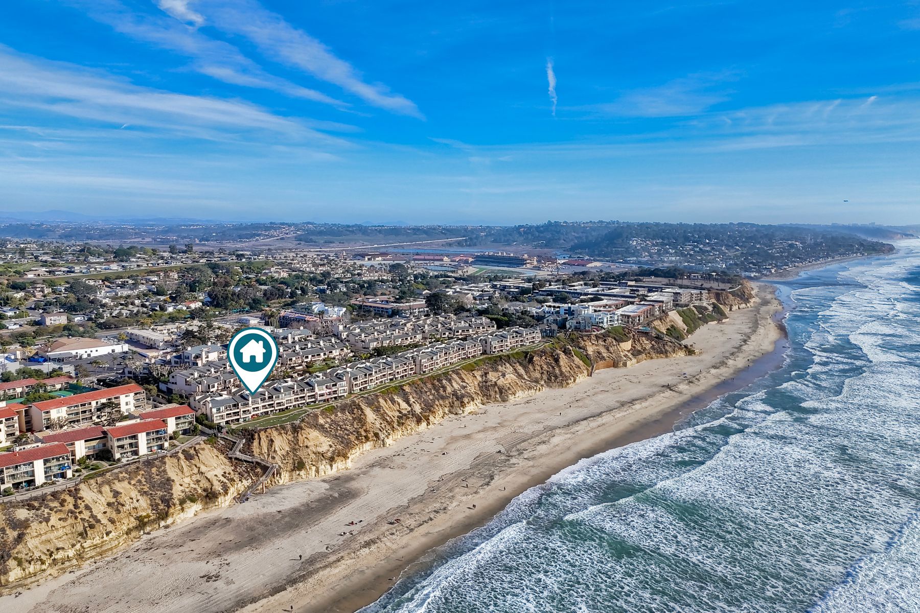 Oceanfront condo at Seascape Sur, perched on a bluff with direct beach access—your chance to own a piece of the coast. Step through the custom front door into a peaceful, inviting living space. Large stacking doors open to a private deck, offering stunning, uninterrupted views of the Pacific Ocean. The design is simple yet sophisticated, featuring high-quality finishes throughout. This home is made for comfort and everyday enjoyment. Relax while enjoying the gorgeous ocean view, prepare meals with premium Wolf, Bosch, and Sub-Zero appliances, or unwind at the modern bar, complete with wine and beverage refrigerators. The main bedroom is spacious and functional, featuring a large closet. The spa-like bathroom is designed with privacy in mind, making it a perfect retreat, and includes luxurious towel warmer. The second bedroom opens to a cozy courtyard, ideal for guests or a flexible home office. Enjoy the Southern California beach lifestyle with ease. The condo includes two parking spaces and extra storage for bikes and surfboards—perfect for an active lifestyle. The gated Seascape Sur community offers fantastic amenities, including two pools, tennis courts, a clubhouse, BBQ areas, and beautifully maintained landscaping. Located just a short walk from the Cedros District’s shops and restaurants, this home combines the best of coastal living with convenience.