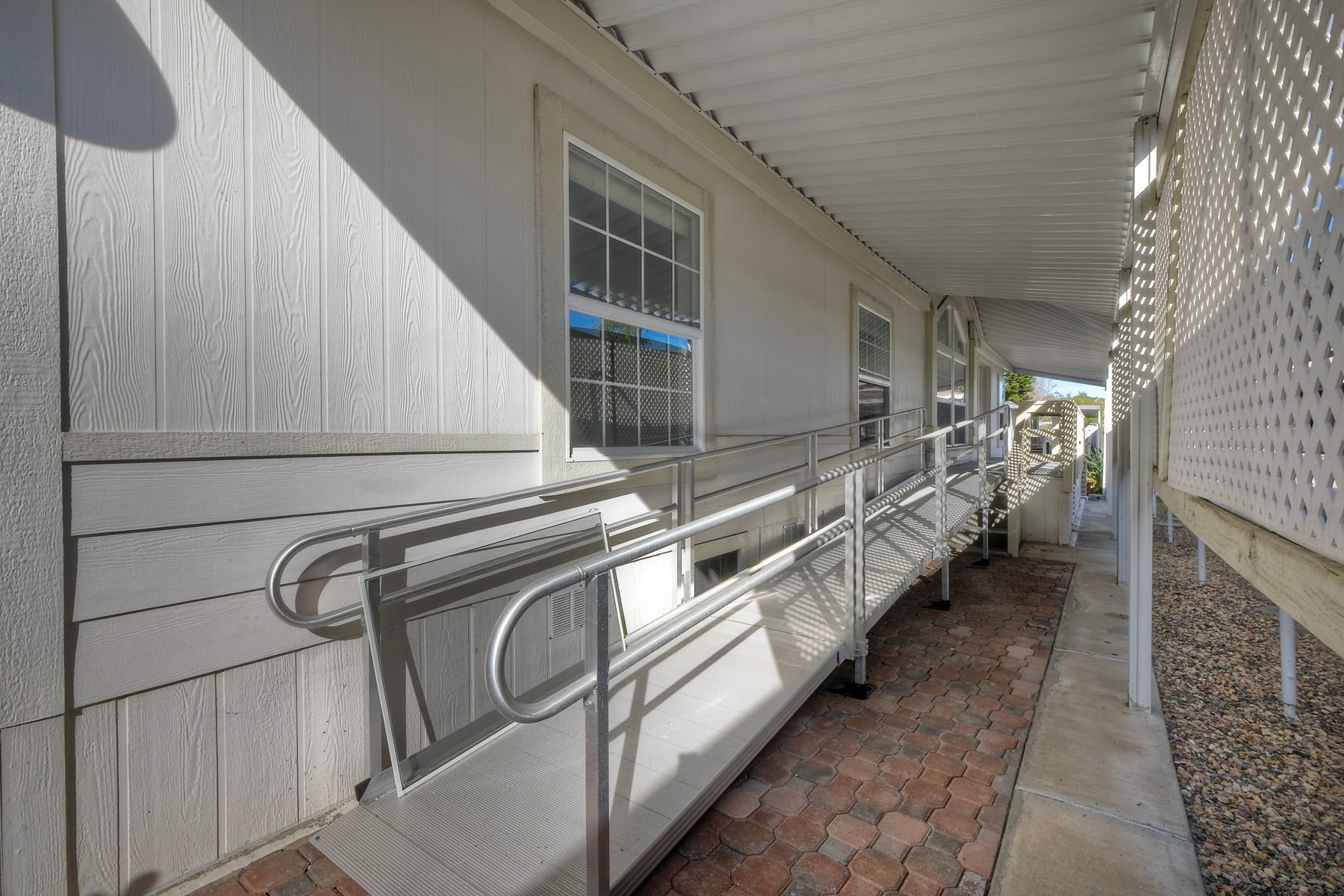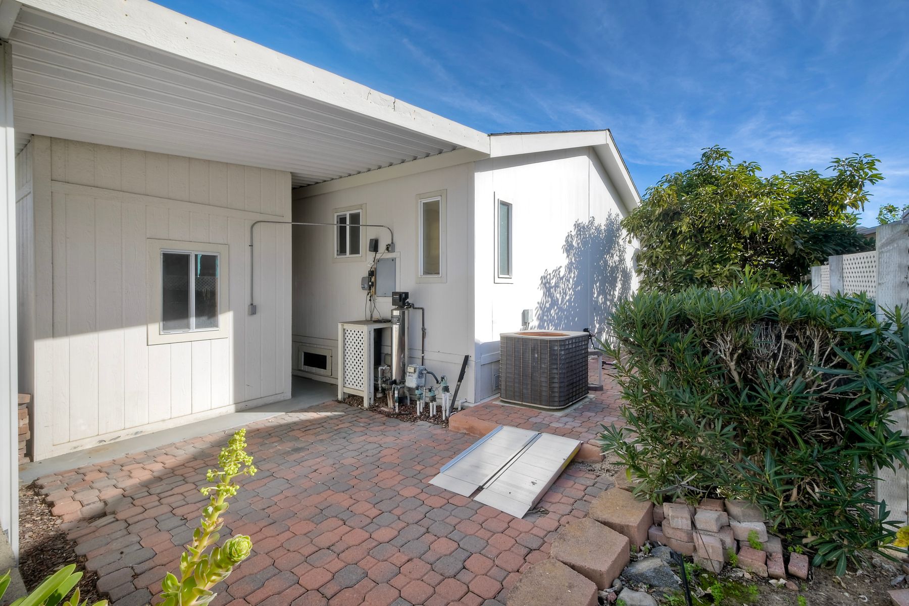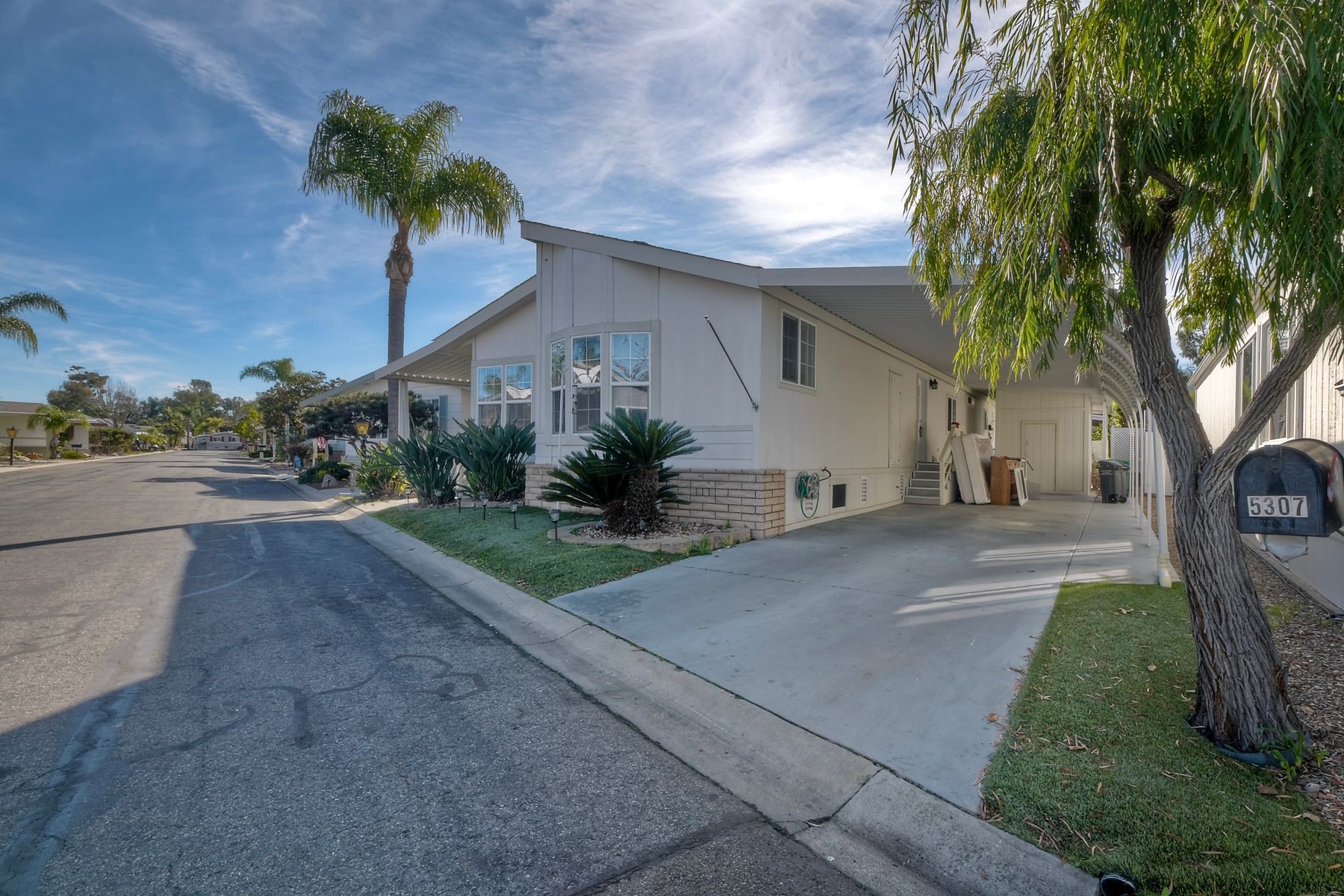 Welcome to resort-style living in this desirable 55+ land-owned manufactured home community in Carlsbad. This beautifully maintained home features brand new vinyl flooring throughout, central A/C, and a wheelchair accessible front entry ramp, offering both comfort and accessibility. The thoughtfully designed floor plan includes a bright kitchen with quartz countertops, white cabinetry, a cozy breakfast nook and a separate formal dining room, ideal for entertaining or everyday living. Recent upgrades add peace of mind, including a new furnace (2024), new dishwasher (2025) and updated copper plumbing throughout. The home includes a RING security system on windows and doors, which conveys with the sale. The refrigerator, wash and dryer are also included. The backyard boasts lemon and Haas avocado trees with automatic sprinklers. The primary bathroom offers a spa-like retreat with a walk-in jacuzzi tub featuring a seat warmer, backed by a transferable lifetime warranty. Residents enjoy an array of amenities to include lake, golf course, clubhouse, pickleball and more along with common RV parking. This is a wonderful opportunity to own a highly upgraded home in one of Carlsbad's most popular 55+ communities where comfort, convenience, and lifestyle come together.
