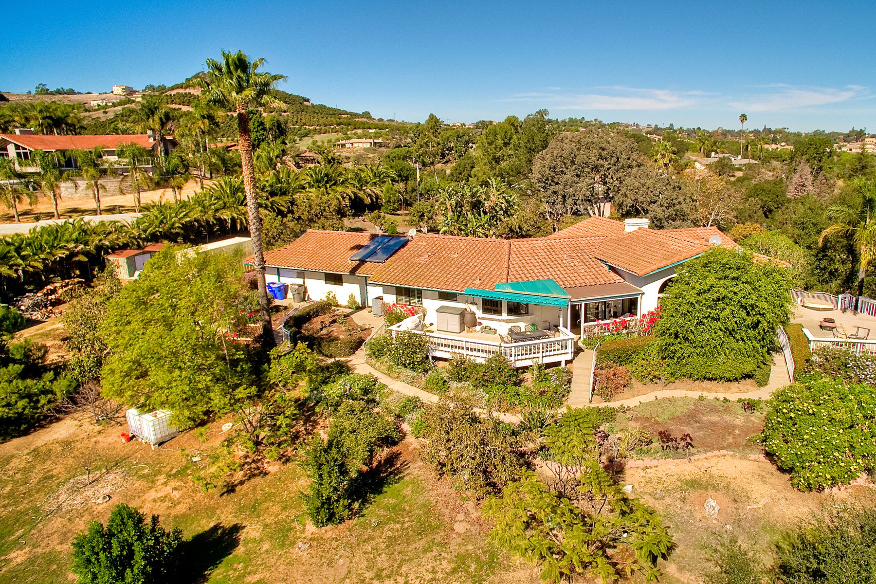 Welcome to the gated community of Hill Ranch. This 4 Bedroom, 2 bathroom 2132 SF single story home sits on a fully useable & gated 2.5 acre lot. Located in the highly sought after Bonsall school district, 7 miles from Downtown Fallbrook, and just 13 miles from the Ocean, this is the perfect family home! Pull up a chair on the large wrap around deck w/ amazing views showcasing the large back portion of the property that is just waiting for a Pool, horses & a Barn. RV parking w/ hookup's and a 3 car garage