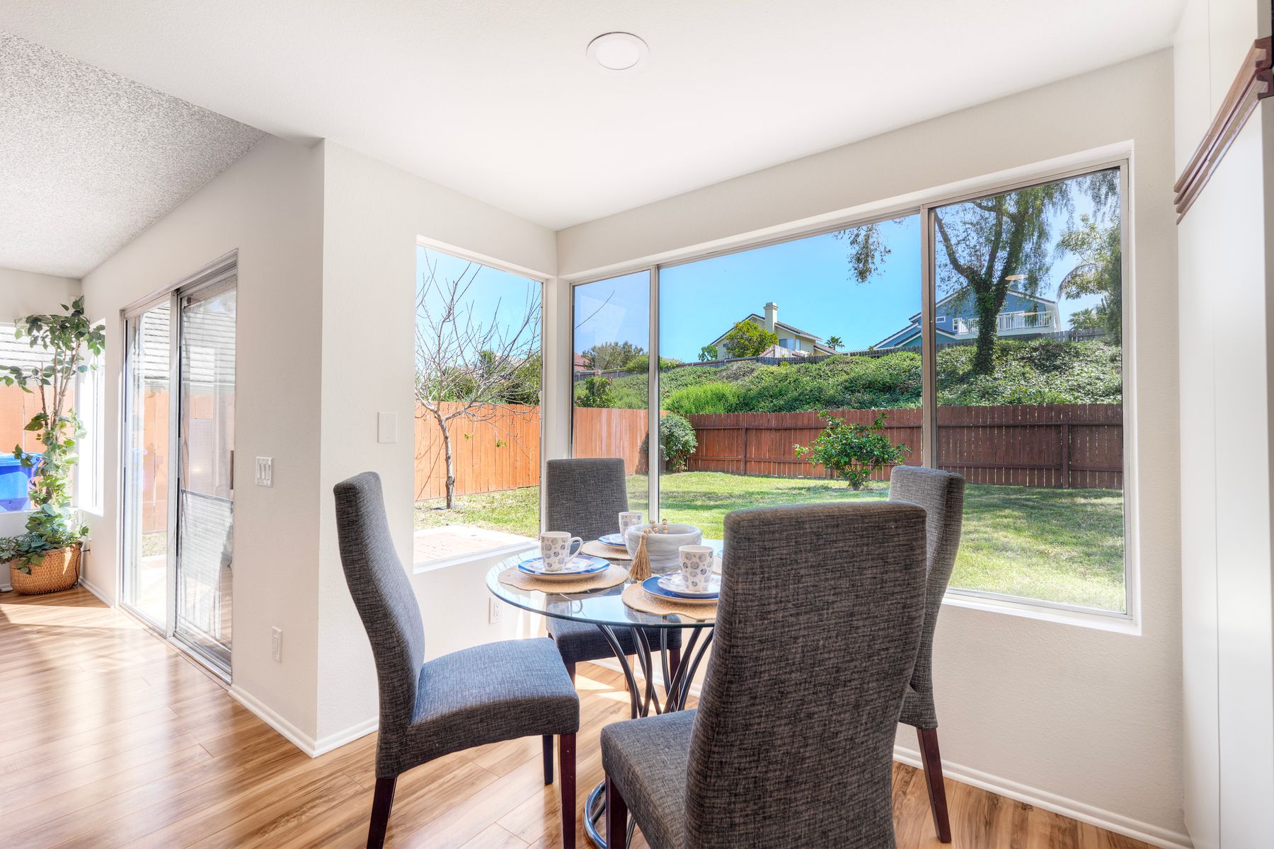Welcome to the highly sought after Lakeview Estates, where comfort, convenience, and coastal living come together beautifully. This home features a freshly painted exterior and a well-designed interior with laminate and tile flooring throughout, complemented by brand new carpet in the bedrooms. The upgraded kitchen shines with quartz countertops and stylish pendant lighting, creating a perfect space for both everyday living and entertaining. An oversized two car garage offers ample storage and functionality. Ideally located within the community, you're just moments from the pool and spa, tot lot and picnic area along with multiple parks throughout the neighborhood. Enjoy easy access to nearly Guajome Park, featuring scenic walking and hiking trails- even equestrian paths and take advantage of the nearby bike path that leads to the ocean. Experience San Diego's incredible year-round climate while being just 8 miles from the coast. Conveniently located near shopping, hospitals, medical offices and golf courses, this home truly offers the best lifestyle and location. Low HOA of $228/month provides access to a wide range of amenities.