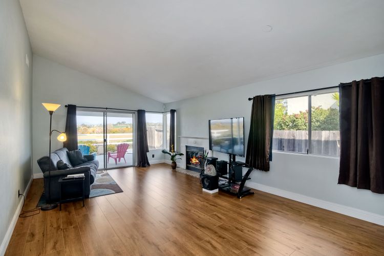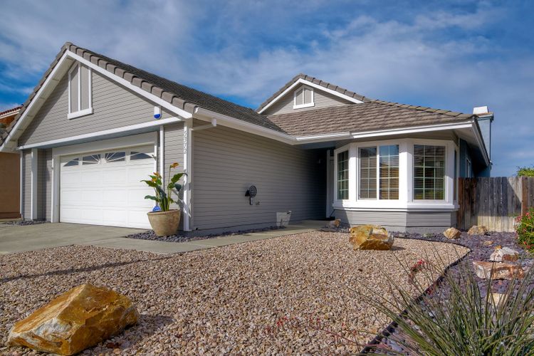 Come see this cozy 1 story home with panoramic views.No neighbor behind.You won't want to leave the backyard upon seeing the gorgeous sunsets & open space with views of Sleeping Indian. Kitchen is upgraded with granite counter, all appliances are stainless steel & new dishwasher installed Jan 2019. Beautiful laminate floors. Master bath has jacuzzi tub/shower combo newer mirrors, vanity & lighting & view.Ceiling fans throughout. Alarm system & water softener are owned. 8 miles to ocean, ride to bike path. Stainless steel refrigerator, front load washer & dryer convey. Property has cathedral ceilings, wide baseboards, neutral paint. Bathroom in hallway has newer vanity, lights, mirror. Sliders lead to backyard through living room & master bedroom. Exterior painted in 2017. Yard is low maintenance, drought tolerant plants. 220V in garage. New A/C & furnace purchased April 2016, Water Heater Dec 2017 & insulation added to attic in 2017. Backyard has 2 patio covers. Community has pool, jacuzzi, several mini parks throughout the development. Walk to Guajome Park, ride to bike path around the corner which takes you all the way to the beach, lots of walking trails nearby. Walking distance to Mission Vista High School. Shopping, restaurants, gyms, golf courses, Dr offices, hospital close by.