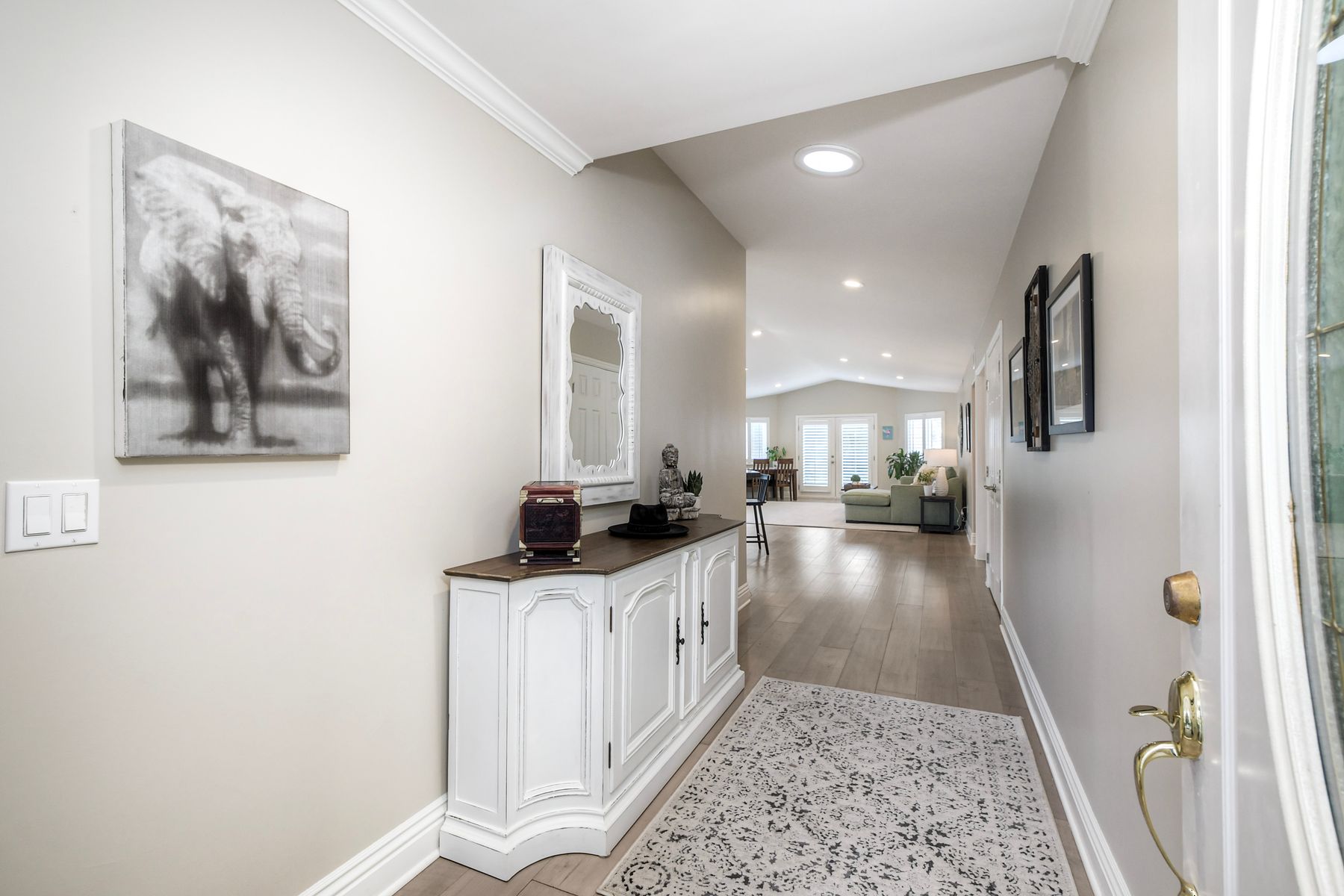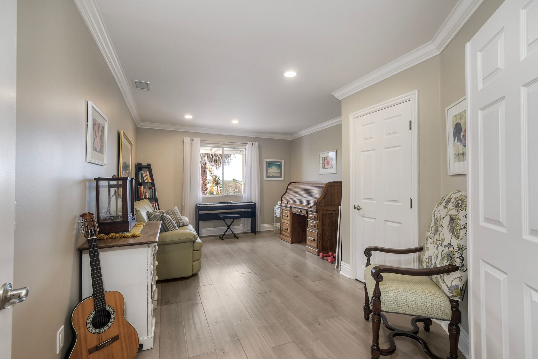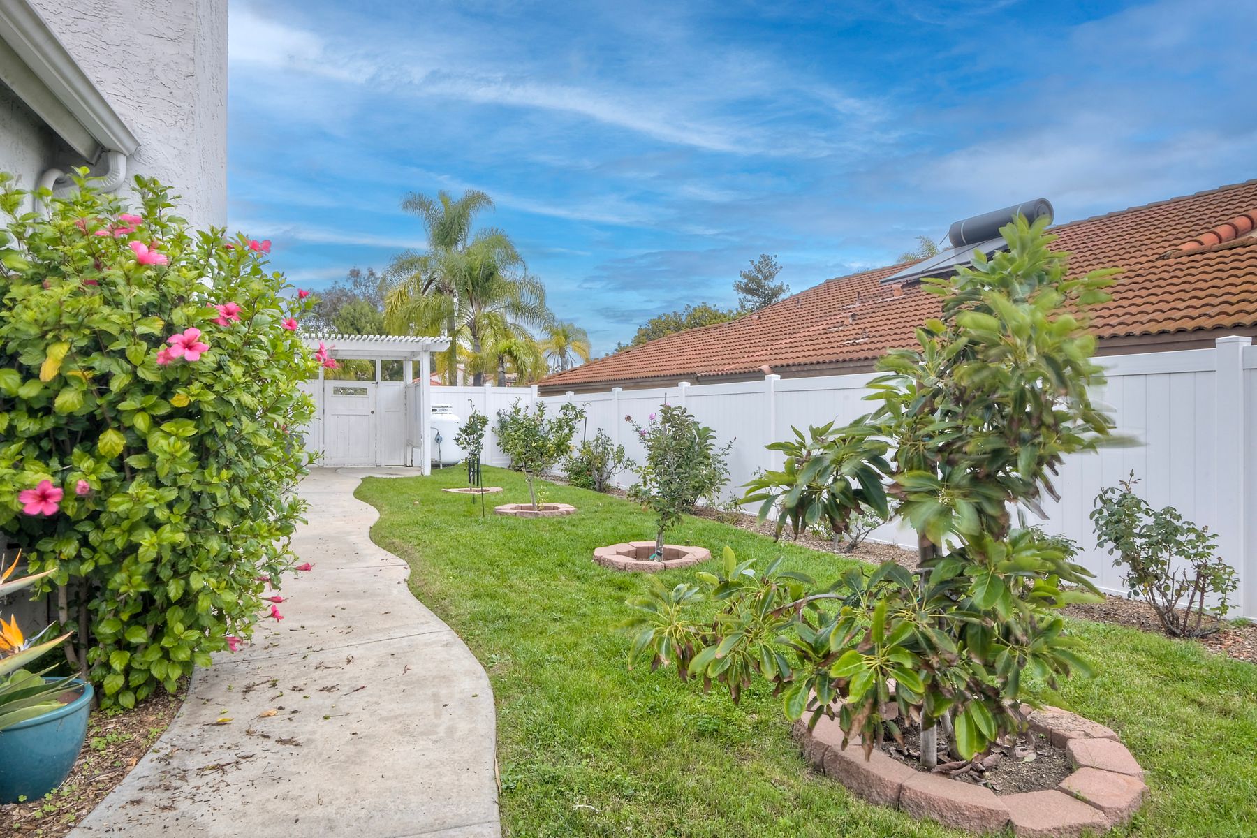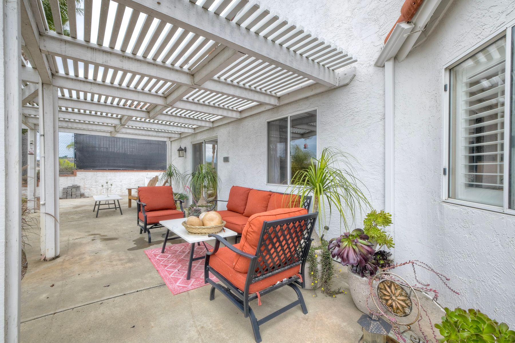 Move-In Ready Single-Story Bonsall Retreat on ½-Acre Lot — No HOA & RV Parking! This beautifully updated 3BR/3BA home features dual ensuite primary bedrooms, vaulted ceilings, and a spacious open great room layout perfect for modern living. Stylish hardwood floors run throughout the inviting living spaces. The remodeled chef’s kitchen showcases a Thermador 6-burner dual-oven range with griddle, custom natural stone countertops, designer backsplash, walk-in pantry, newer appliances, and dual skylights that bring in abundant natural light. A large laundry room with extra storage adds everyday convenience. The main primary suite offers a large walk-in closet and a spa-like, no-glass walk-in shower. Additional highlights include plantation shutters, a finished 3-car garage, a large private, gated RV parking area, and a circular driveway for easy access and additional parking. The generous ½-acre lot also provides excellent potential for an ADU. Perched at the top of a quiet cul-de-sac, the home enjoys panoramic views and cool breezes off the San Luis Rey River. The expansive backyard features multiple fruit trees and full irrigation—ideal for gardening or entertaining. Just a short walk to the new Bonsall Community Park now being built, featuring sports fields, a dog park, and scenic trails. This prime location offers quick access to Highway 76, the I-15 freeway, and is only 30 minutes from the beach. Conveniently close to shopping, dining, golf, and top-rated Bonsall schools. No HOA. A rare, fully renovated, move-in-ready Bonsall property.