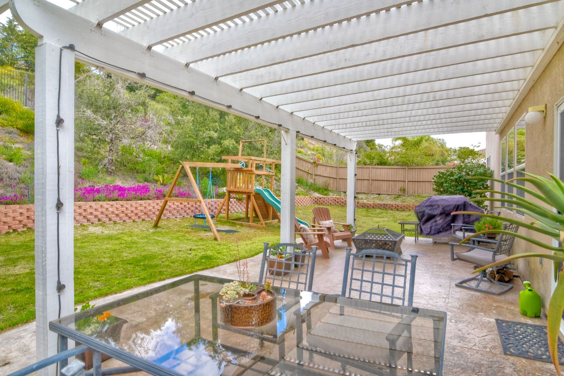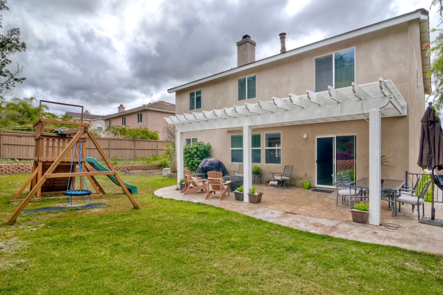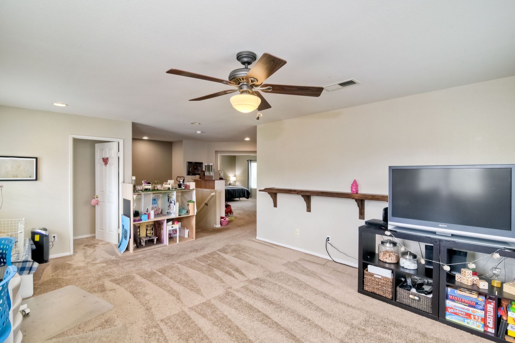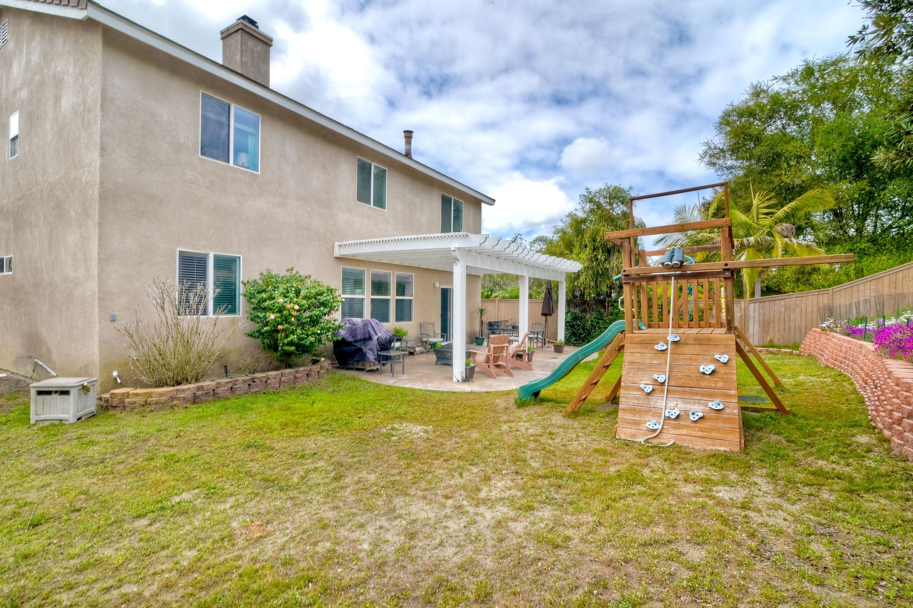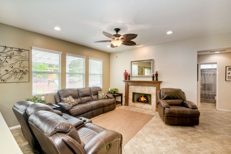 Low HOA & no Mello Roos! Lovely, spacious home in quiet neighborhood. It offers four nice size bedrooms and a large bonus room that could be used as a game room, extra family room or even another bedroom. The master bedroom is amazing with a cozy two-sided fireplace and sitting room that could be an office. One full bathroom and a bedroom located downstairs. Nice floorplan, great for entertaining. Large pool-sized backyard is very private. Located near the base and in the Bonsall school district. Tax records show property to be a 6 bedroom, because some of these models were configured that way. This home however has 4 bedrooms, with a large retreat/office off of the master bedroom and a huge bonus room instead.