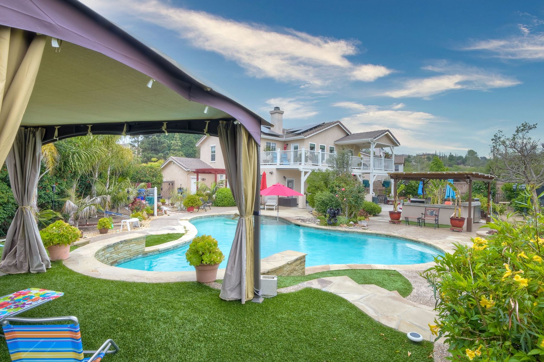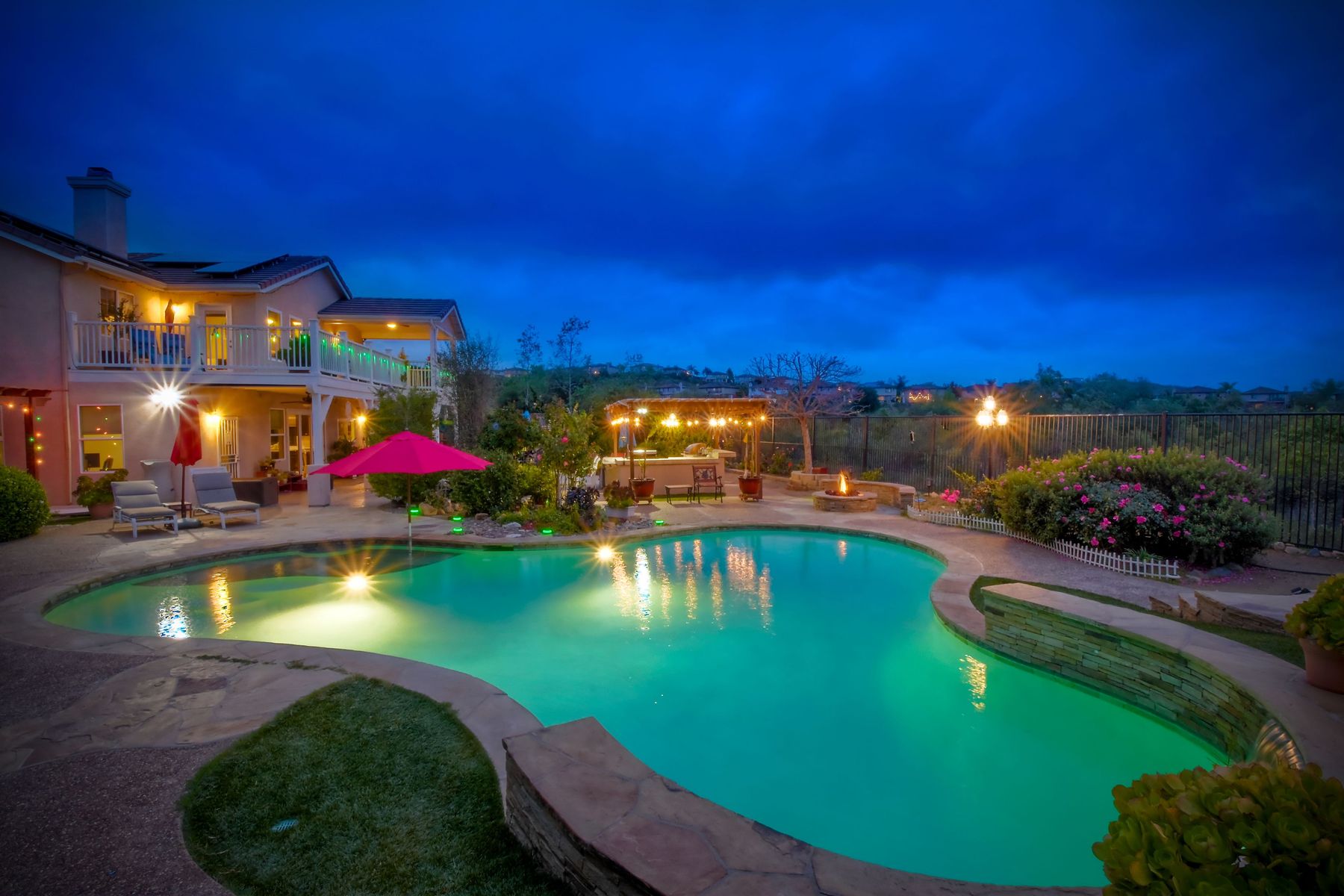 Do not look for Paradise! Beautiful resort style backyard, entertainers dream! Over .25 acres of land. Pool, brand new jacuzzi, Built-in BBQ, Gas Fire Pit, lounging area, parklike lighting. One of the most desirable locations in the neighborhood: Cul-de-sac, parking not a problem. Custom cabinets, floating island, pass through window, gorgeous backsplash, Quartz counters. Walk-in pantry. One bedroom & full bath in first floor. Tankless water heater. All new interior doors, Wood flooring, ceiling fans in all rooms, storage shed, manicured garden. Solar panels. Large loft with access to balcony. Stunning views & endless sunsets from the 300 sq.ft. balcony, plus enjoy views of the Natural Reserve. French door to balcony in master bedroom. Garage has epoxy type finish flooring. No Mello Roos, low HOA.