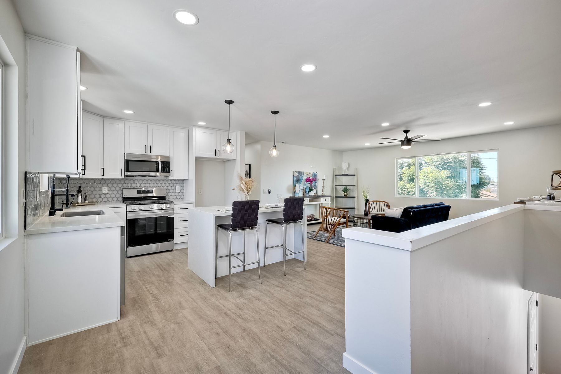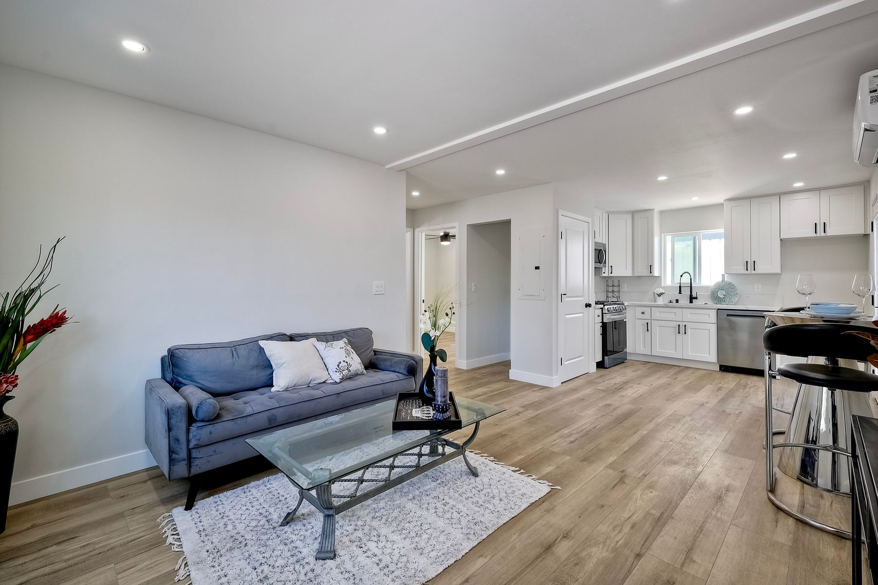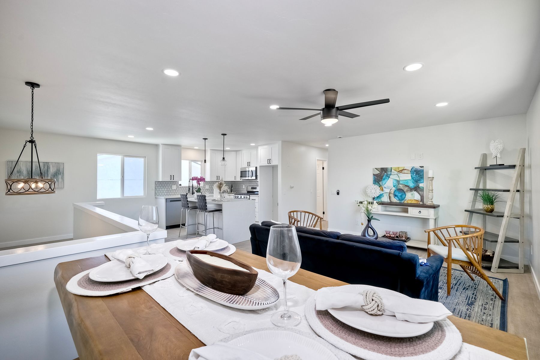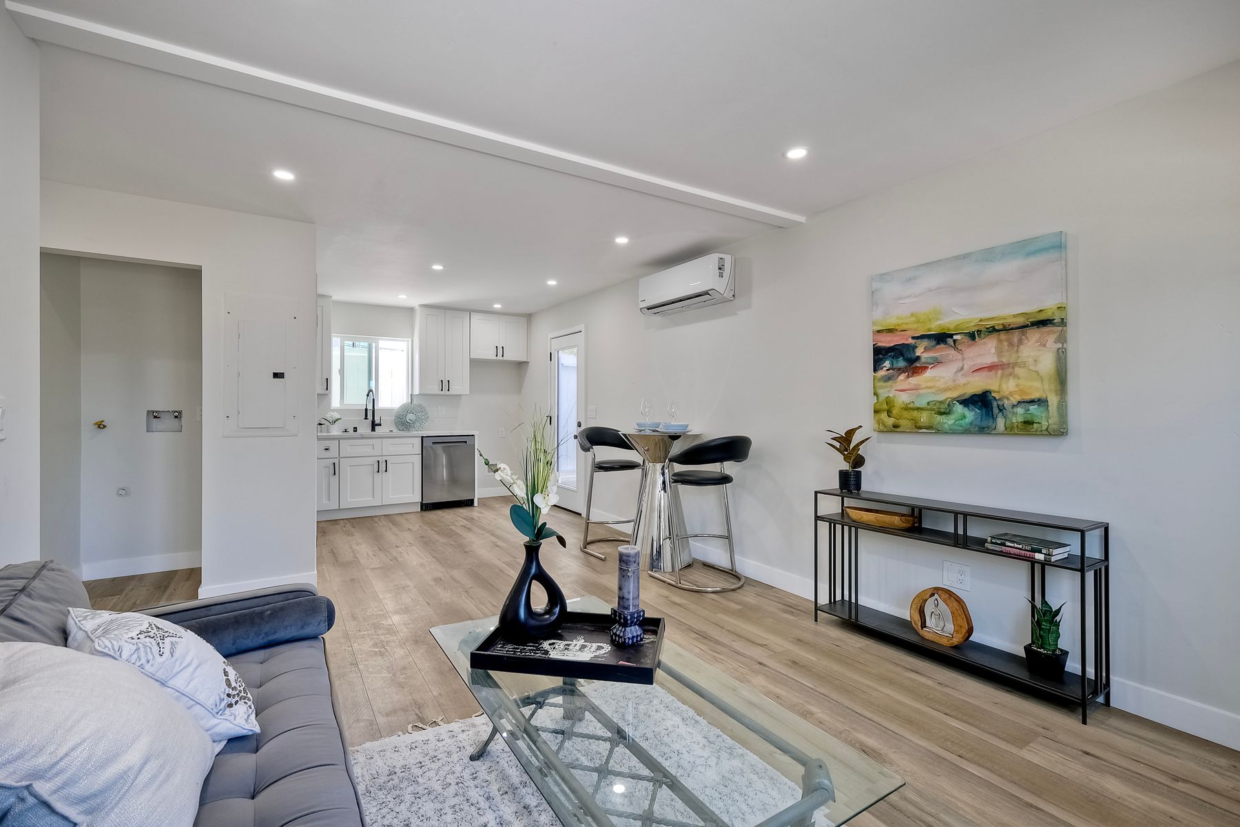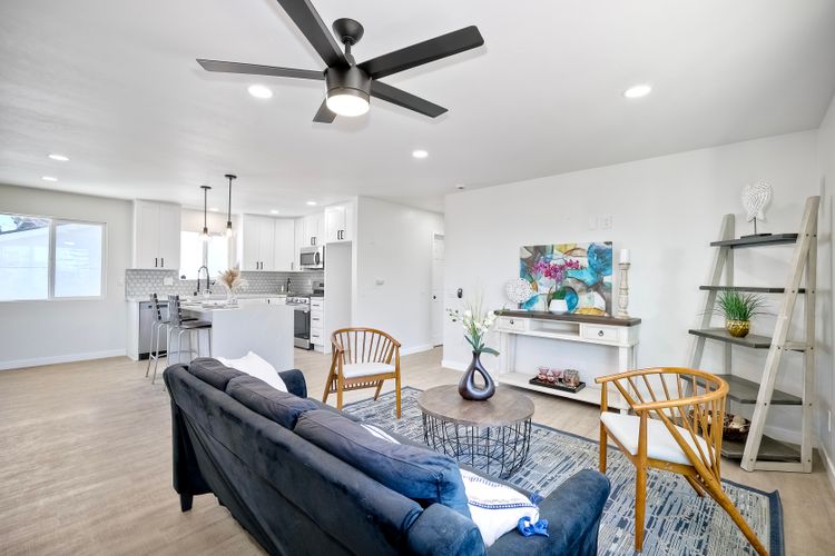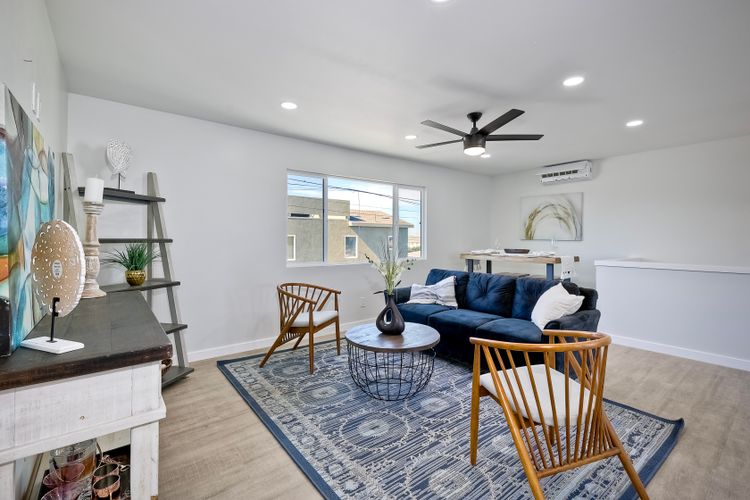 Welcome to this versatile and charming main house with brand new ADU! This unique home features two separate units, each with its own private yard space, making it ideal for multi-generational living, rental income, or extended family. Upstairs Main Unit: The spacious 2-bedroom, 2-bathroom upper unit boasts a great room perfect for entertaining. Large windows fill the space with natural light, creating an inviting atmosphere throughout. Downstairs unit: The brand new downstairs Accessory Dwelling Unit (ADU) offers 2 bedrooms and 1 bathroom, with a cozy living room, a full kitchen, and its own laundry closet. This self-contained space is perfect for guests, tenants, or family members seeking privacy. Fully permitted and inspected by the city of IB, this ADU is gorgeous! Additional features include a one-car garage (with laundry) and plenty of off-street parking for multiple vehicles. Each unit has its own dedicated outdoor patio space for lounging. Don't miss the opportunity to own this incredible property with "dual living spaces"—a rare find in a desirable location!